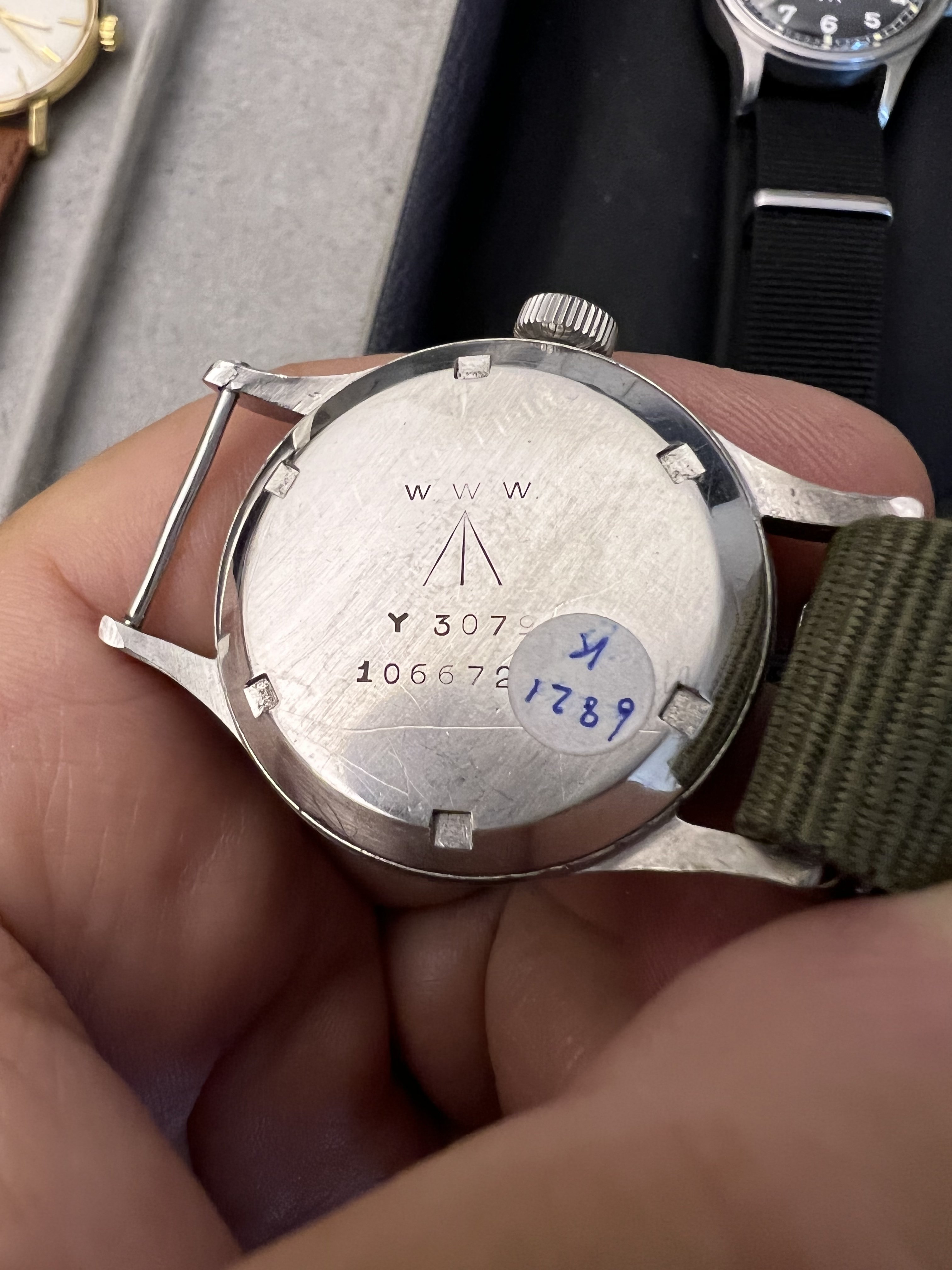 In the case of the second example, I notice the collar with tabs surrounding the movement. I notice this collar on numerous other watches advertised as military/trench watches (Omega and otherwise.) The collar seems to at least represent somewhat of a theme in military/trench watches, but, as in the first example, some of these watches advertised as "military" seem to have no characteristic separating them from any other older watch.