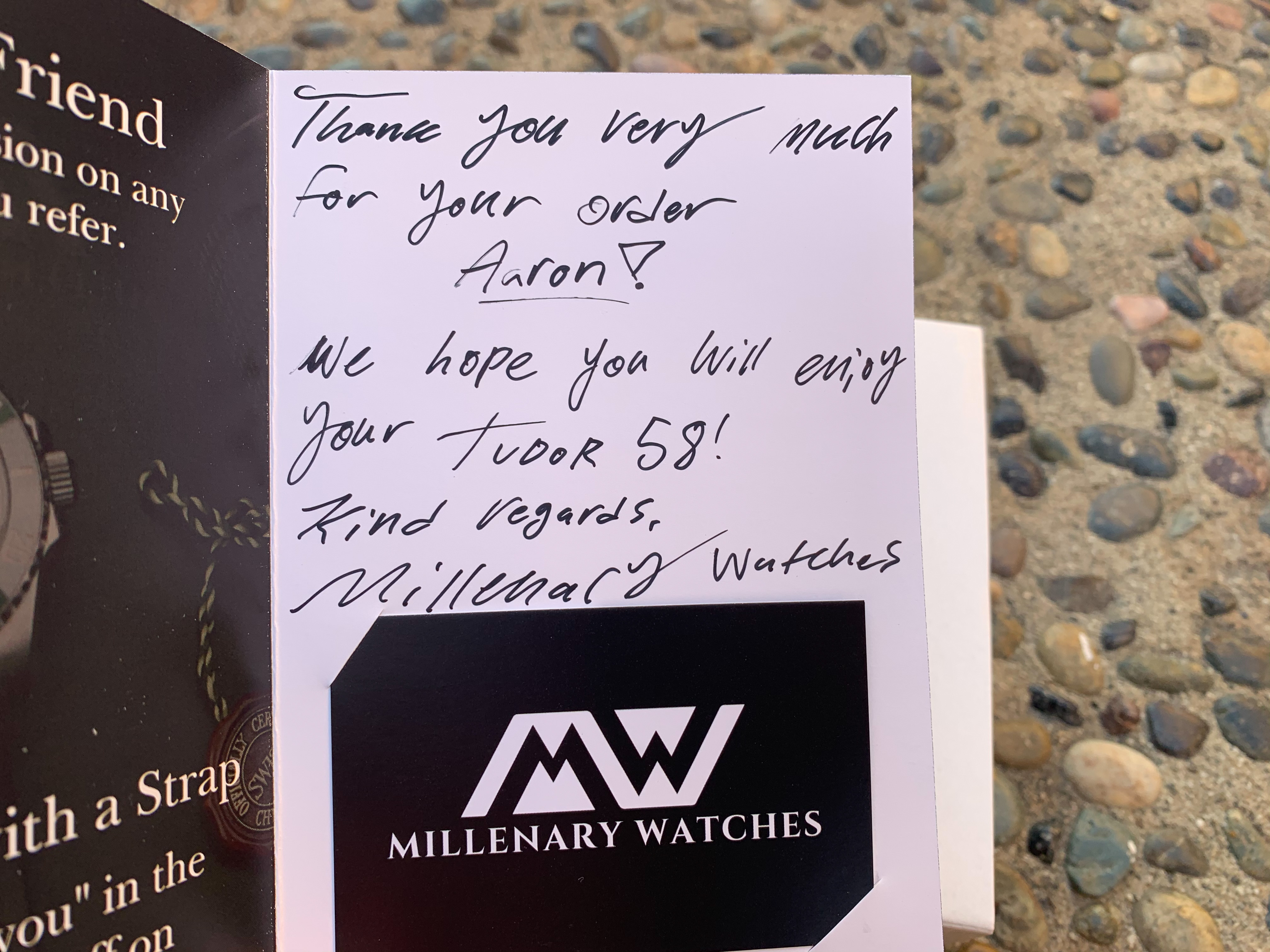 ·I just purchased a BNIB Tudor Black Bay 58 full kit (new manufacturer warranty) from Millenary and my experience was fantastic. They were fast to answer all of my questions, very thorough and helped me navigate my first international purchase with confidence. The watch arrived three business days after order (Sweden to SoCal US) and was packaged very well. The watch is incredible! Thank you @Millenary Watches !!