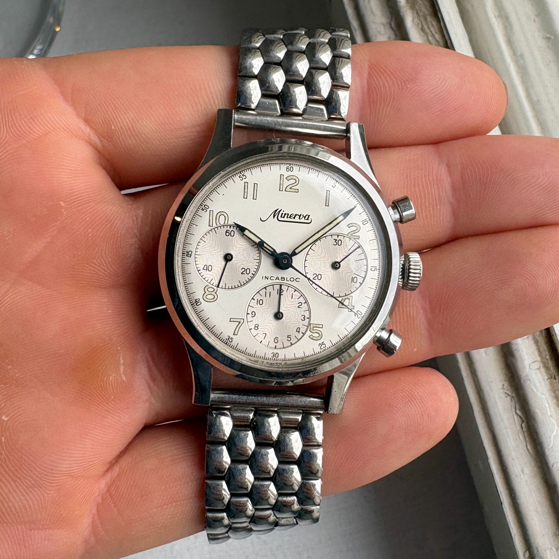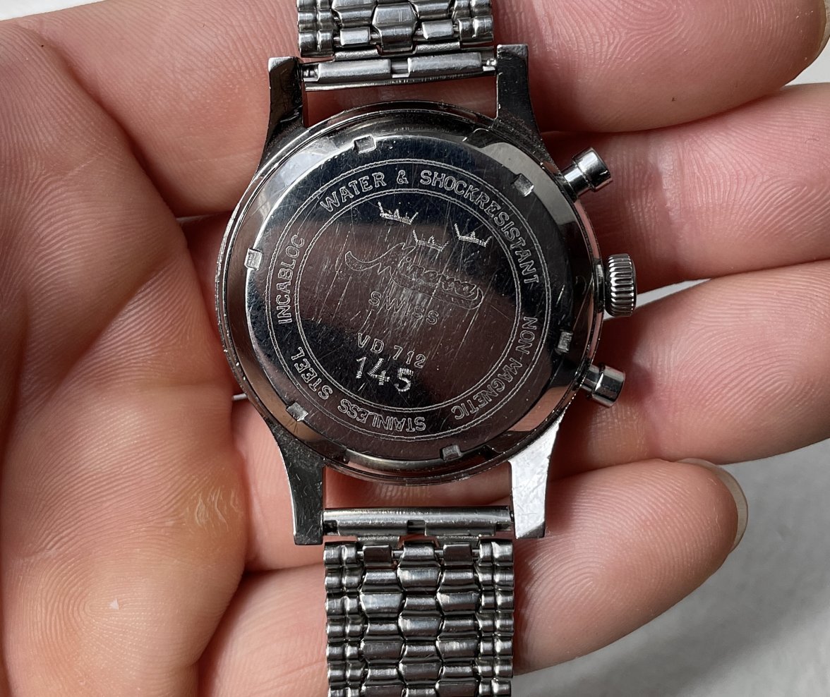 This watch was issued to the Swedish army and more specifically the navy during the 60s therefore the three crowns "tre kronor" and 145 engraved on the caseback. But by looking at the condition this watch probably was not used in many badass missions, nevertheless it adds that extra icing on the cake on an already very good Minerva chronograph 😀