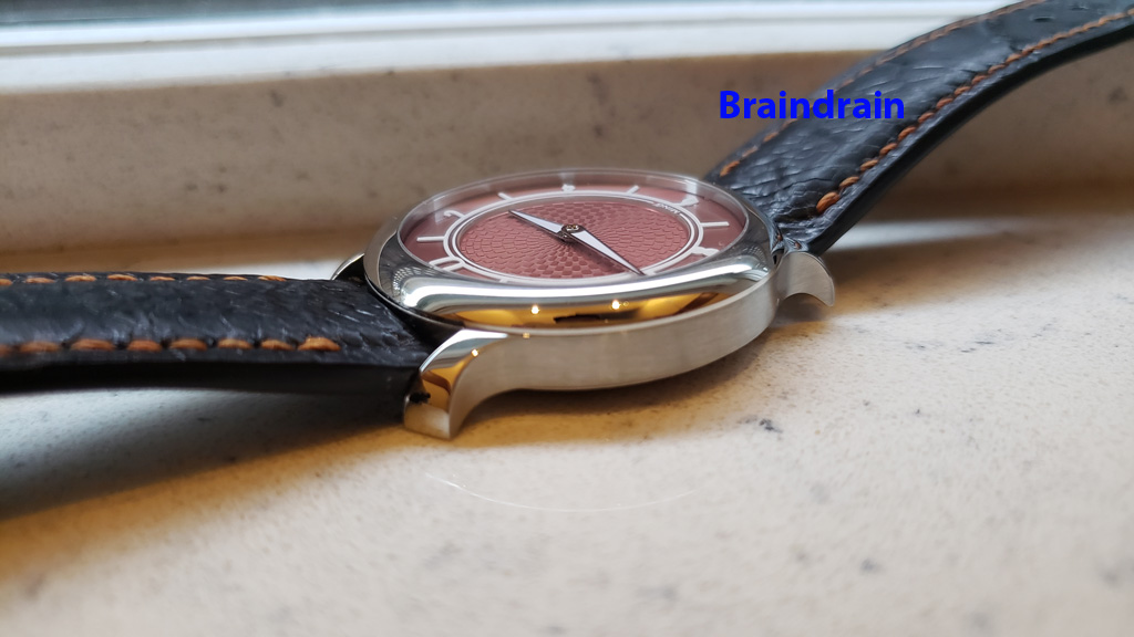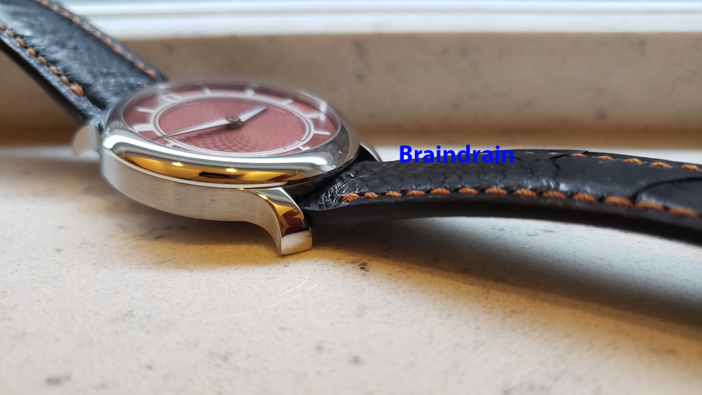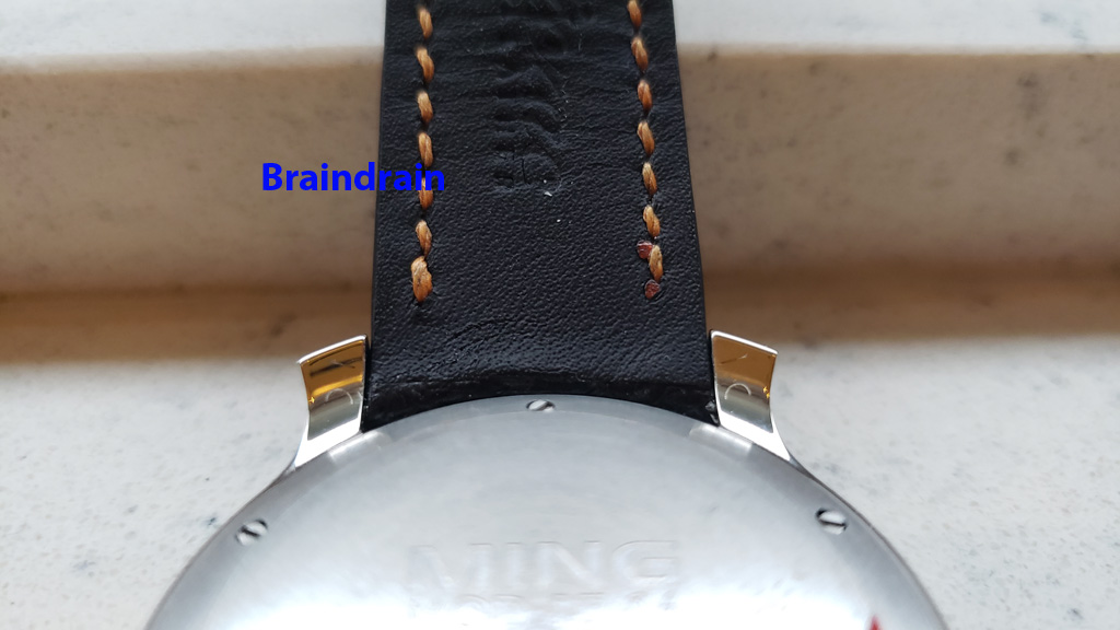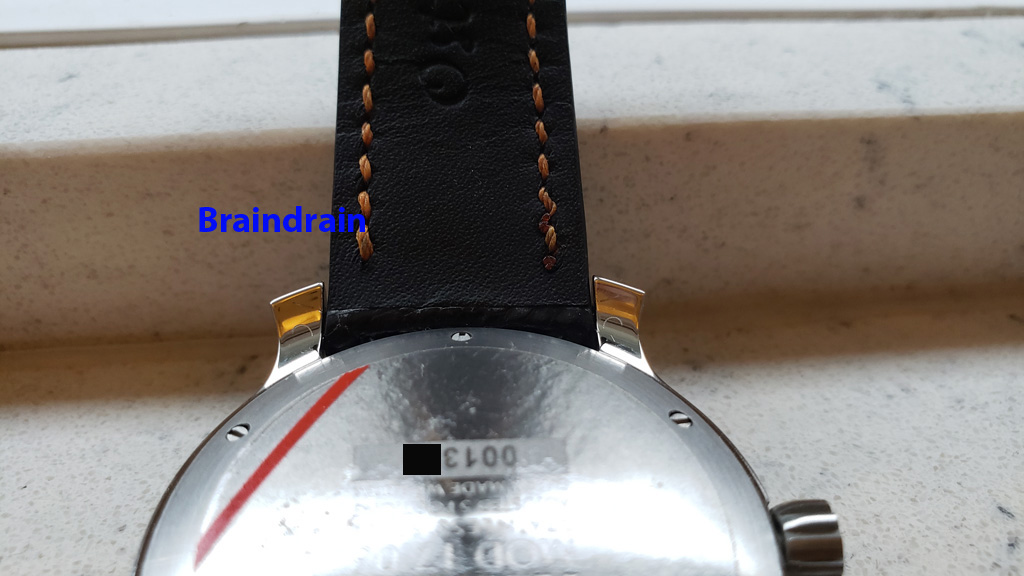 Note there are no scratches on the lugs and under the lugs (from strap changes). There are, by the way, 2 sets of springbar holes. 1 set for straight, 1 set for curved.
