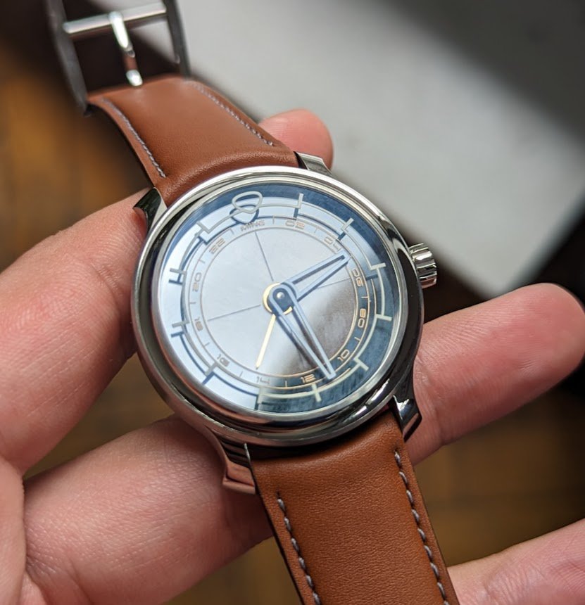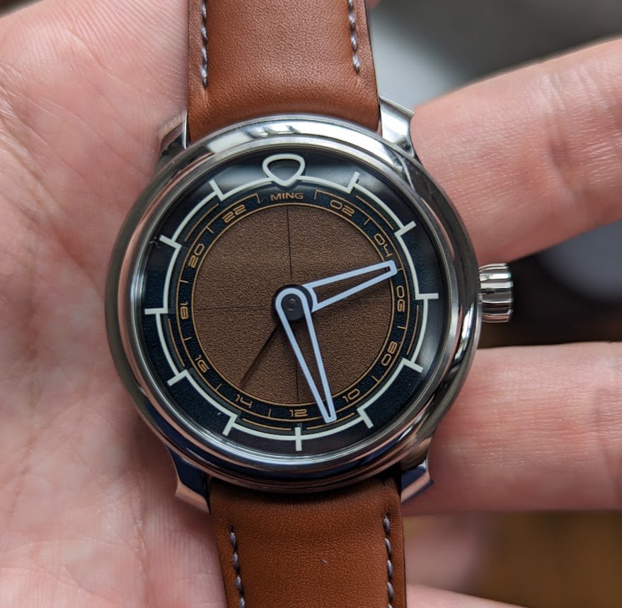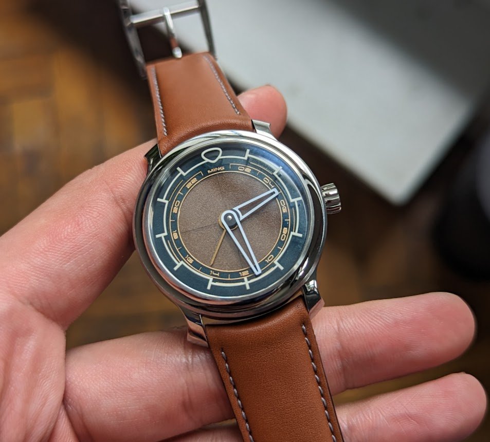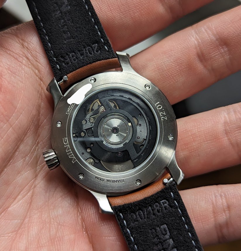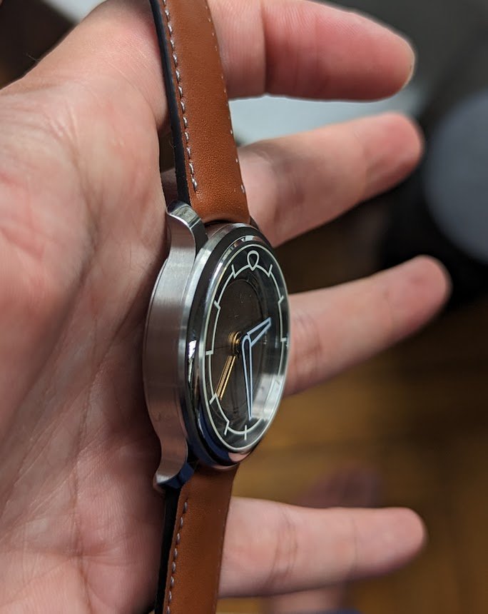 - 38mm, automatic, with a GMT 24h hand, titanium (actually wears quite nicely feel almost like steel)