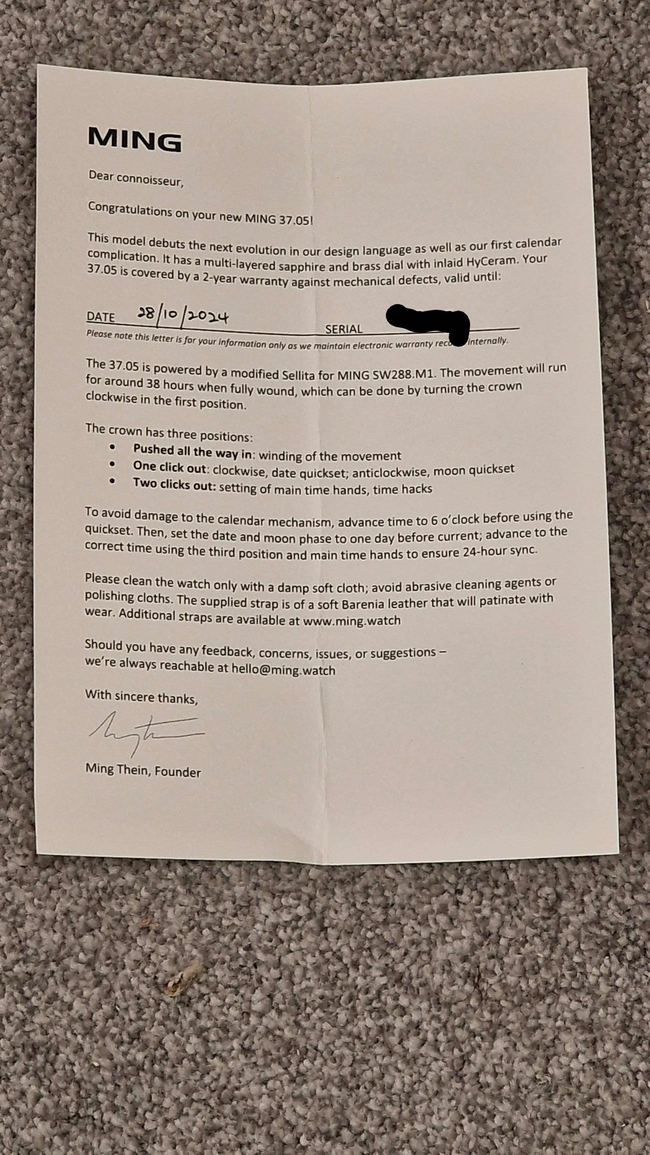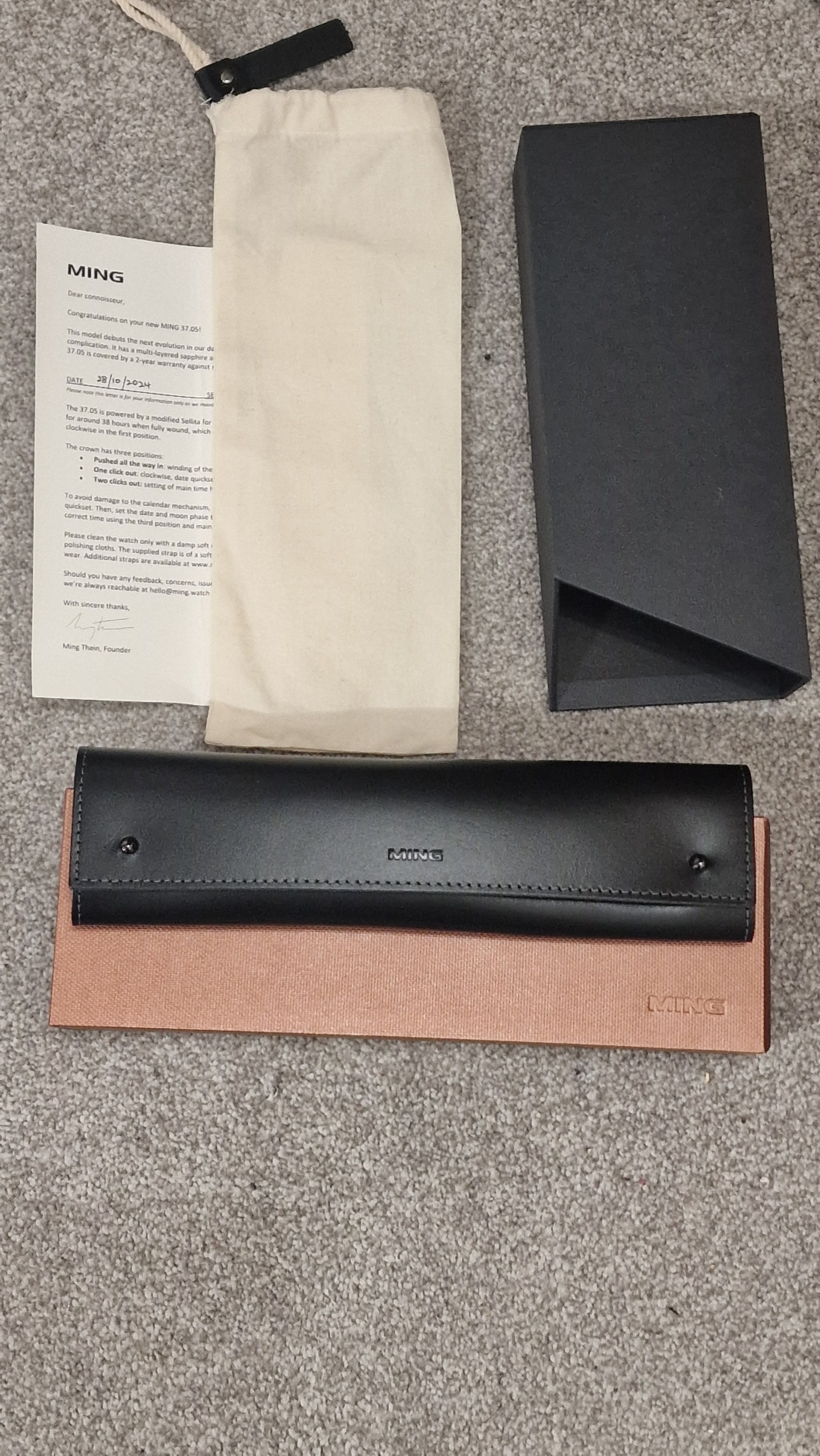 ·Up for sale is my Ming 37.05 Moonphase watch. Worn a few times but not jelling it. This is in immaculate condition. This is limited to 500 pieces world wide and is sold out. This is there first and only moonphase they will do. Its in a 38mm dia stainless steel case with a Sellita movement specially made for Ming.