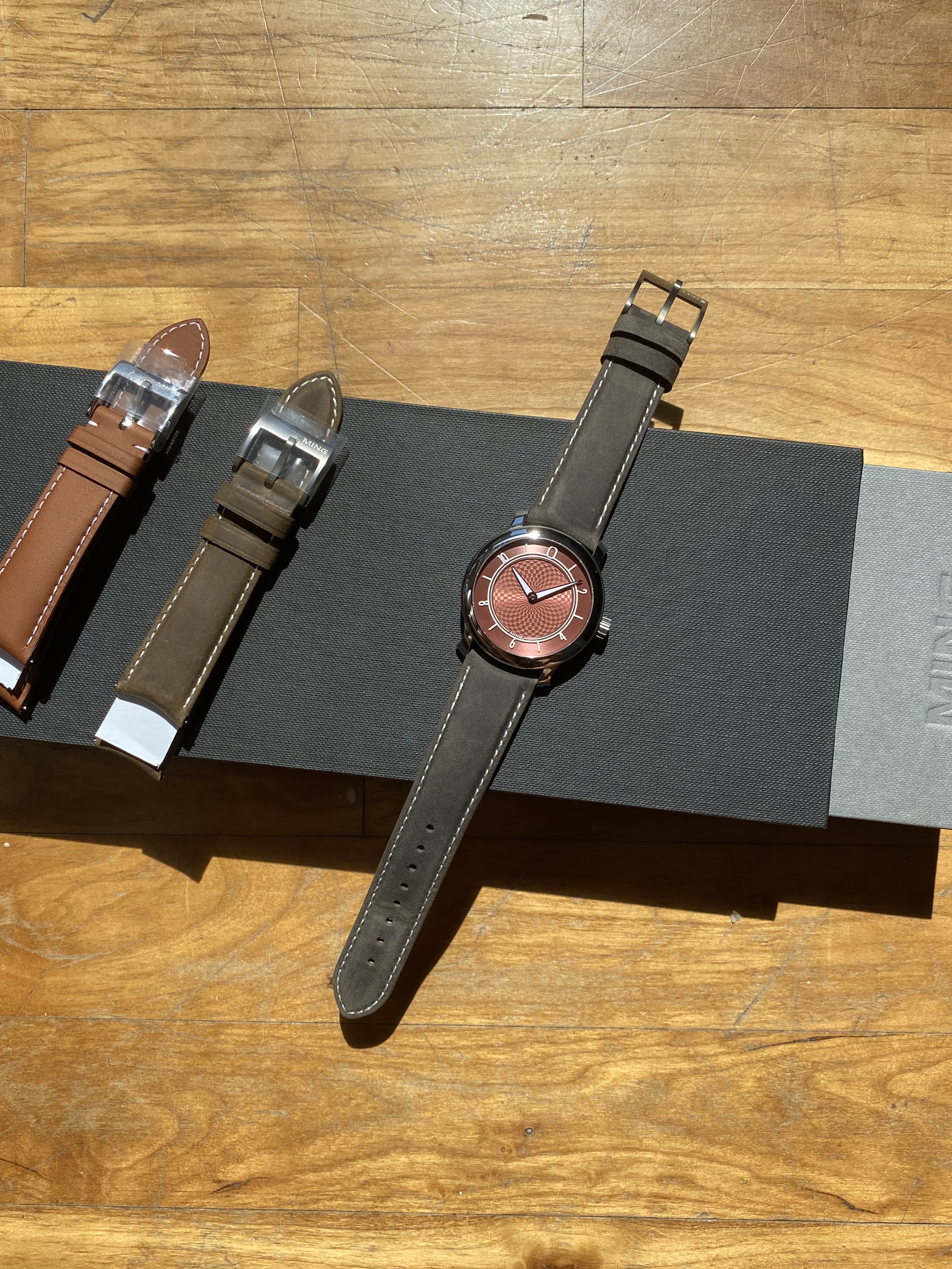 selling my ming copper in mint condition, the watch is like new and only worn outside the house once. Caseback sticker still on the watch and only one strap change was done on the watch.