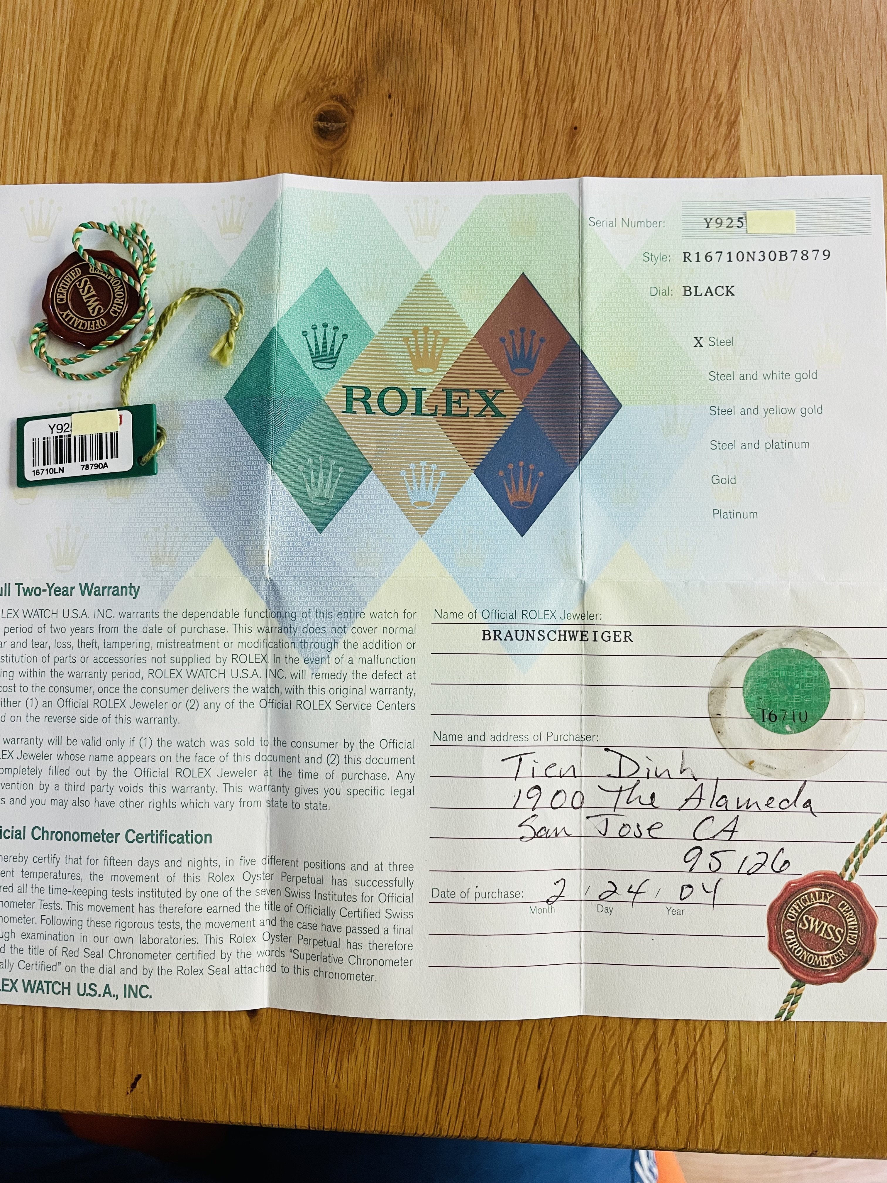 Warranty paper dated 2004 w/ Green sticker from caseback!