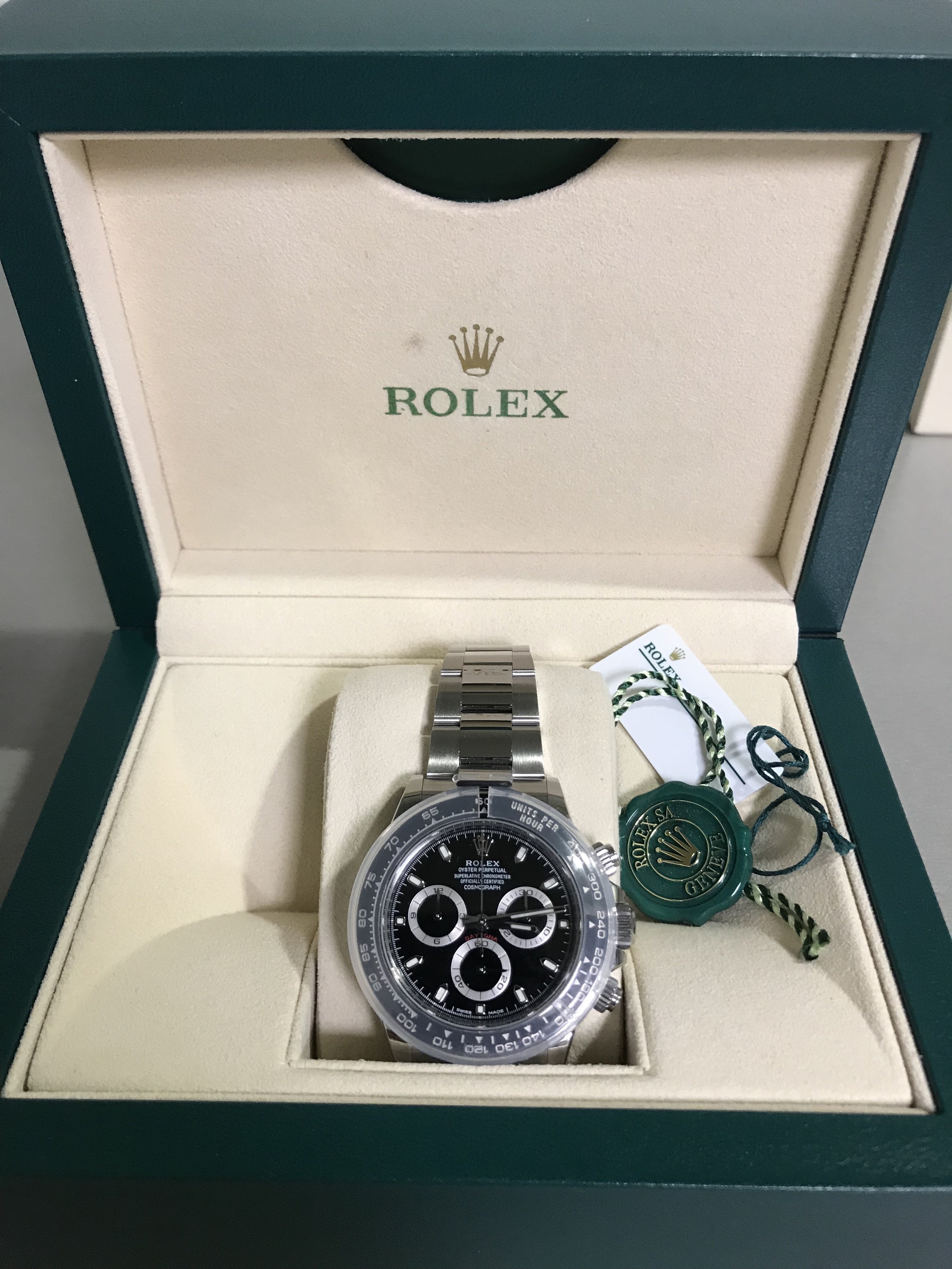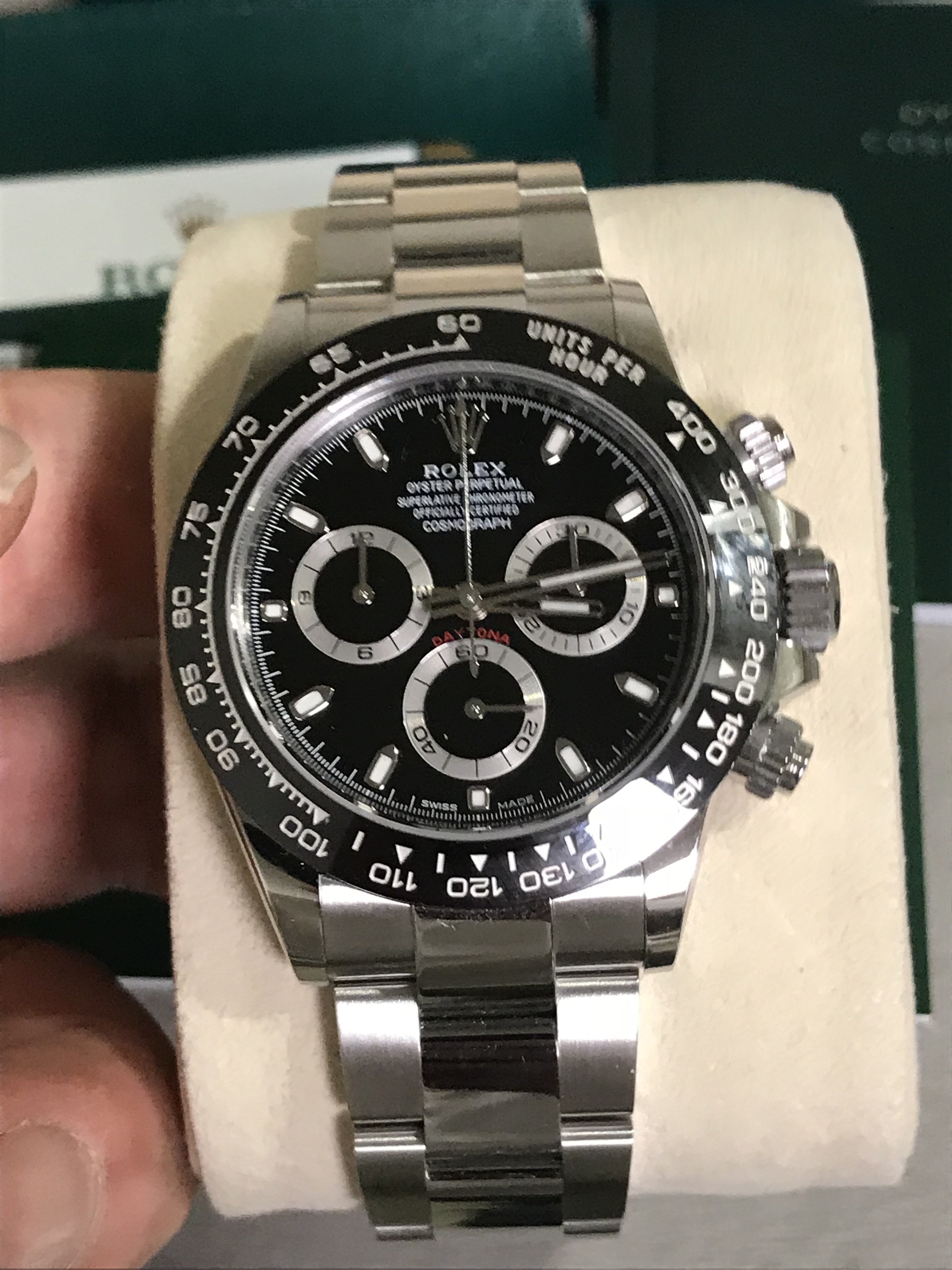 ·For your consideration - Full Set, Mint / BNIB 2018 Rolex 116500 Daytona Ceramic. The watch needs no introduction as it's perhaps the finest and most sought after Stainless Steel sports model in the market currently. The watch has not been worn or sized to my wrist, only have worn a few times at home to take pictures. No scratches or blemishes on the case, bracelet, bezel or crystal and comes with compliment of: