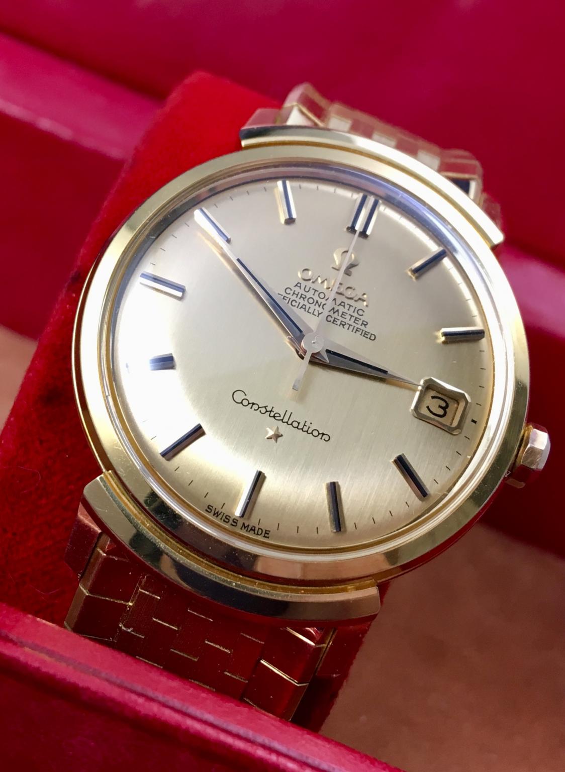 ·Looking to sell or trade my Omega Constellation Grand Luxe that dates back to 1966/7. This was the top of the line model and features an 18k gold case, dial and very unique solid 18k gold bracelet. I prefer to wear watches I own but this one is in such good condition that it’s been locked up in a safety deposit box since I bought it approximately a year ago.