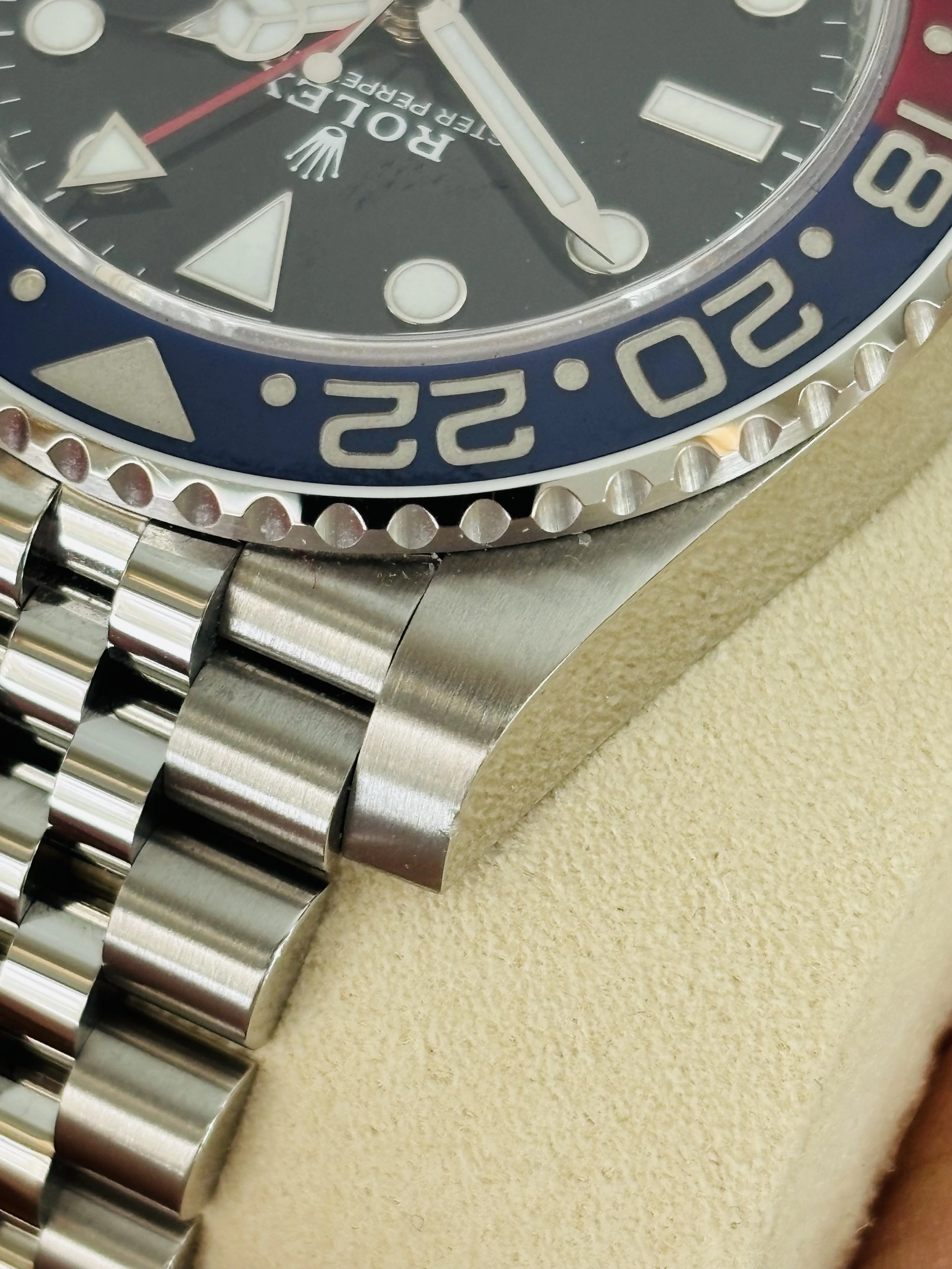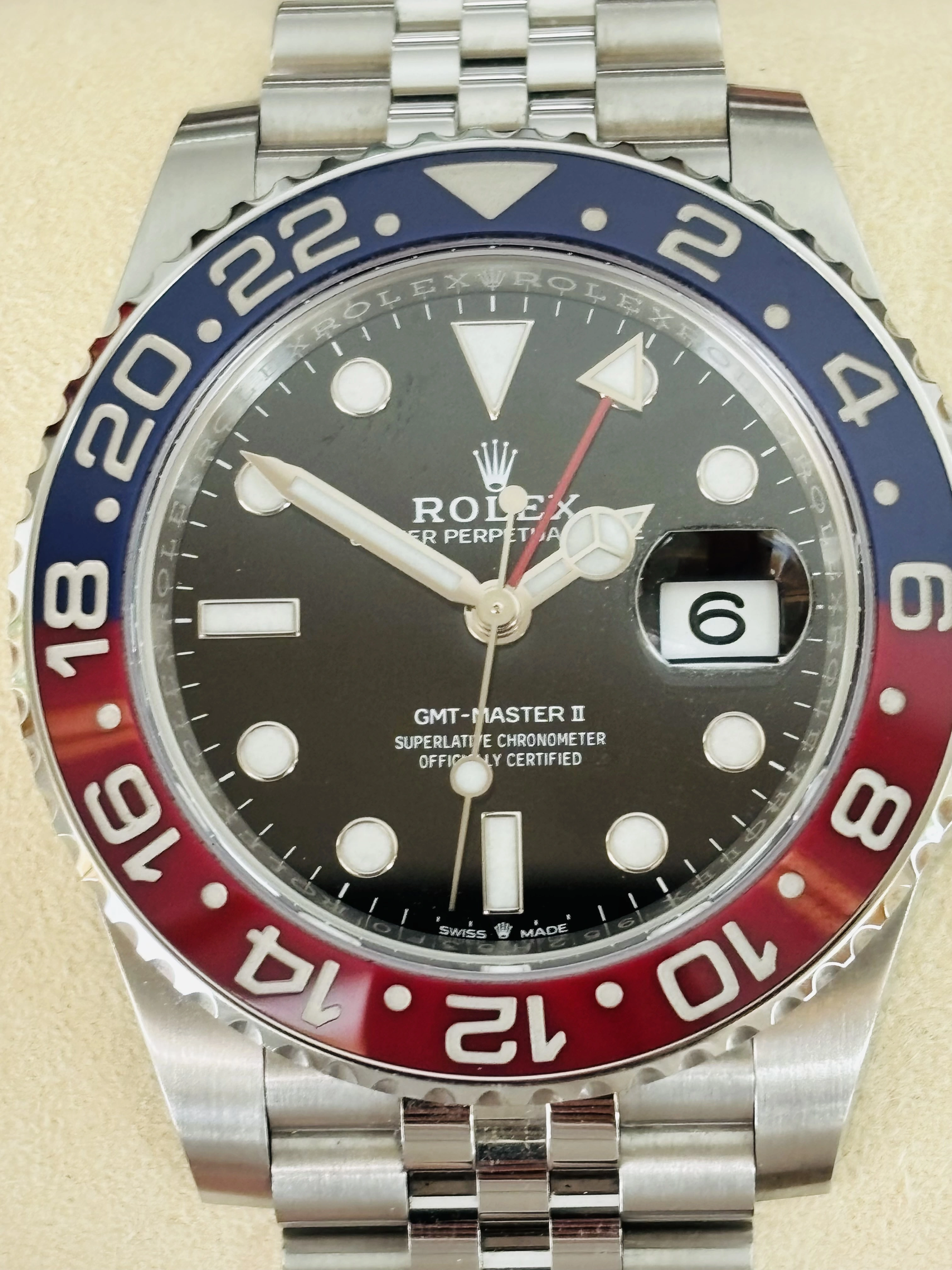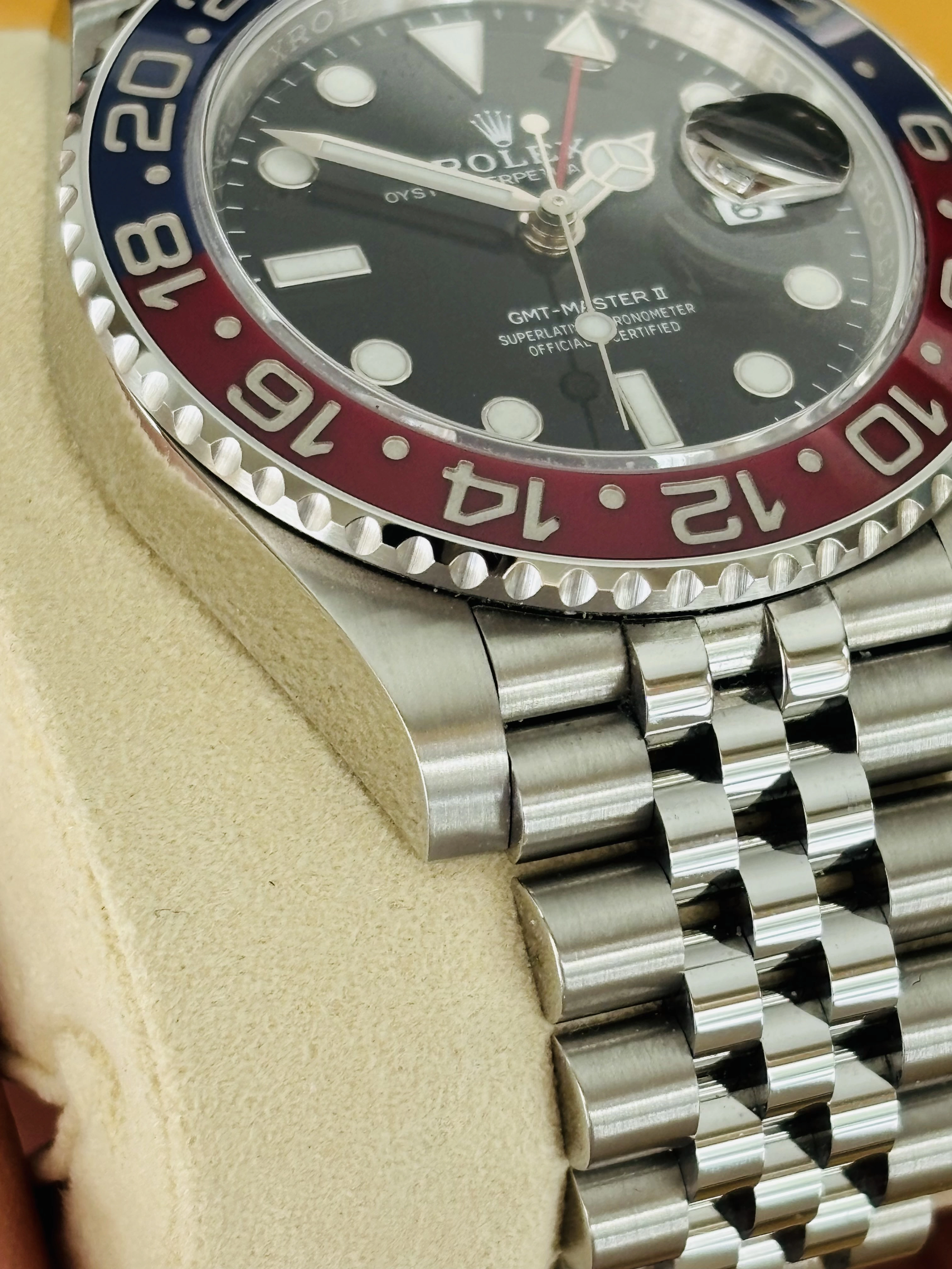 ·Hello - for sale from my personal collection, Rolex GMT 126710 Pepsi on Jubilee in mint condition. The watch is absolutely flawless, and is in my opinion one the most attractive modern refence on the market. The Jubilee bracelet distinguishes this watch and is by far the most comfortable watch to wear in my collection.