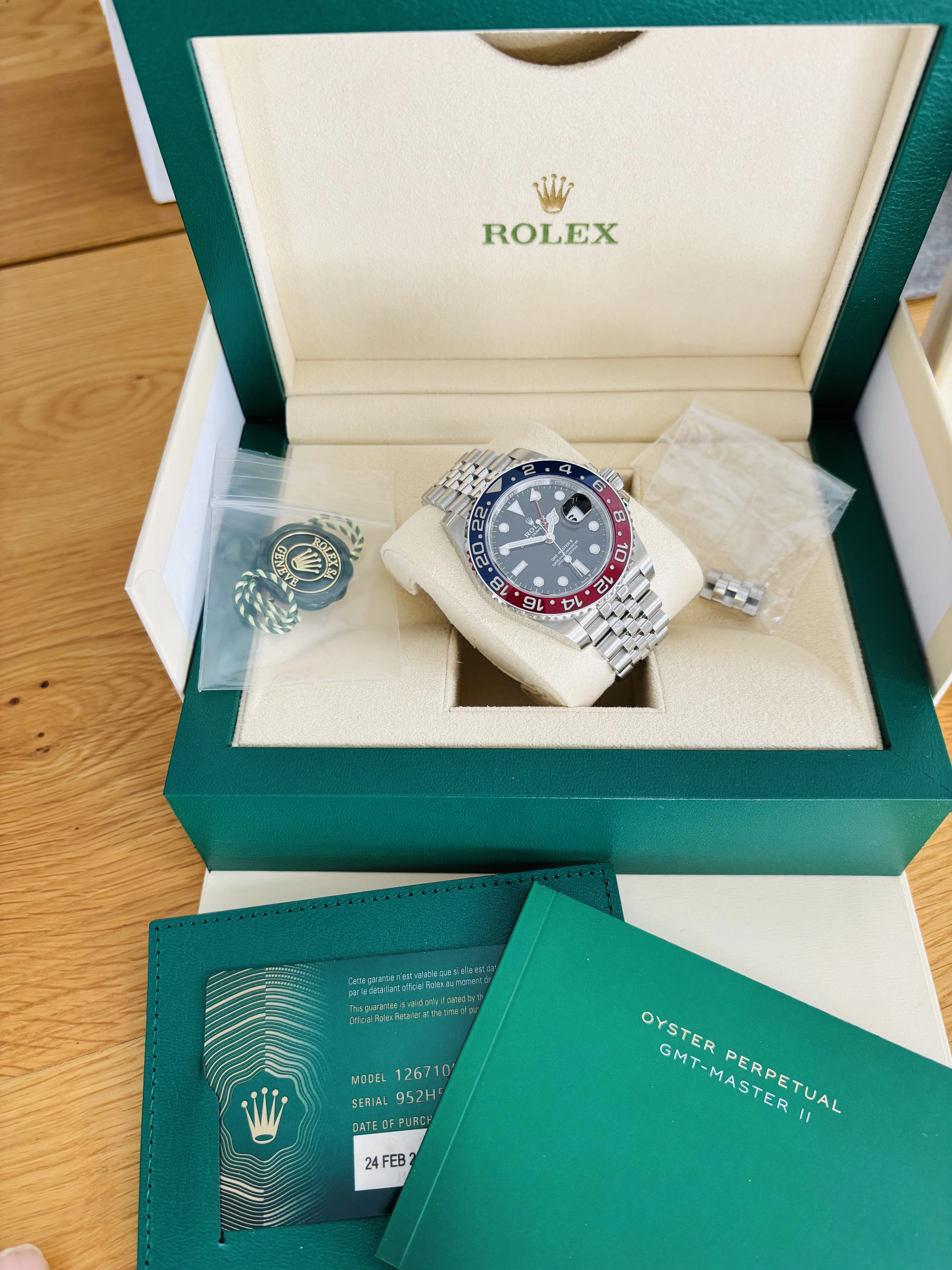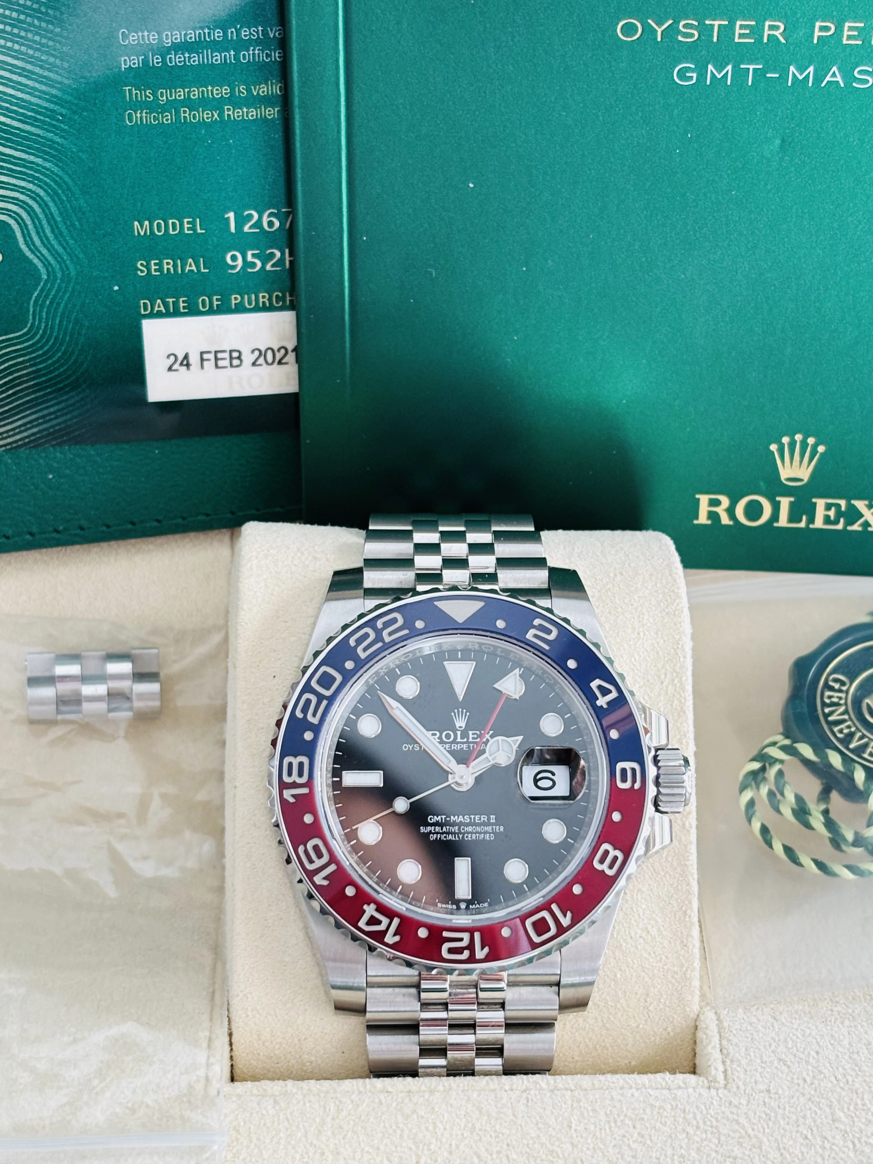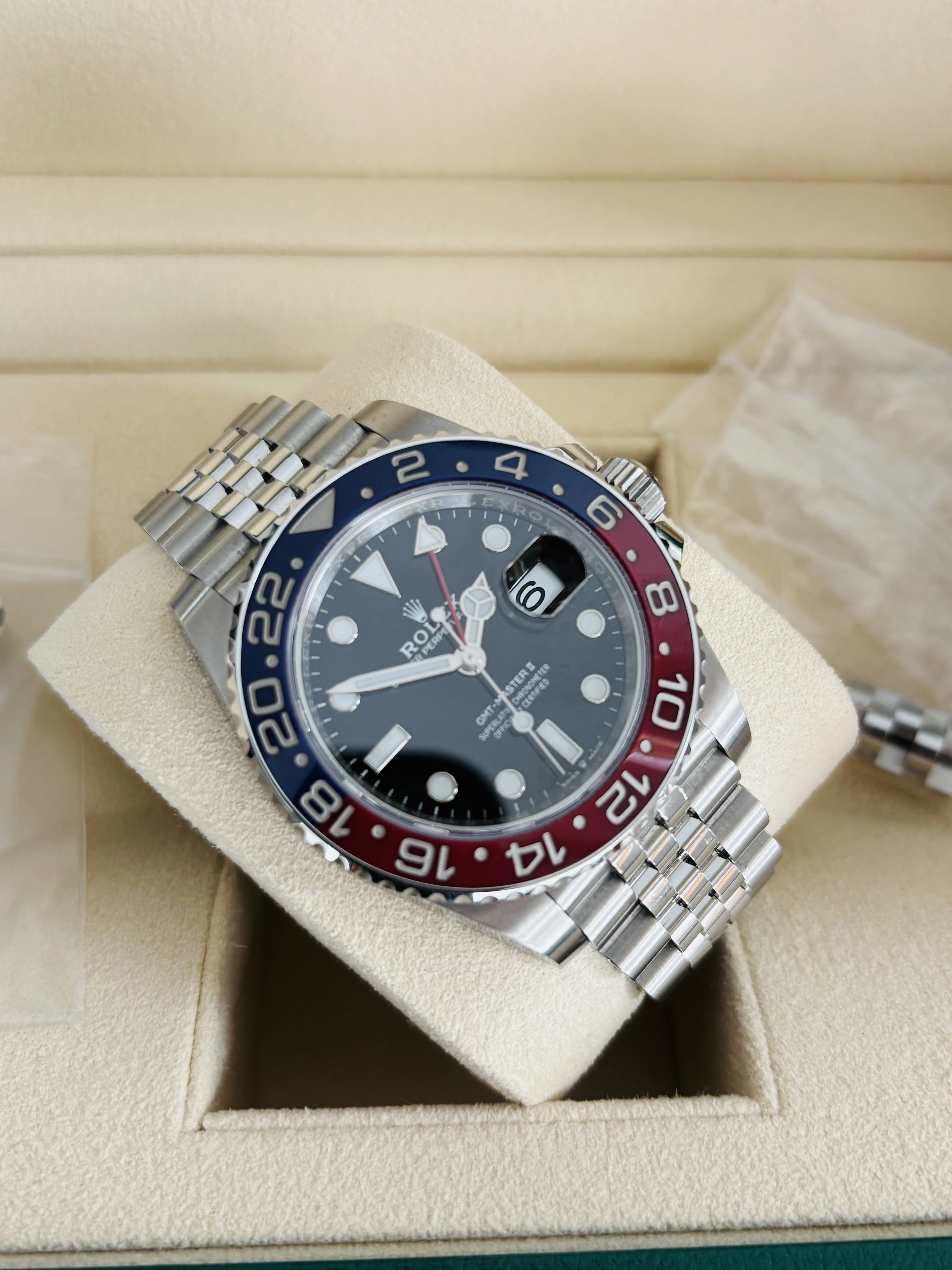 ·Hello - for sale from my personal collection, Rolex GMT 126710 Pepsi on Jubilee in mint condition. The watch is absolutely flawless, and is in my opinion one the most attractive modern refence on the market. The Jubilee bracelet distinguishes this watch and is by far the most comfortable watch to wear in my collection.