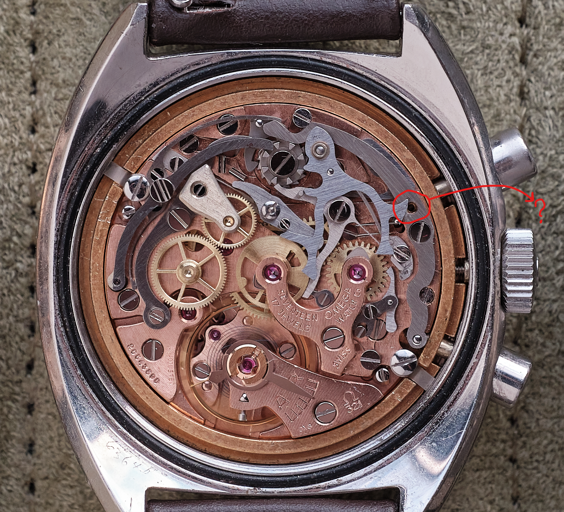 Because I shoot macro photos of my watches I noticed that my caliber 321 Seamaster is missing one screw.