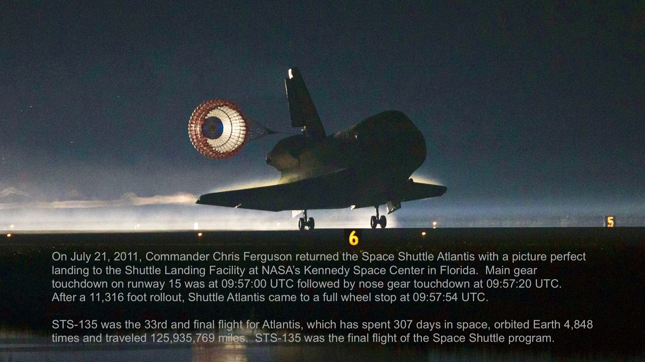 With those words, Commander Ferguson signaled the end of the 135th and final Shuttle mission on July 21, 2011.