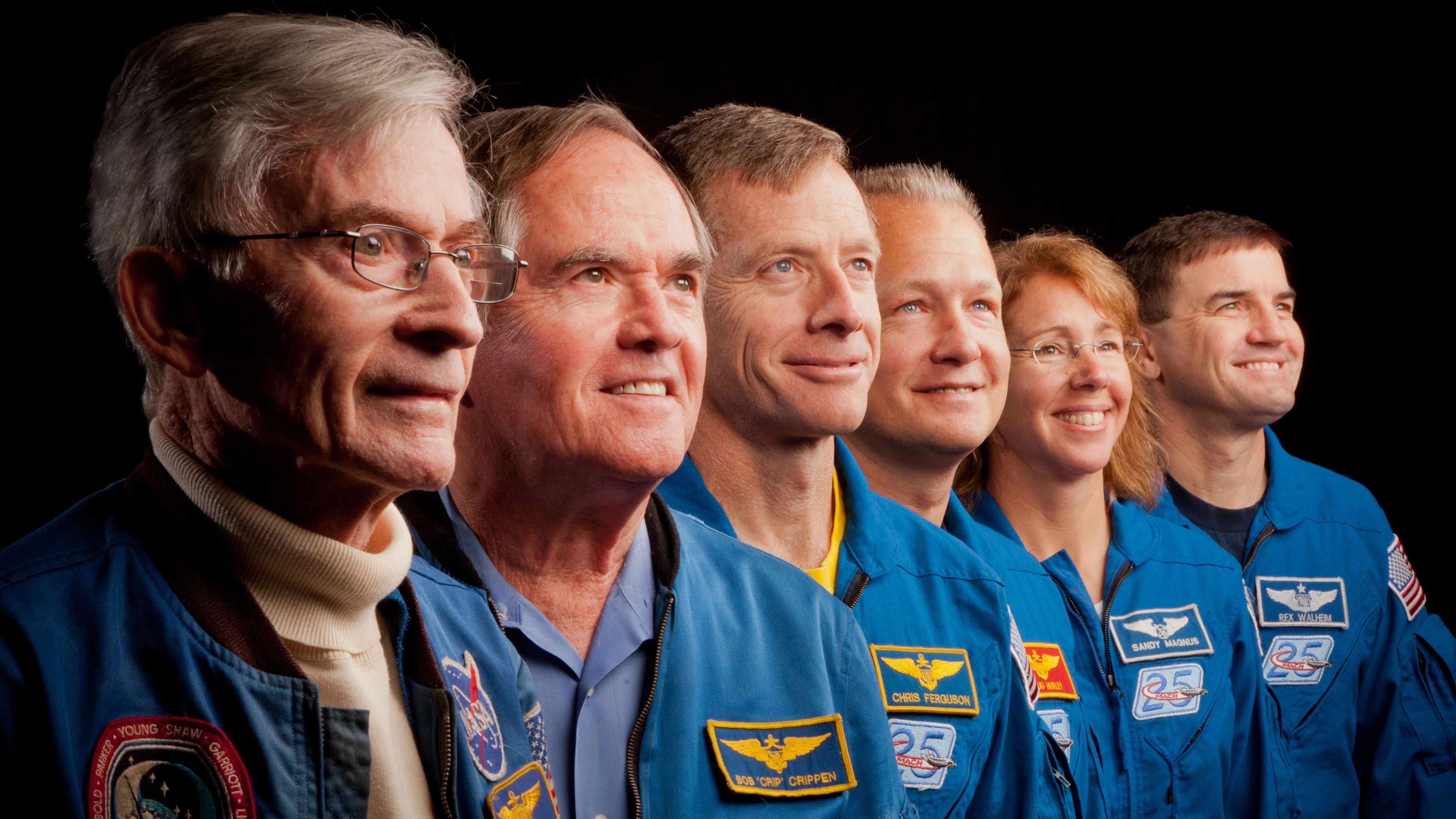 The Alpha and Omega of the Space Shuttle program. STS-1 Commander John Young and Pilot Robert Crippen along with STS-135 Commander Chris Ferguson, Pilot Doug Hurley, and Mission Specialist Sandra Magnus and Rex Walheim. (Photo Credit: NASA)