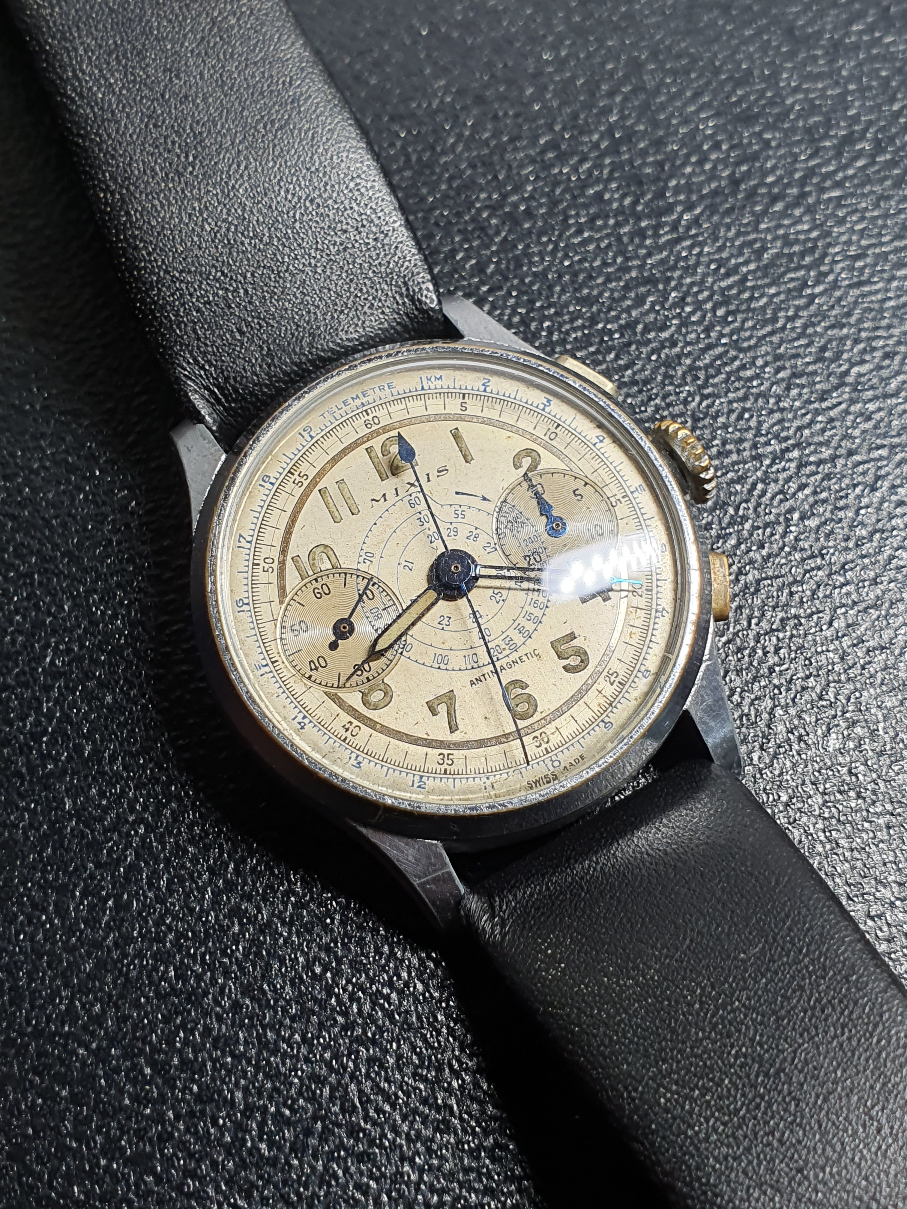 For sale i offer this vintage Mixis Chronograph with a Landeron 48 movement.