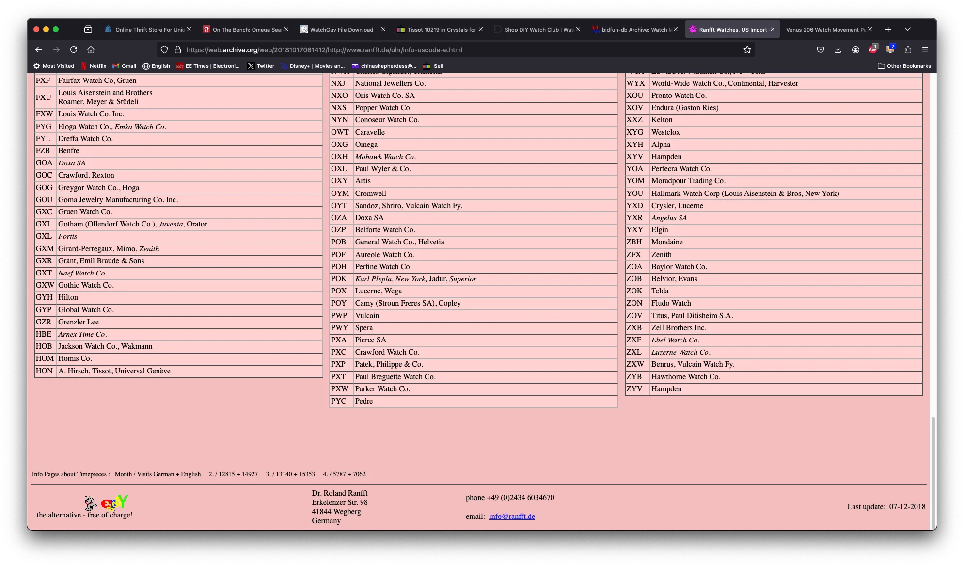 I screen shot a list from the old Ranfft site. I do not think this info was transfered to the new site.
