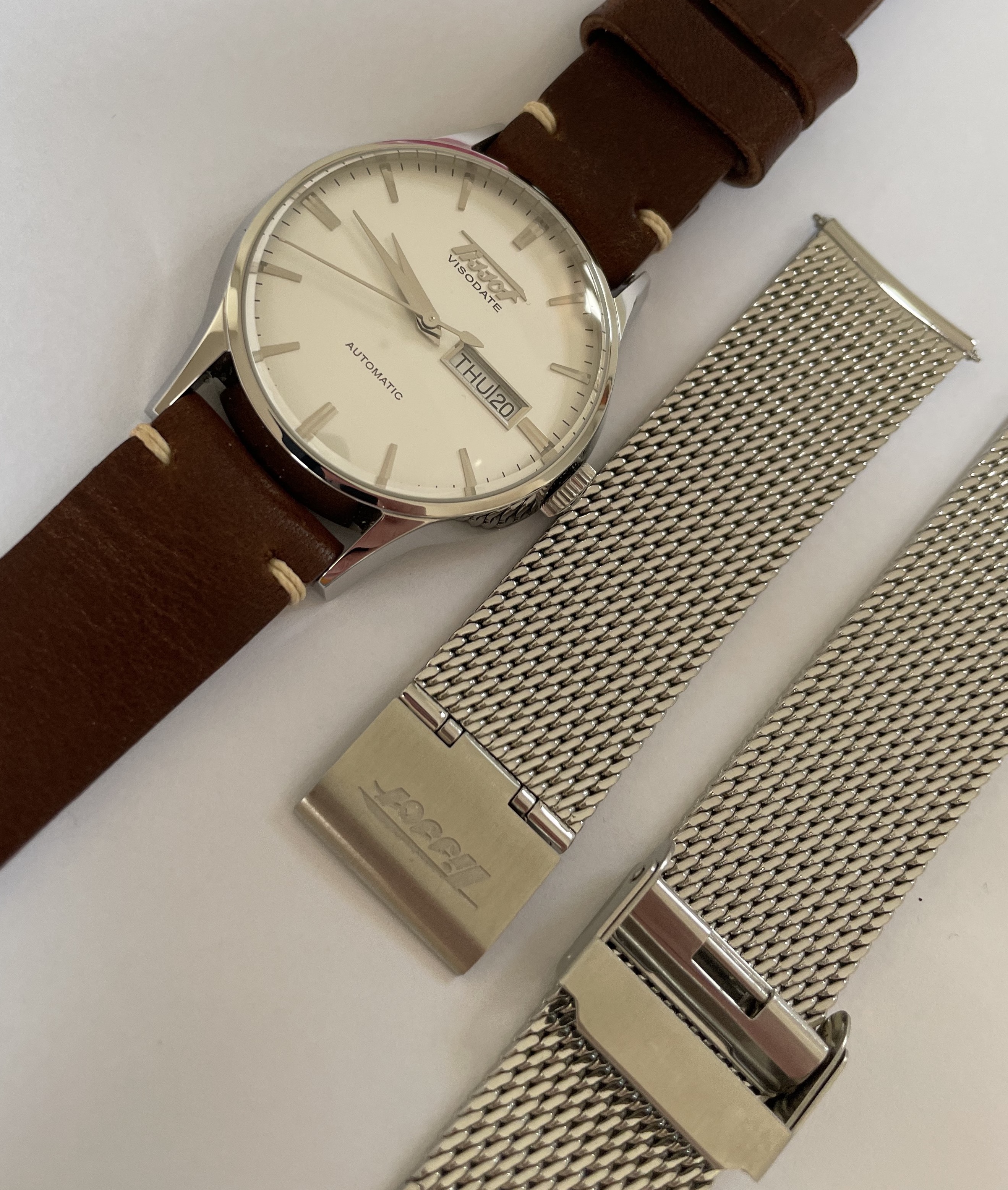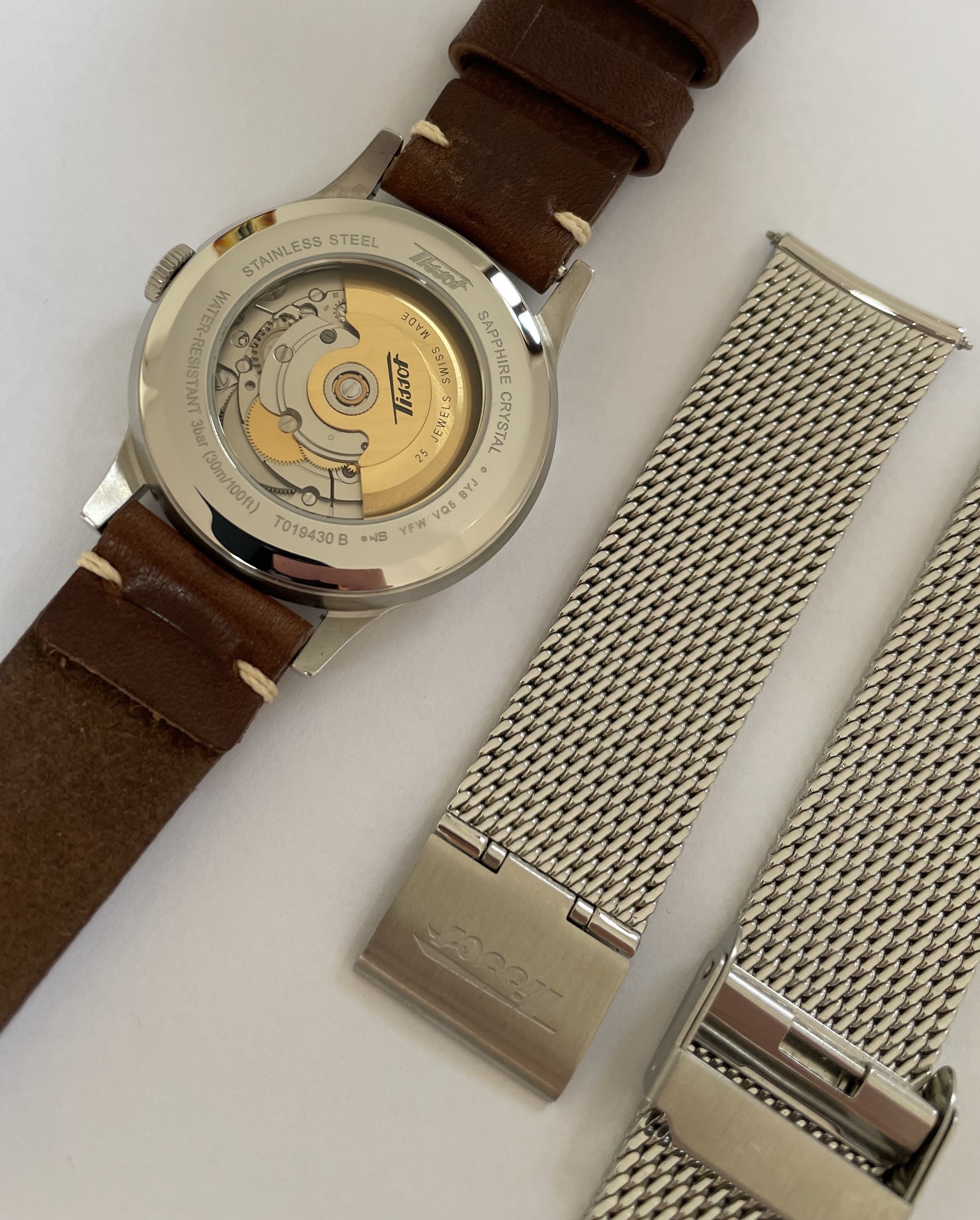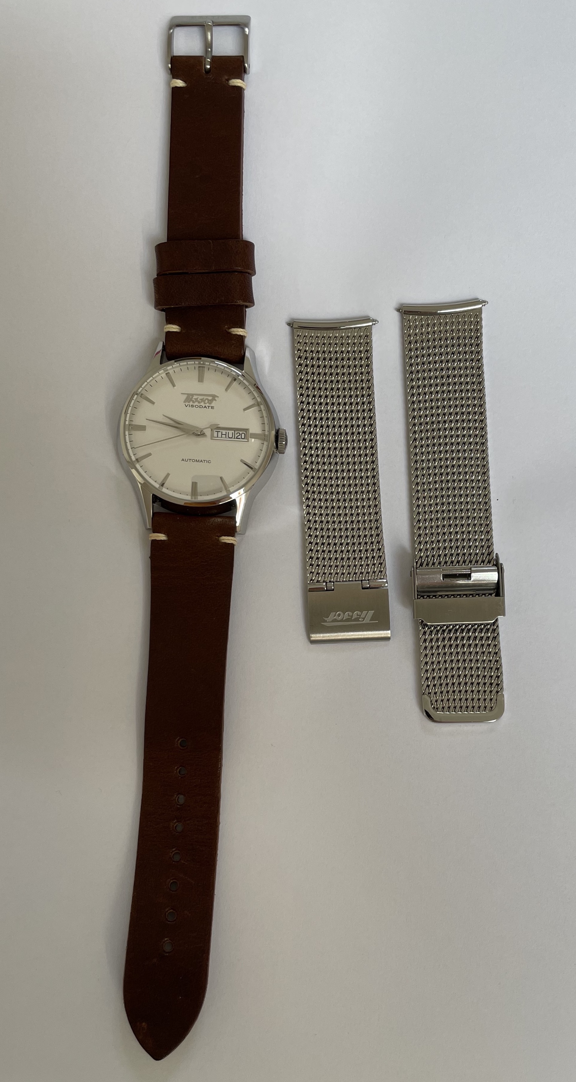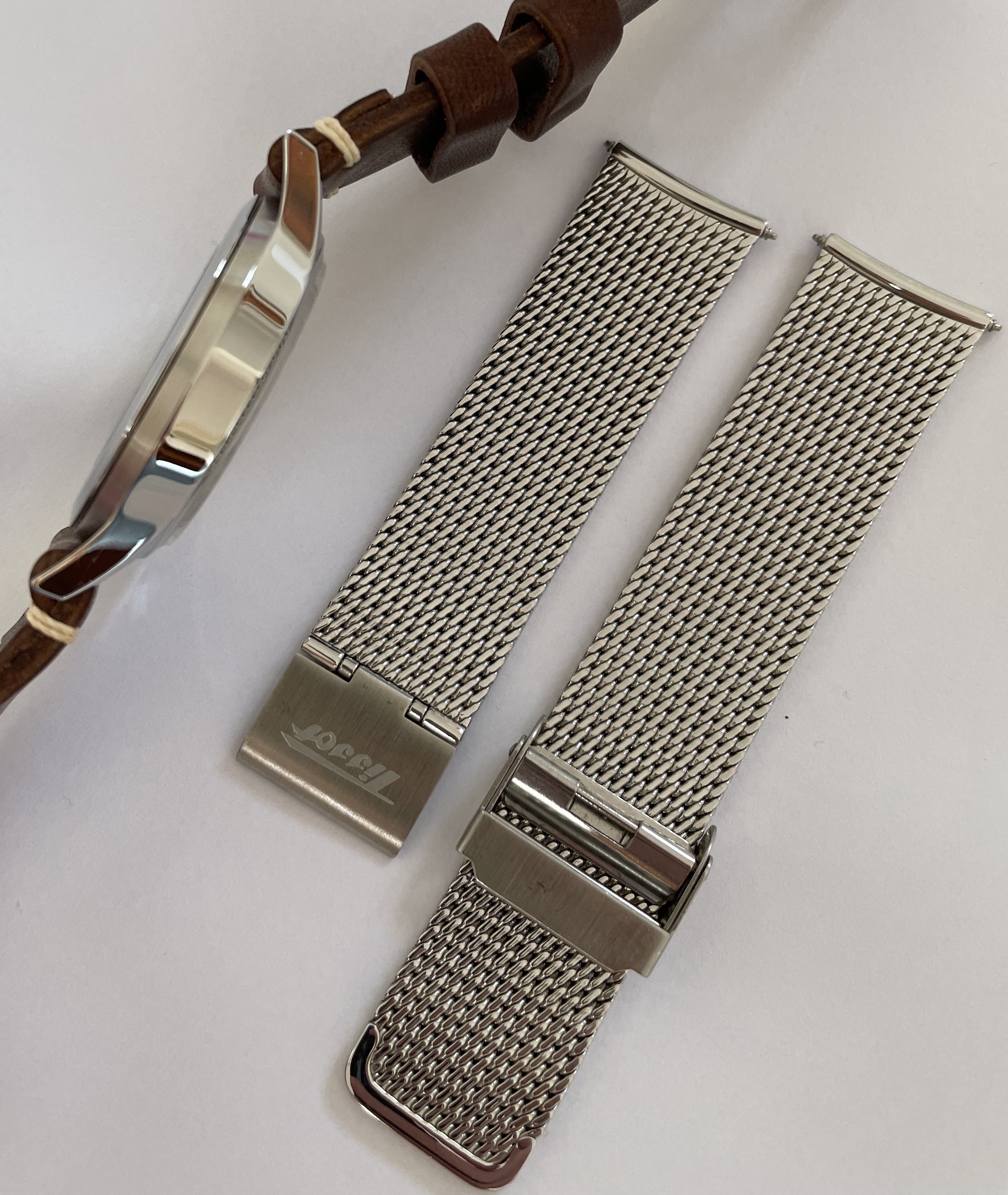 This Tissot Visodate (T019430B) is for sale together with its original mesh bracelet as well as the leather band presented in the photos. The diameter is 40mm.