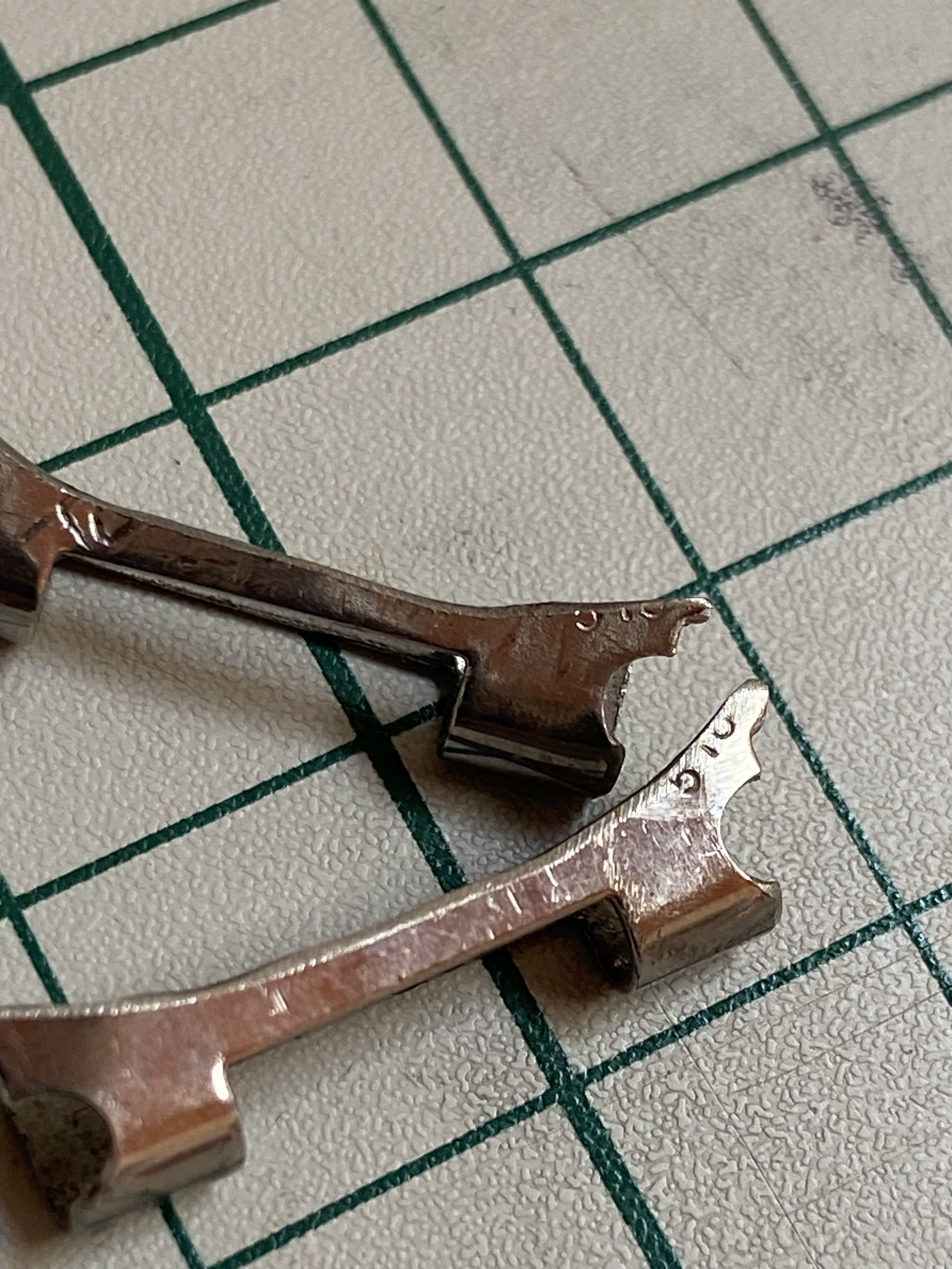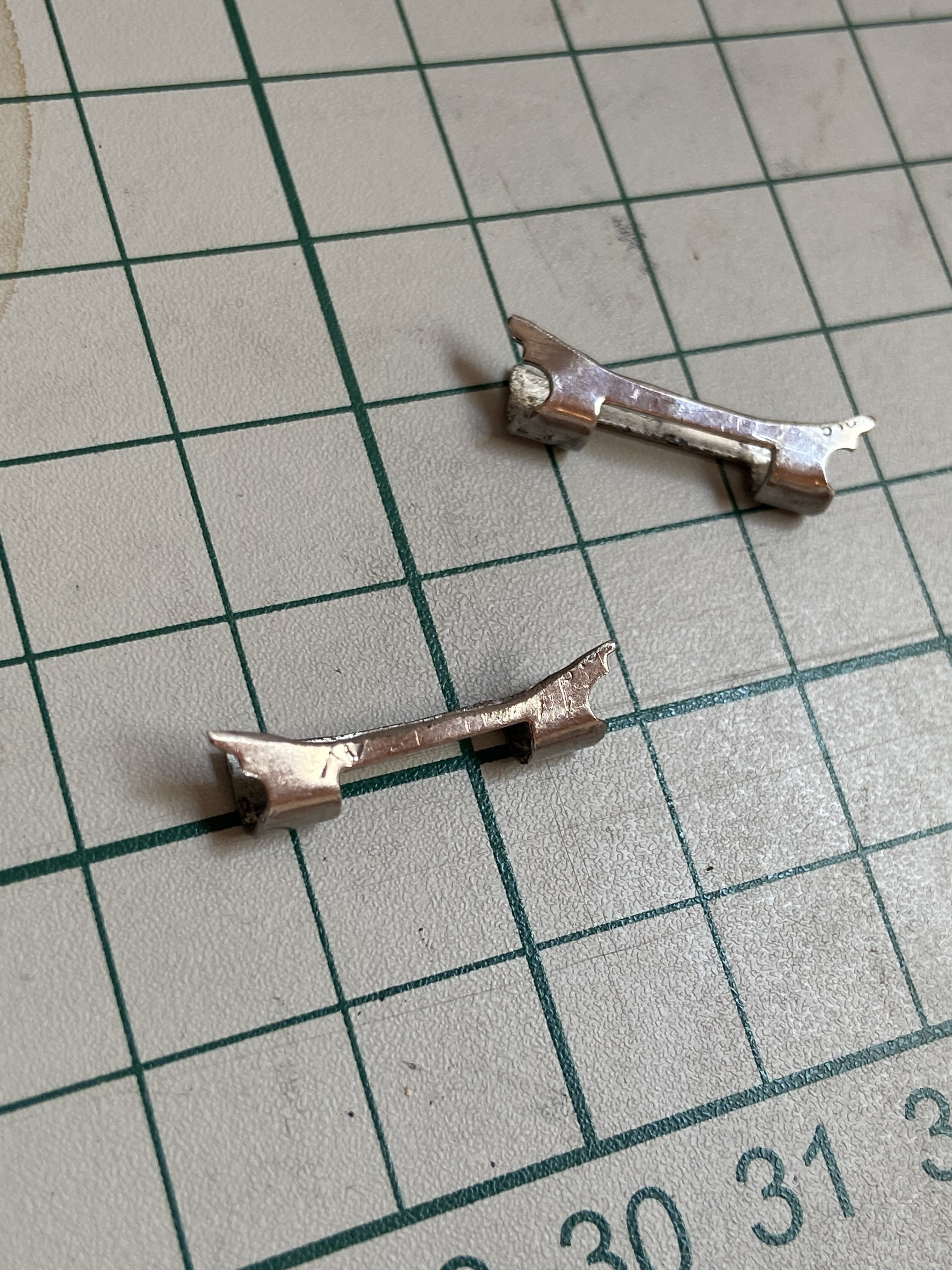 But WOW! I keep debating if they were altered for use as a straight endlink, or to use as small shanks for self defense? Sharp and pointy little suckers, I think they would have been the slowest most painful suicide method ever if left on the wrist. (And yes, they used to be 516s)
