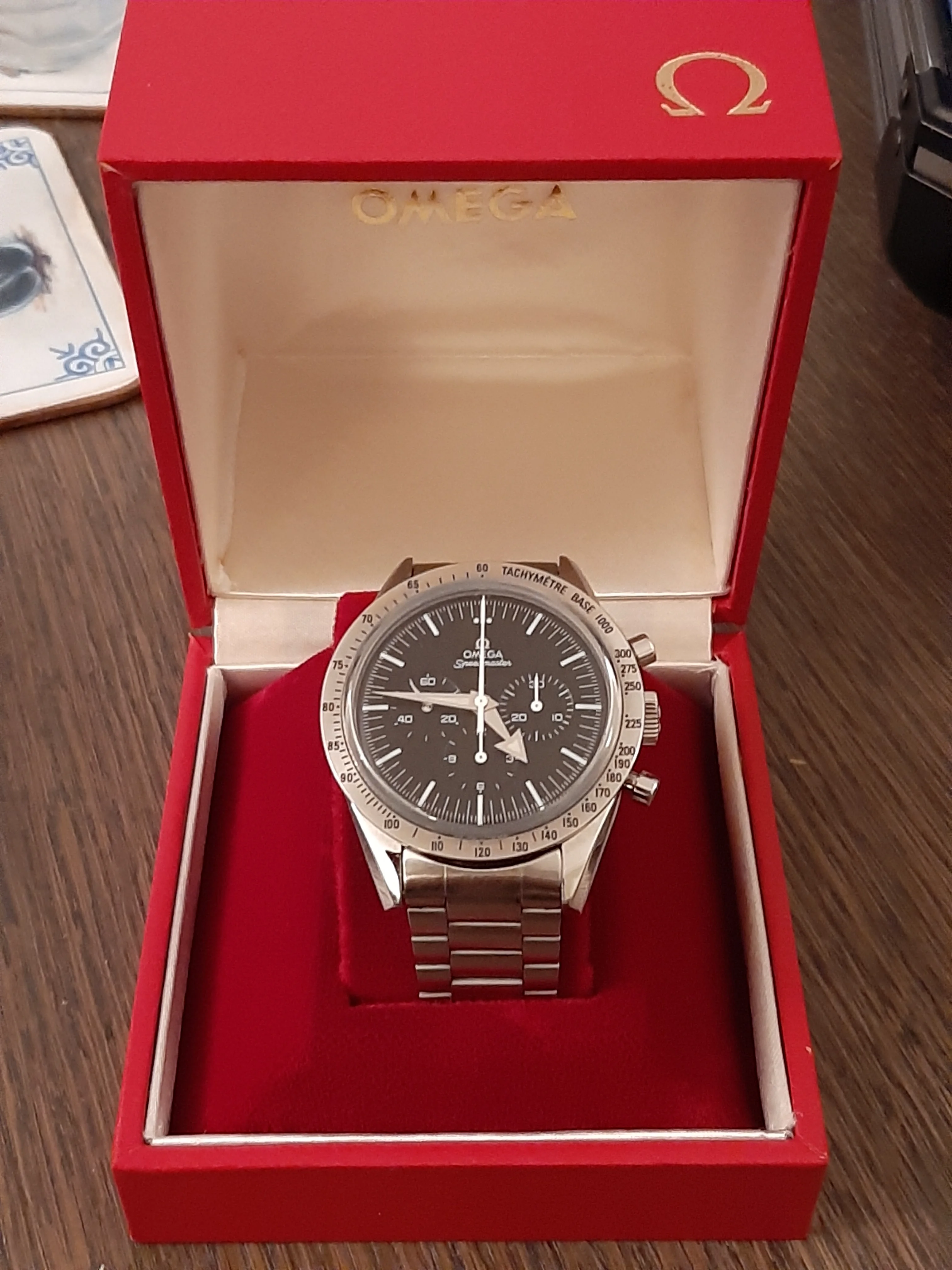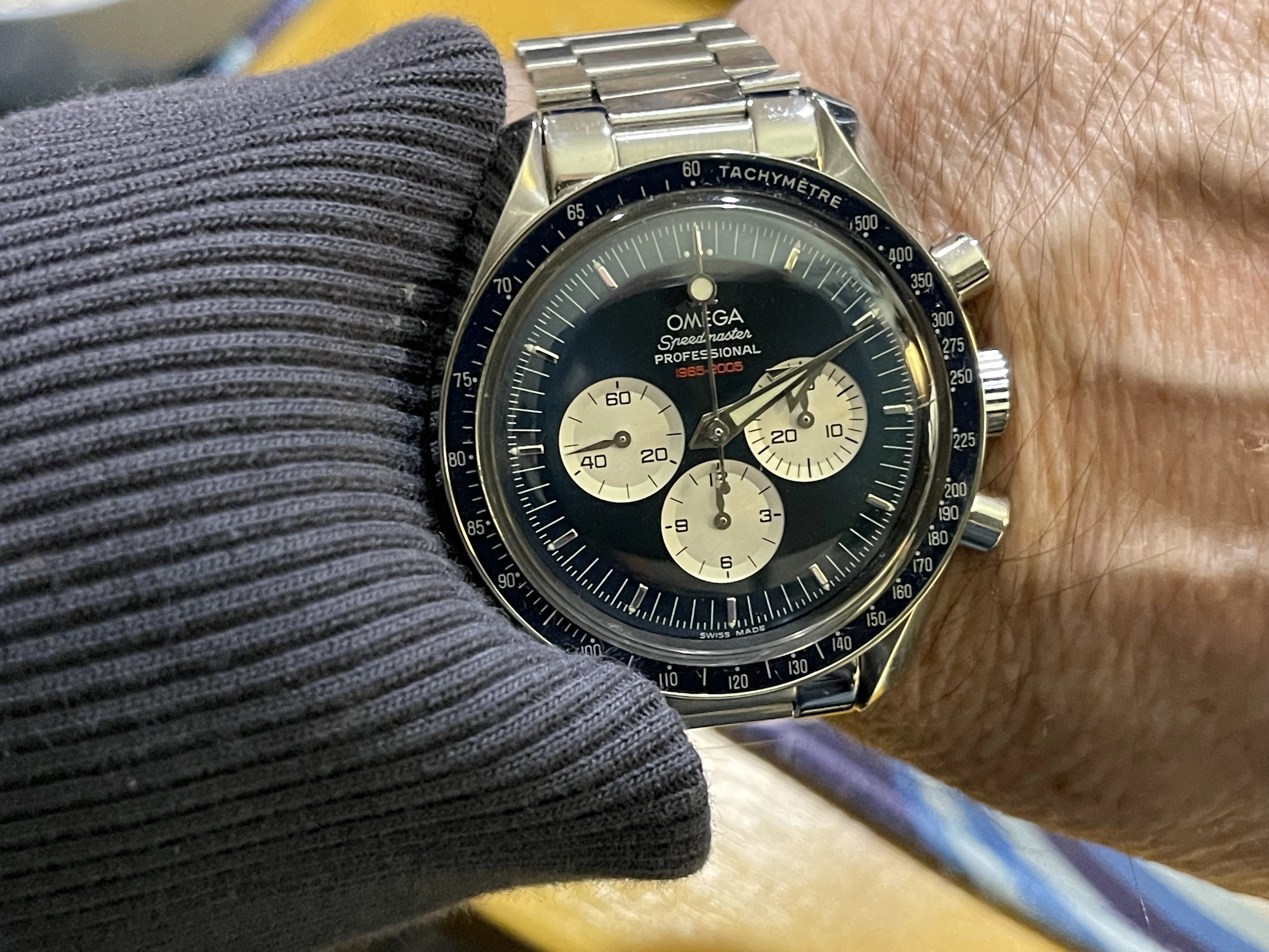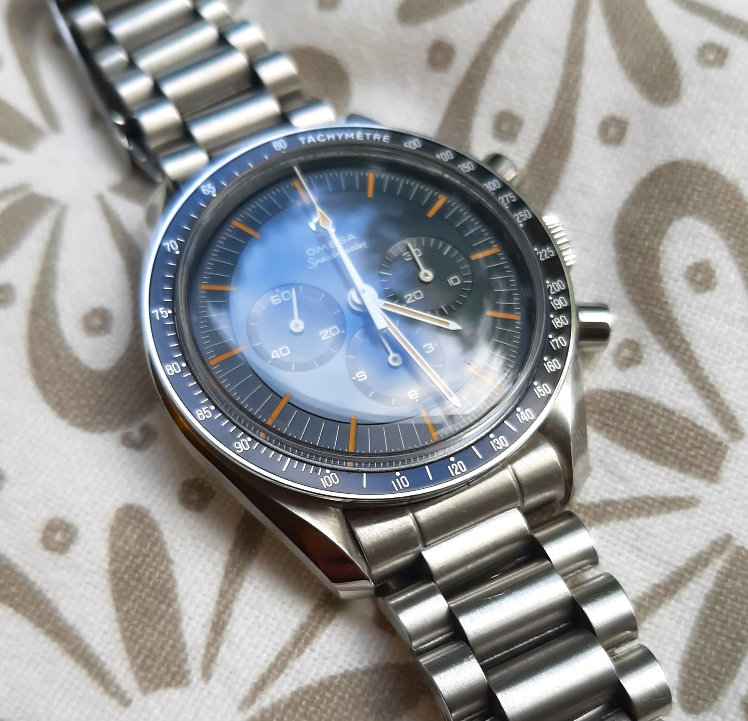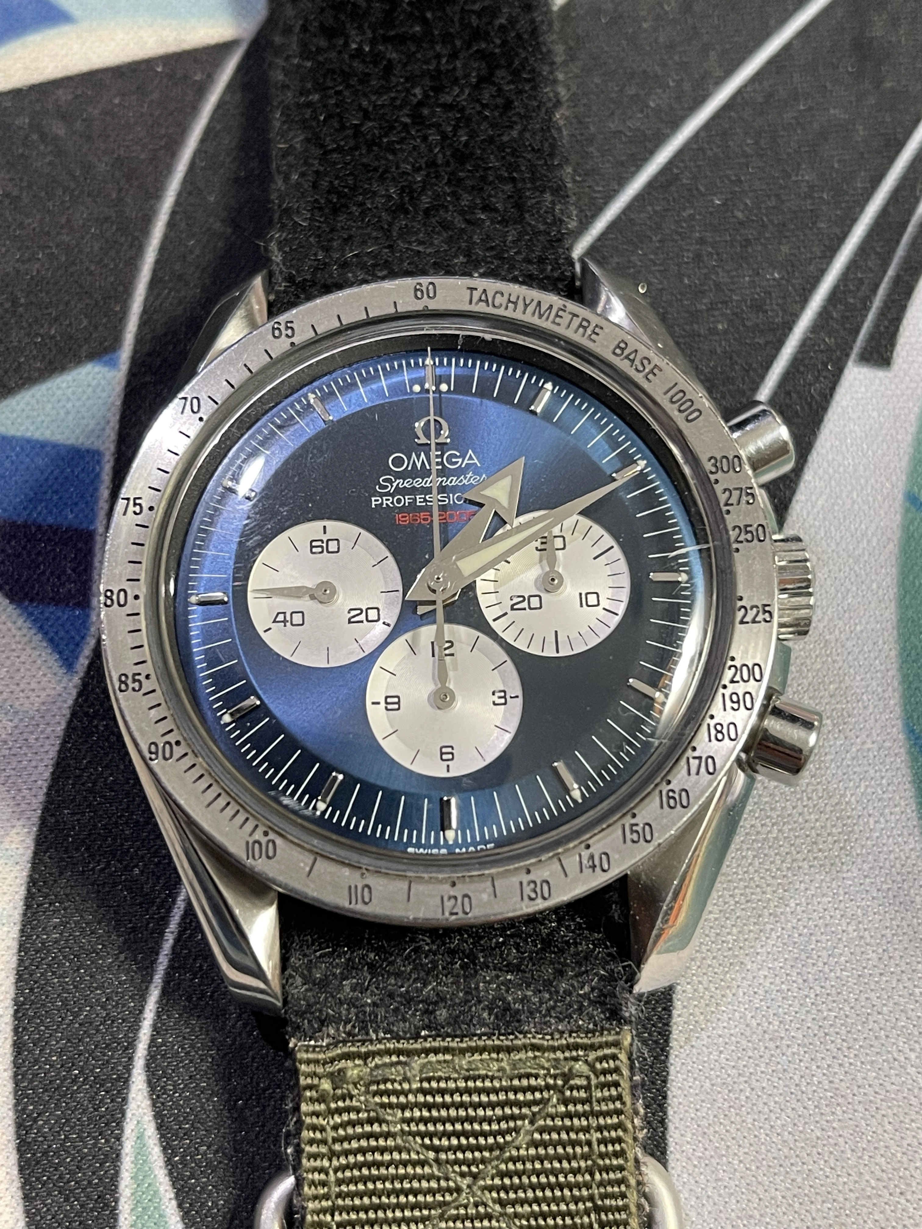 ·There are some Speedmaster dials and combinations I really like but they are on the not on my affordable list. I have no issues purchasing a modified watch or modifying a watch myself as long as it's not being presented as something it's not. Recently I picked-up a 3594-50 with a blue Gemini V dial for sale on this forum. Honestly the price was less than I can get a low milage, stock 3594-50 and I got the Gemini V mod + bezel, hands + the original 3594-50 dial. It was an Omega lego kit. My mistake was meeting with Dave to pick up this watch and then see his Panda. This is kinda the inverse of the Gemini dial and to see it in the flesh, it's an absolute killer. I know Dave wanted me to dive into the Gemini V but that damn Panda on his wrist had my attention. So I get home to work on the Gemini and find another member happens to have a Mitsukoshi dial and hands for sale. Like I see on this forum, it's a reasonable price so I picked them up and then sourced an older 3594-50. In the end I've got the two Speedmasters with parts I purchased or have in stock for around $3600 each. If I had an original Gemini V and Mitsukoshi I'd wear them occasionally to preserve value vs not worrying about scratching or wearing the ones I built. So now for the pictures: