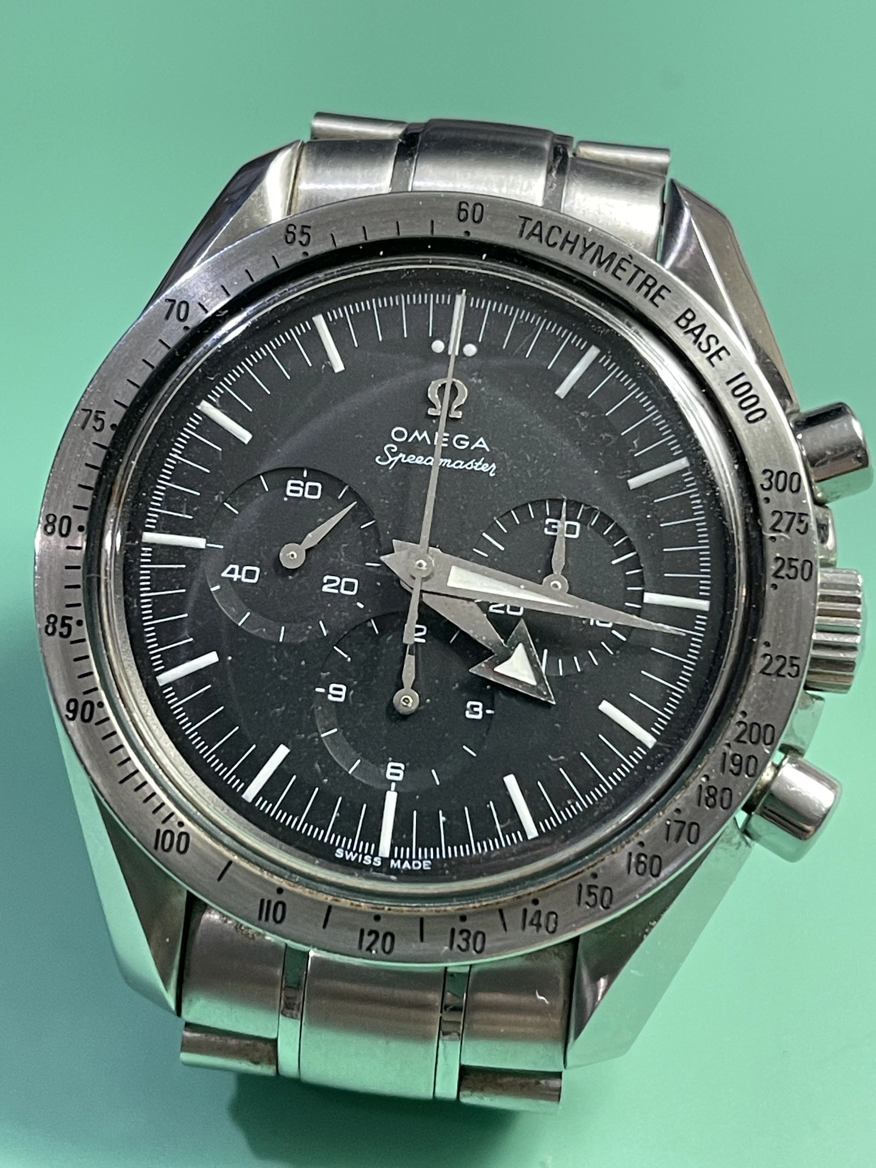 I changed out the 3594-50 bezel with the Blue Gemini V and added an Omega flat link bracelet with solid uncle links and cleaned up the crystal. The 1861 movement is in great condition, so nothing else was needed.