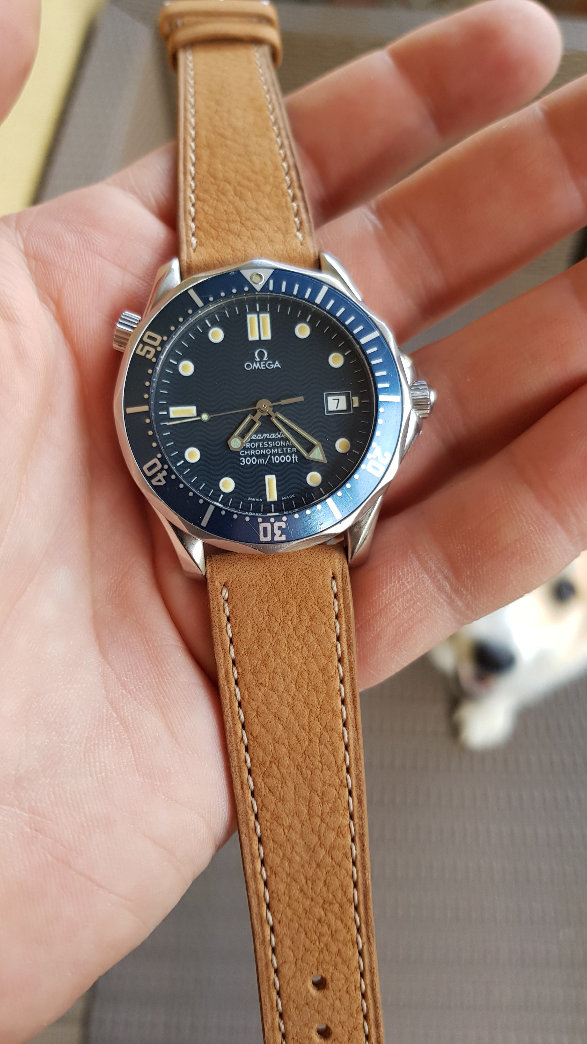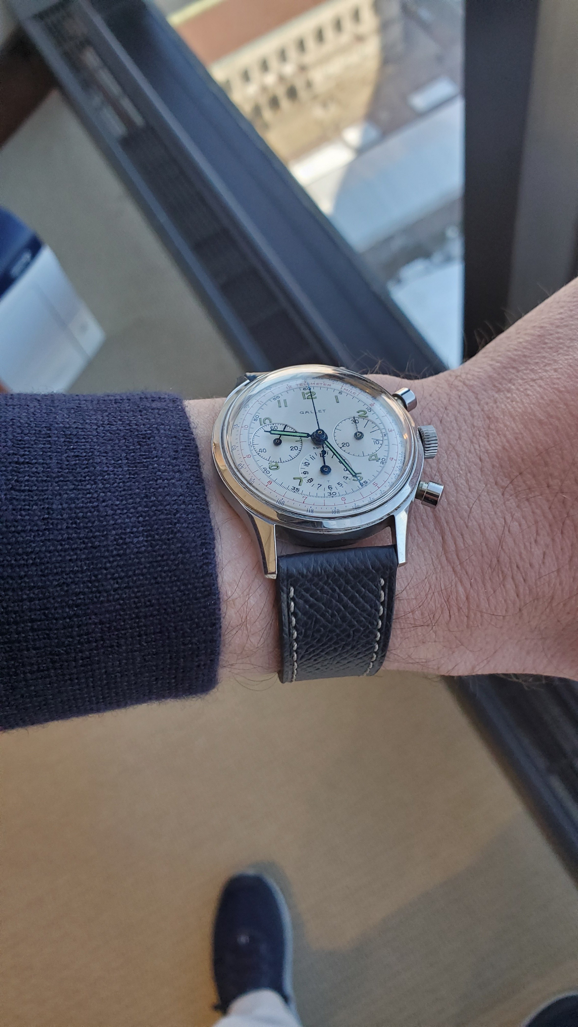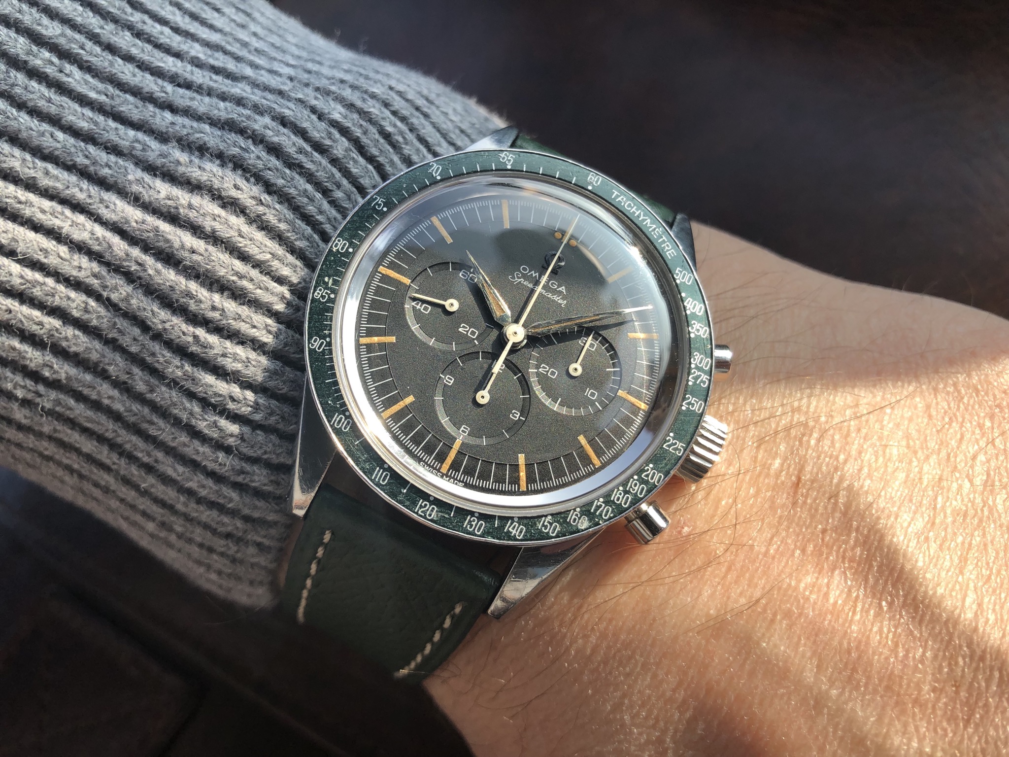 I've got it paired with a vintage jumbo Tissot, and the green strap seems to be happy cohabiting with the watch, especially the gold numerals (at least to me!)