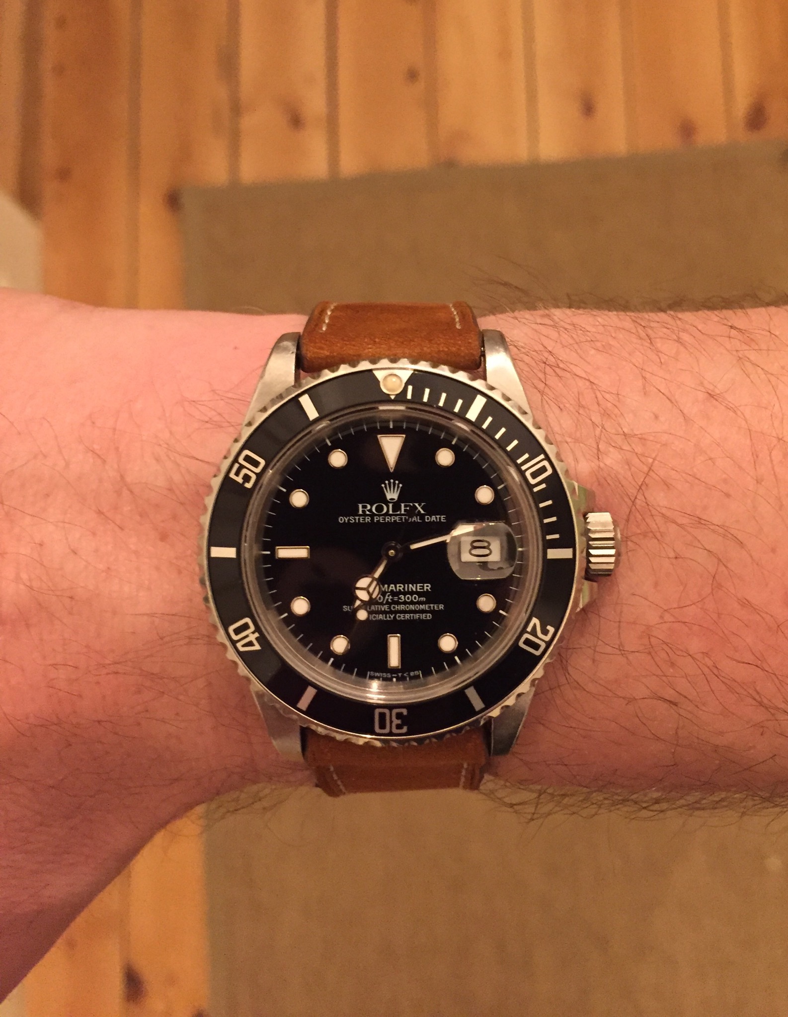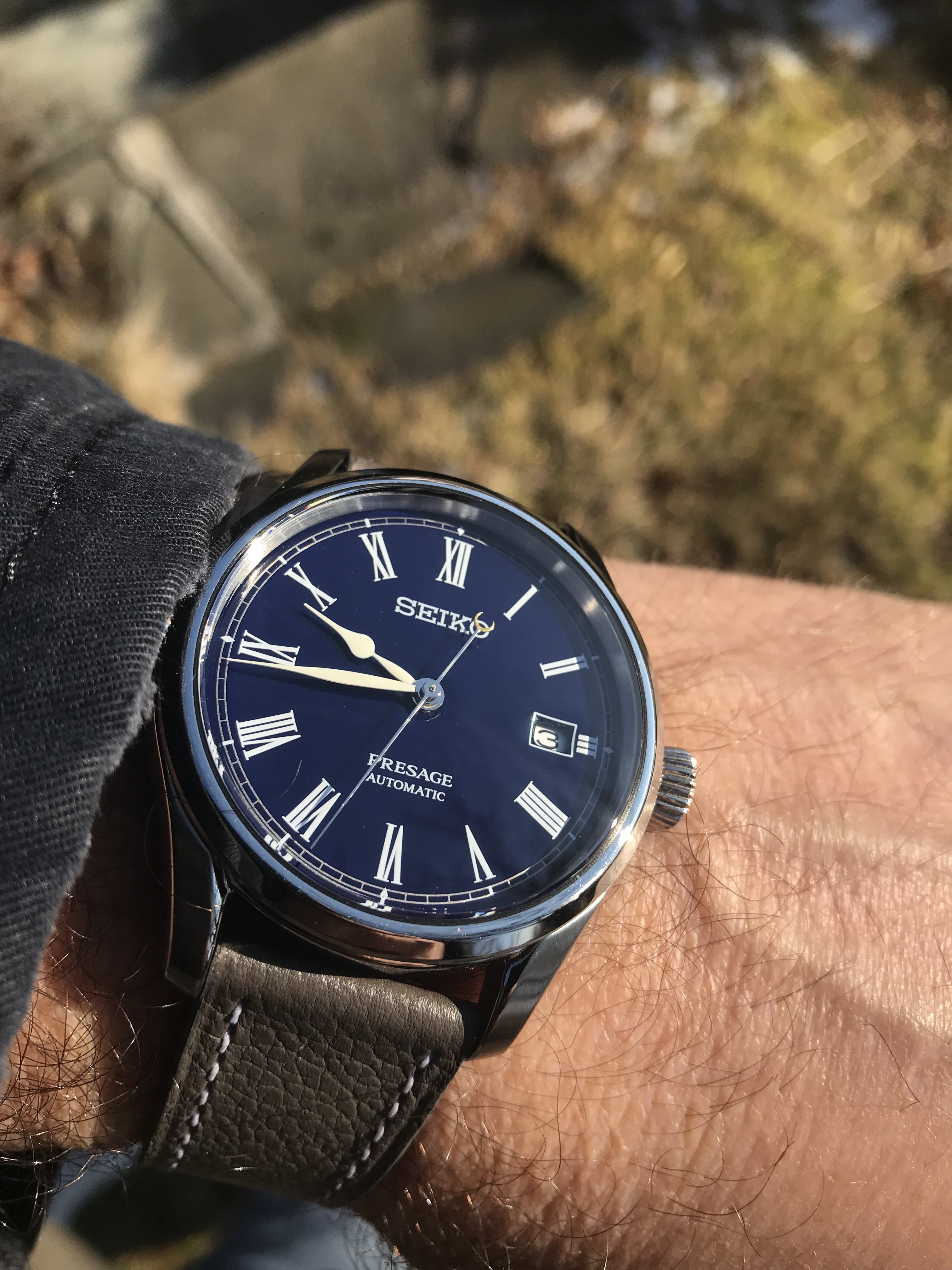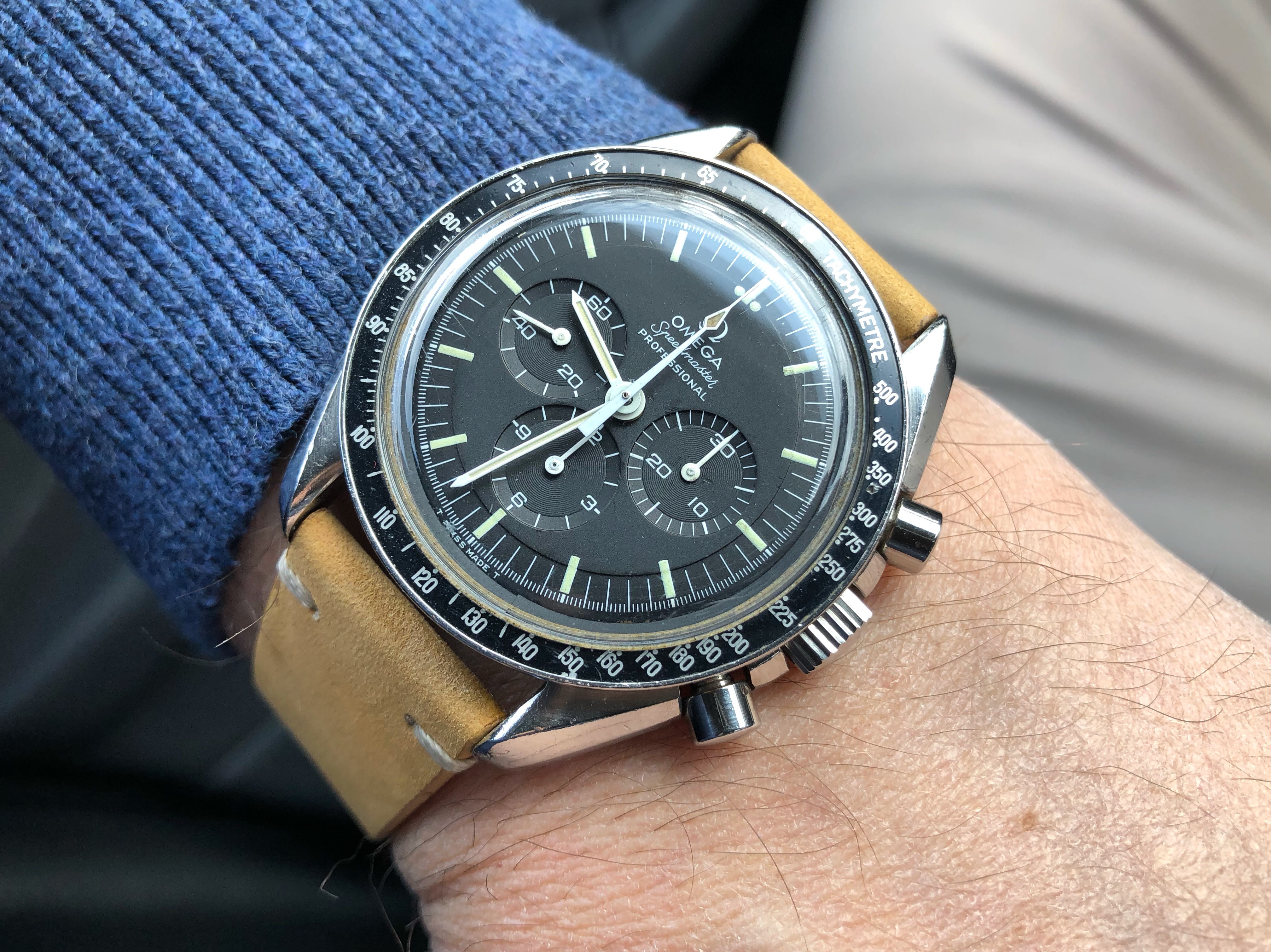 I've got it paired with a vintage jumbo Tissot, and the green strap seems to be happy cohabiting with the watch, especially the gold numerals (at least to me!)
