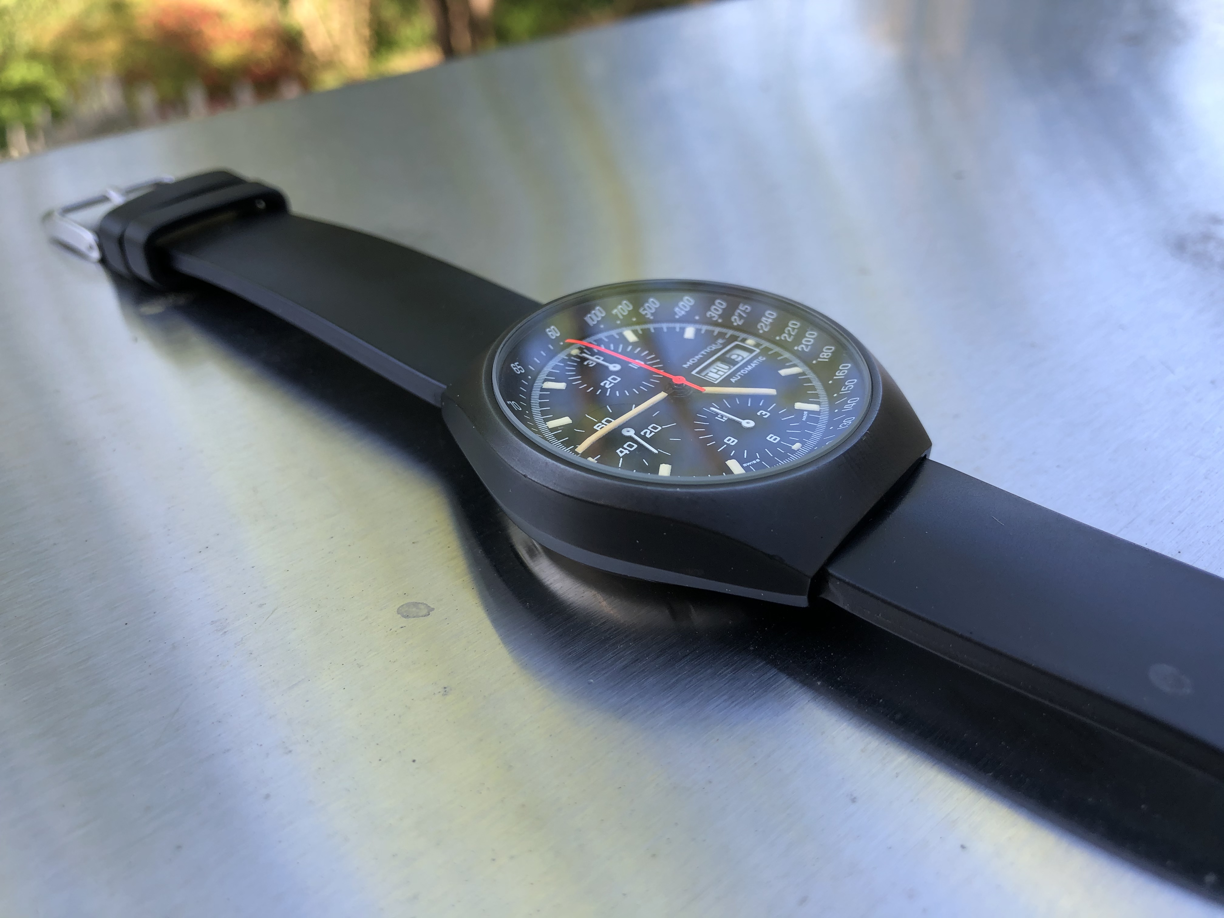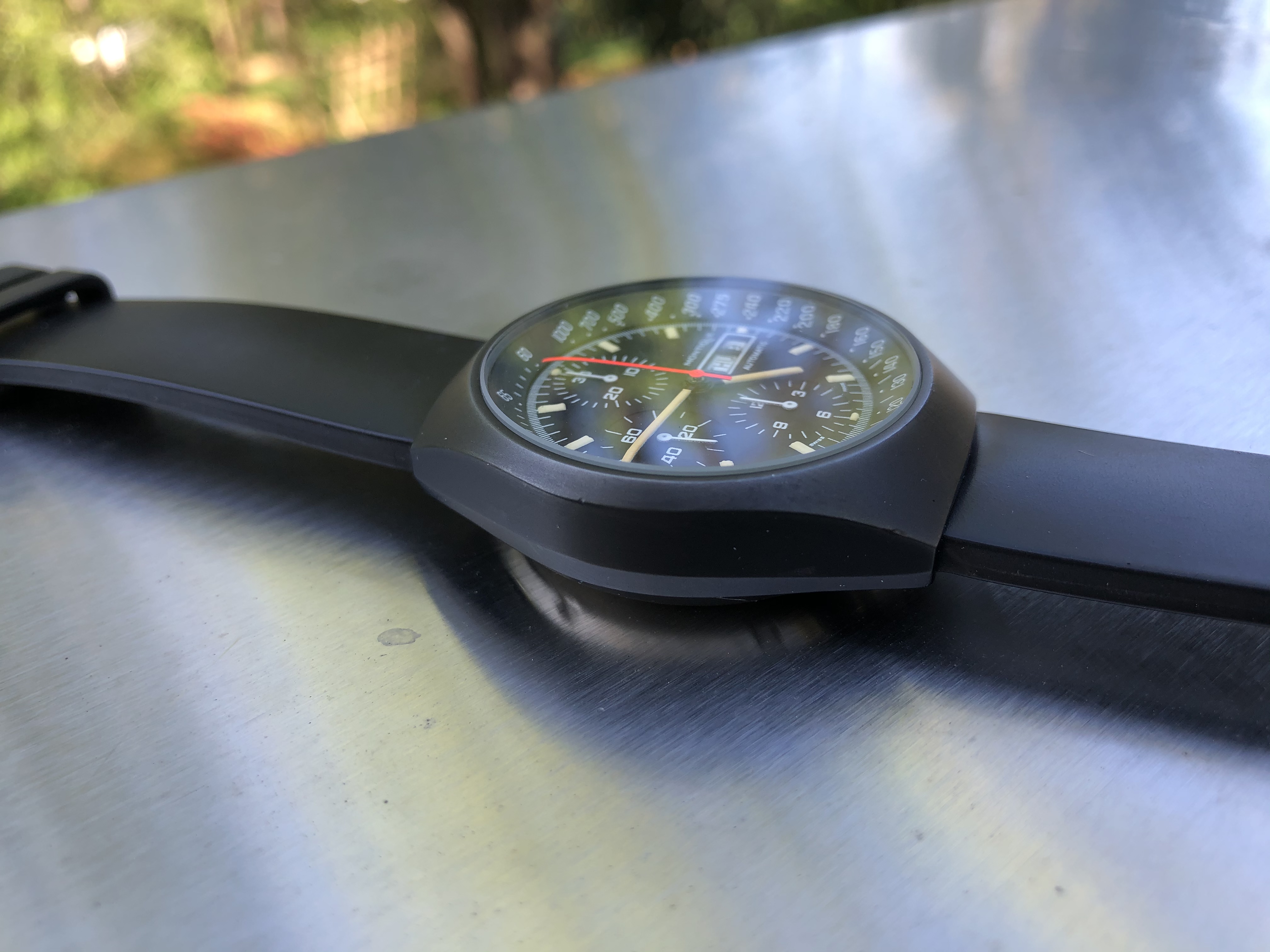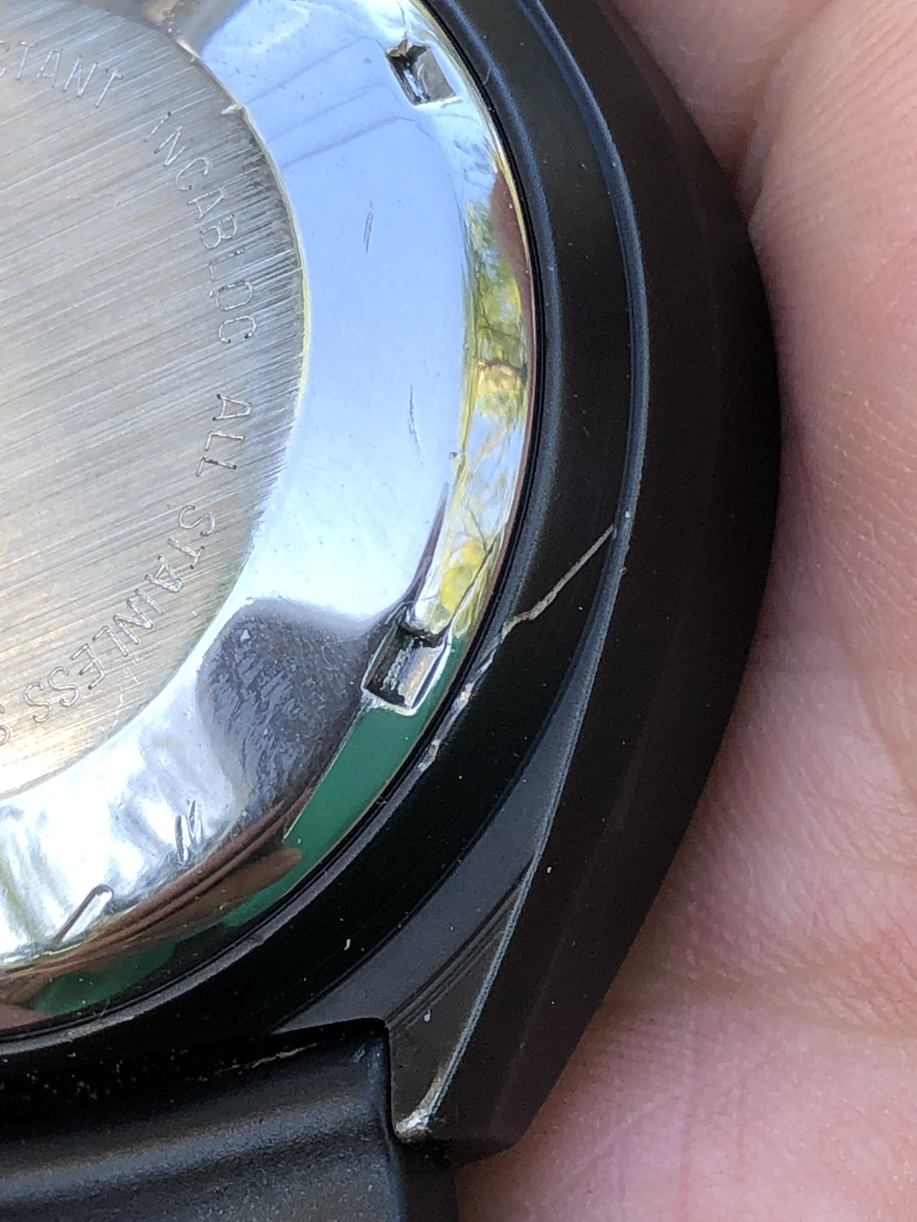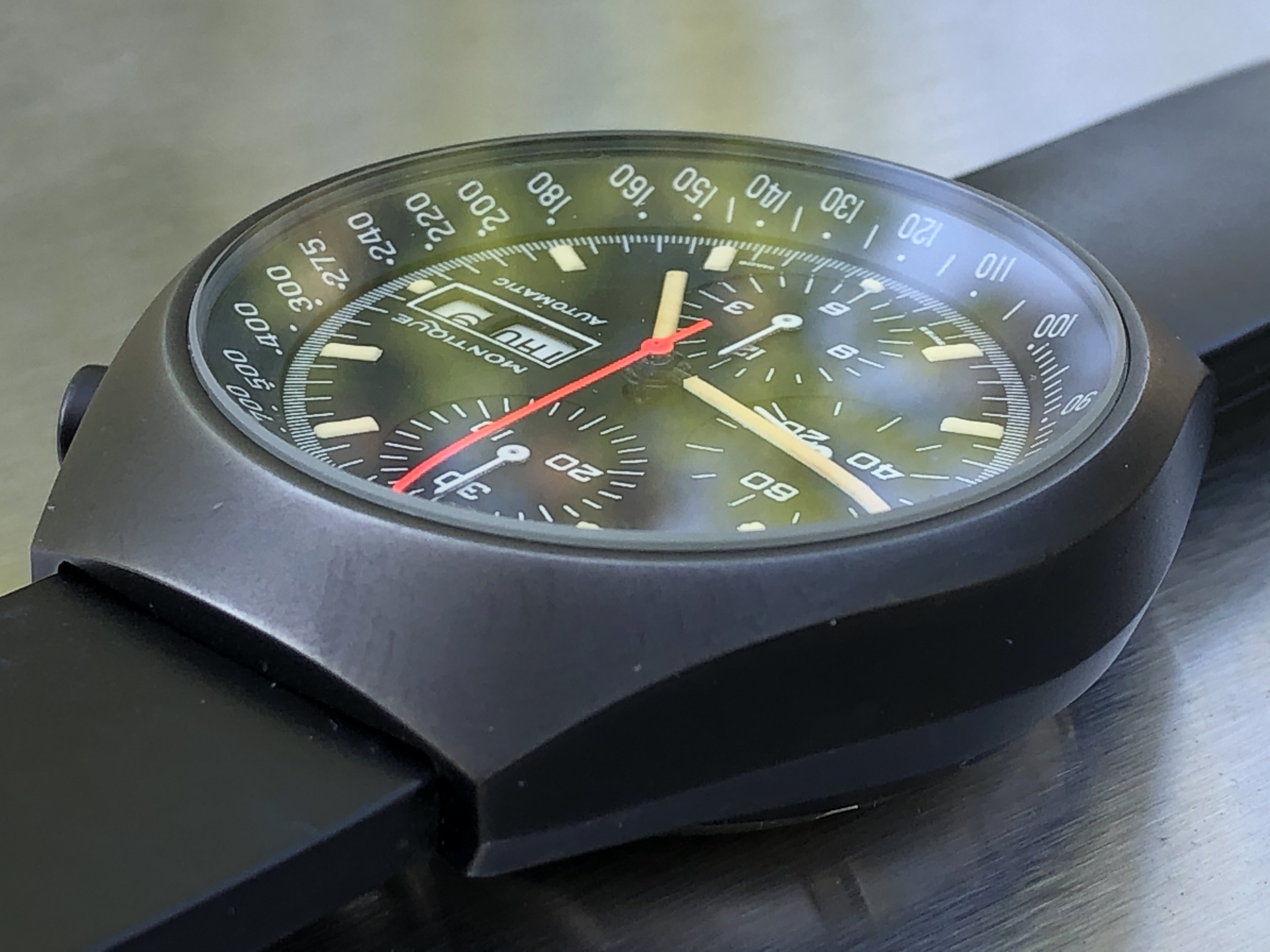 Case: 41mm stainless with PVD coating in excellent condition with minor wear around the pushers and one scratch on the back, minor loss on edges.
