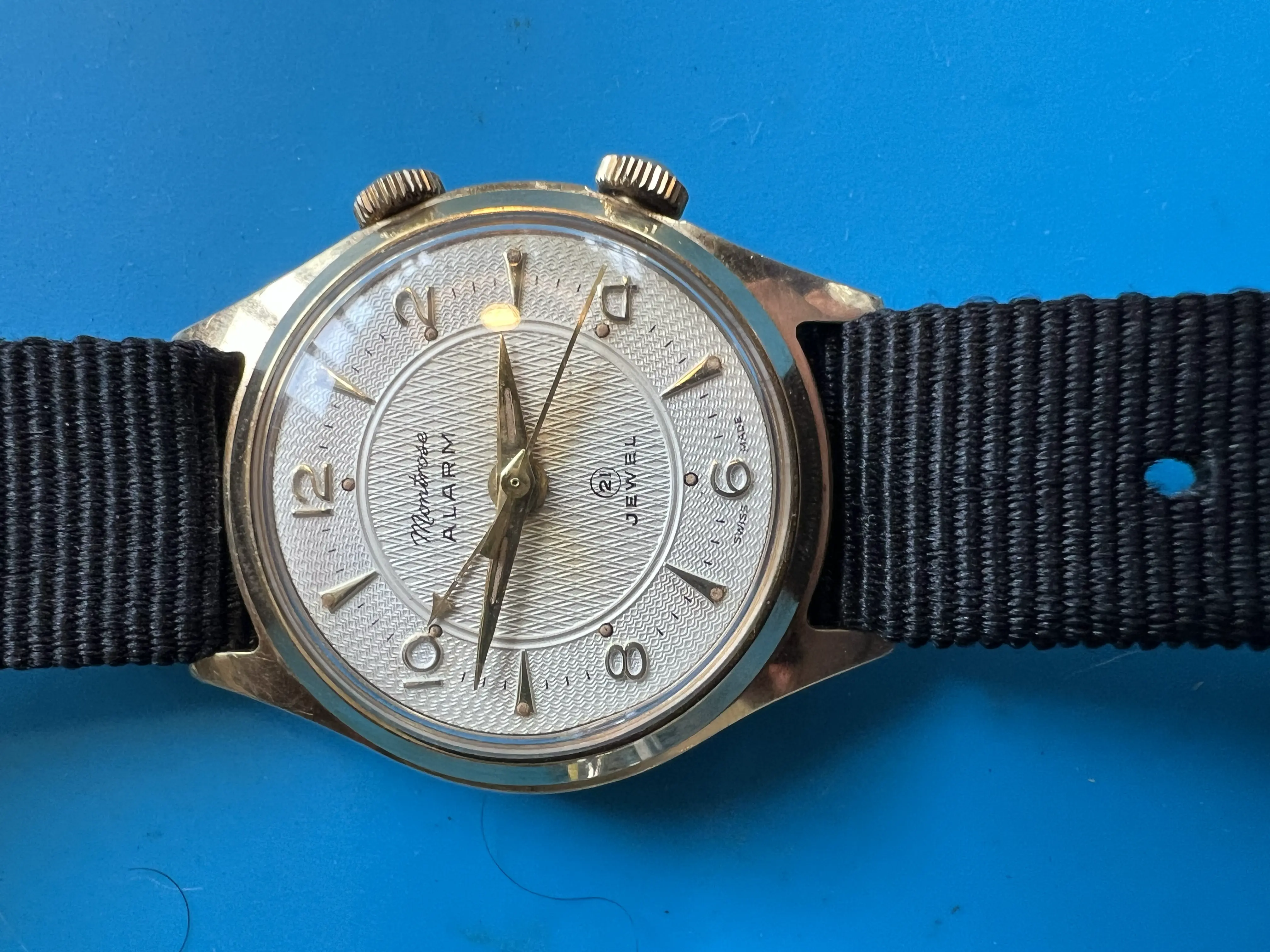 ·Good afternoon. Hopefully I'm not breaking any rules with this being my first post. Have lurked around this forum quite a bit and got some good information. I've had this Montrose 21 jewel alarm for a while and I absolutely love it. It's clean and runs superbly. The alarm works as intended and dial is beautiful. Recently tried to get some more information on the watch, and I have found very little. It's my understanding that Gruen/Schild used the Montrose name in the 50s, so I'm assuming one of them is the manufacturer. The movement and dial both stamped Swiss made and the movement has Montrose on the ratchet with and a fleur di lis on what I assume is copper colored brass. The internet A.I. is telling me this is a Venus 188 movement, but I believe that is for a chromo and would not be used in an alarm. Also, I don't see the resemblance. Any information that anybody could provide would be extremely helpful. Thanks in advance.