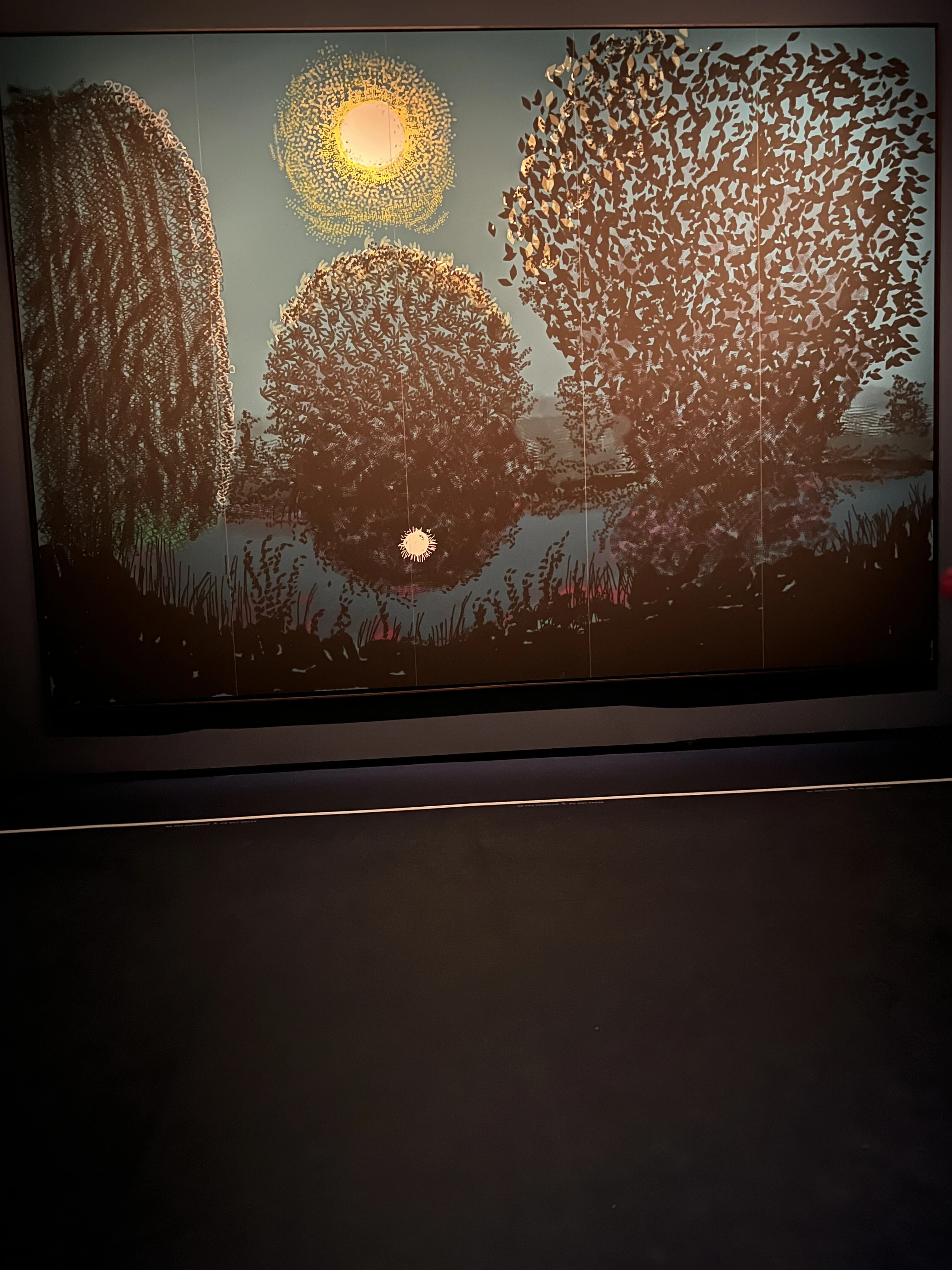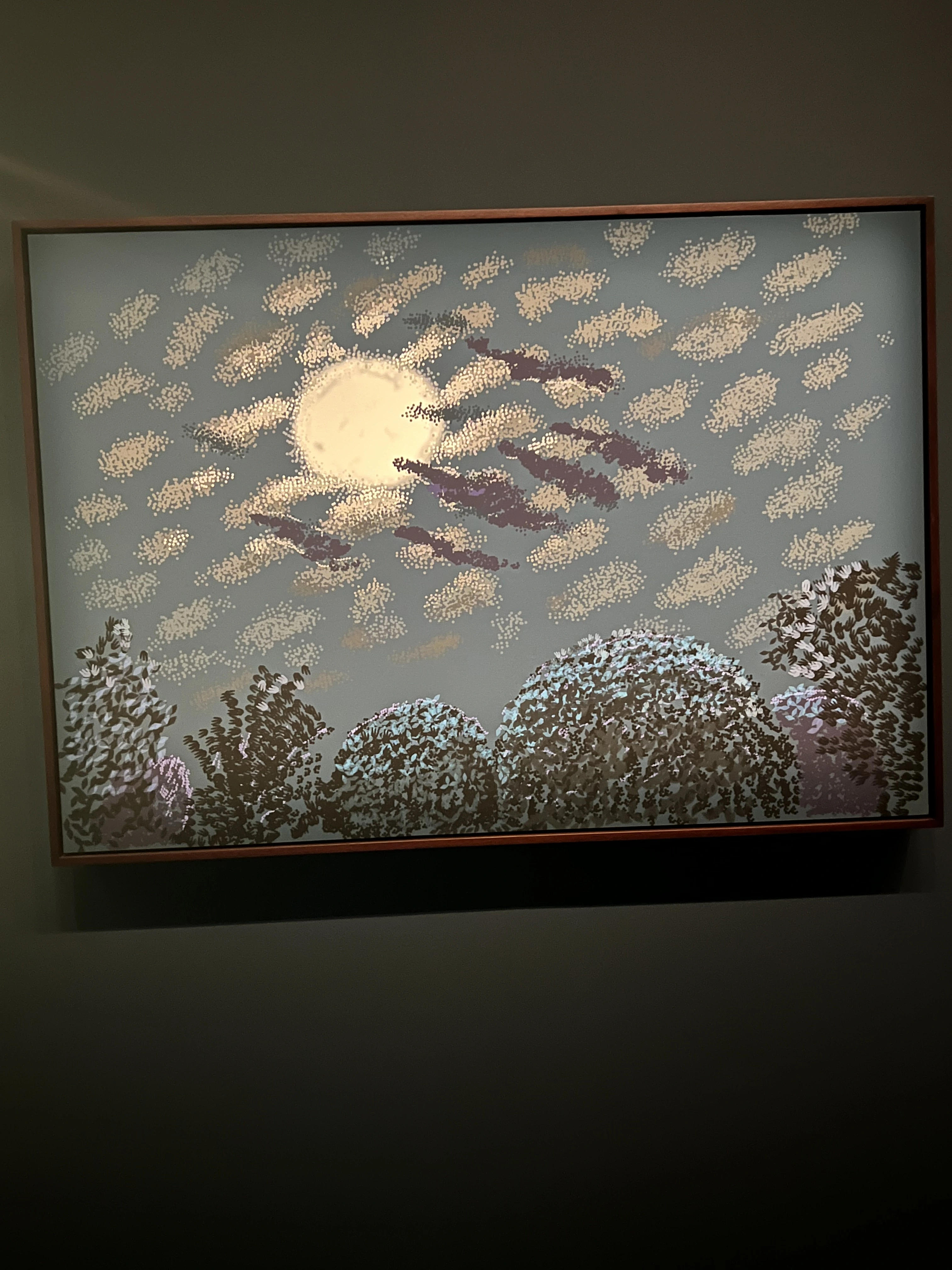 There is a “Moon Room” where a number of paintings of the Moon done at different times of the night. Many of these were done on his iPad which he used in his late career.