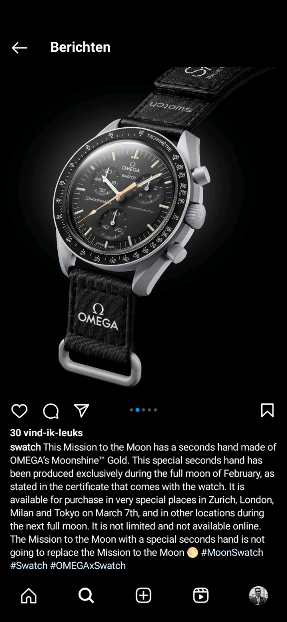 ·One could be persuaded that the "smart" way to sell the Moonswatch would be online with a "notify" when the one you want is available, they would be able to gauge demand for which version is selling the best, but you'd be missing the point. The real reason is to get you into a Boutique to see and hopefully buy a " real" Omega.