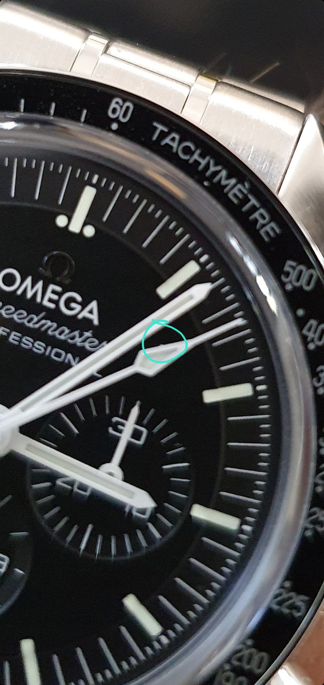 ·Hi all, I bought a 3861 moonwatch yesterday. I've noticed the finishing on the chrono hand isn't great, see photo.