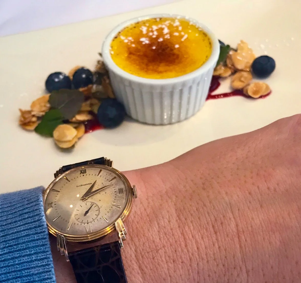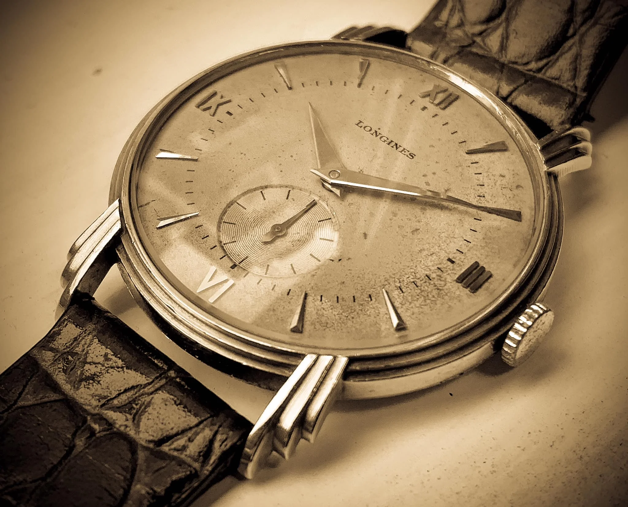 It's a wonderful 1948 art-deco Longines with cal.23M and solid rose-gold case. The dial has tons of character.