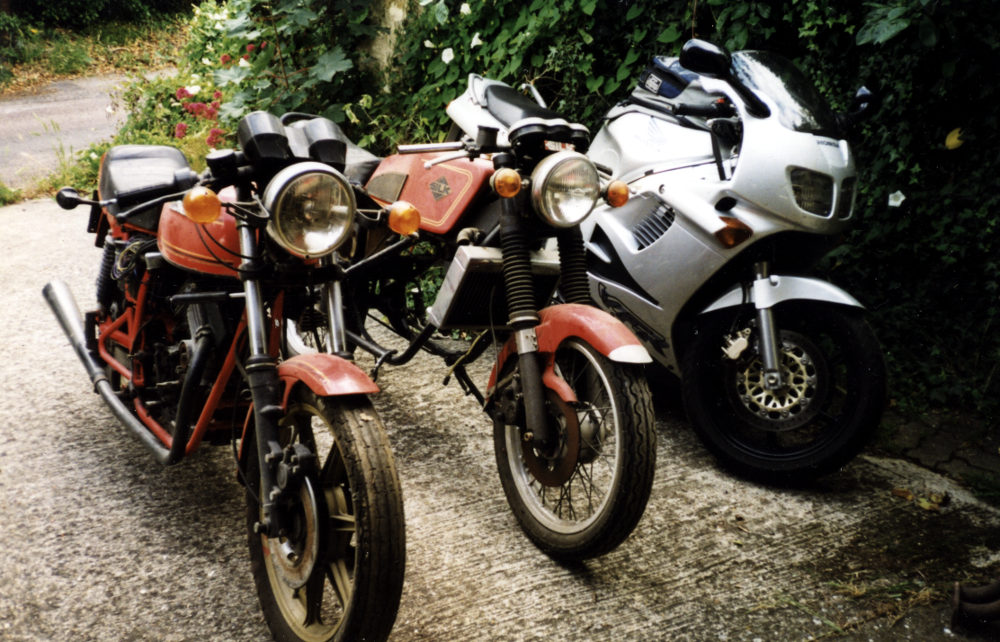 Here are three 'bikes, one Italian (20yo), one British (20yo) and one Japanese (2yo). Look carefully, which two are incomplete for maintenance and which is all in one piece and used for daily transport? Go on, take a wild guess!