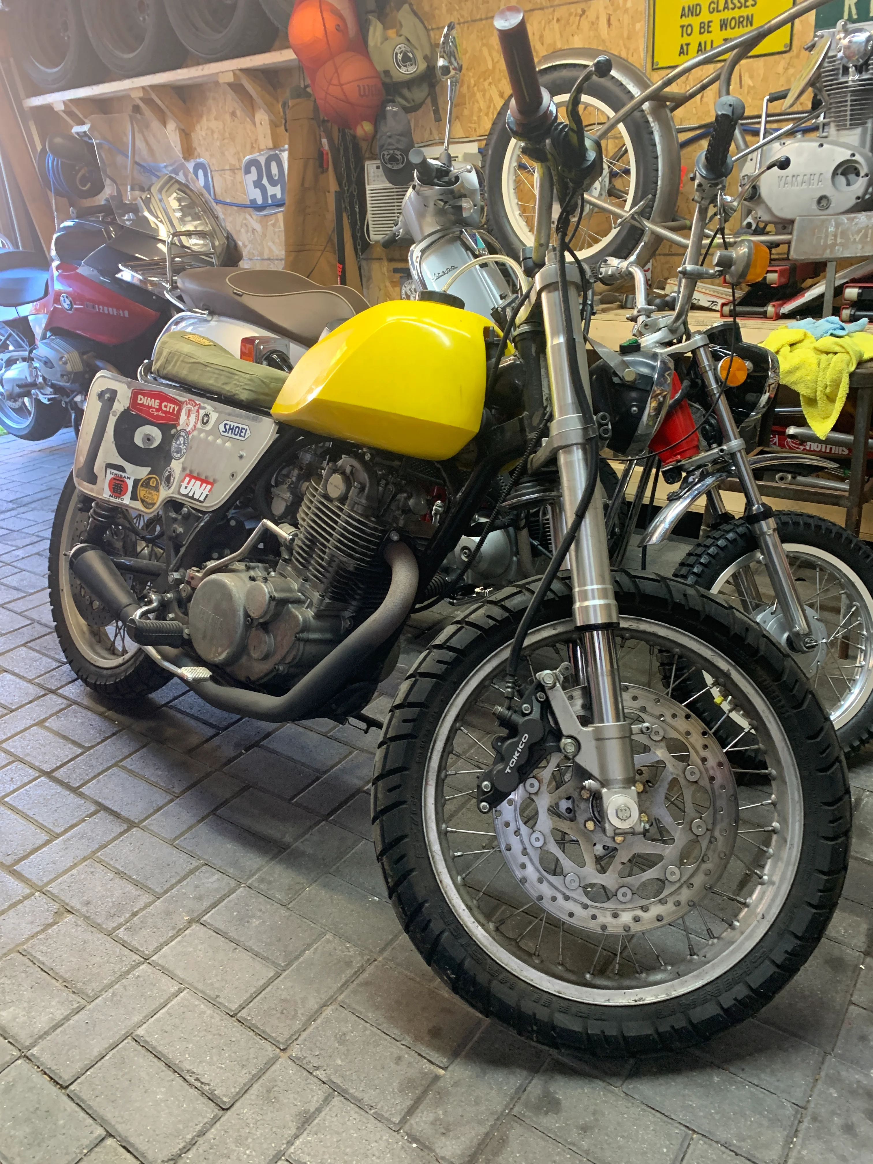 1975 Yamaha SR500 (dodgy bike with the yellow plastic tank)
