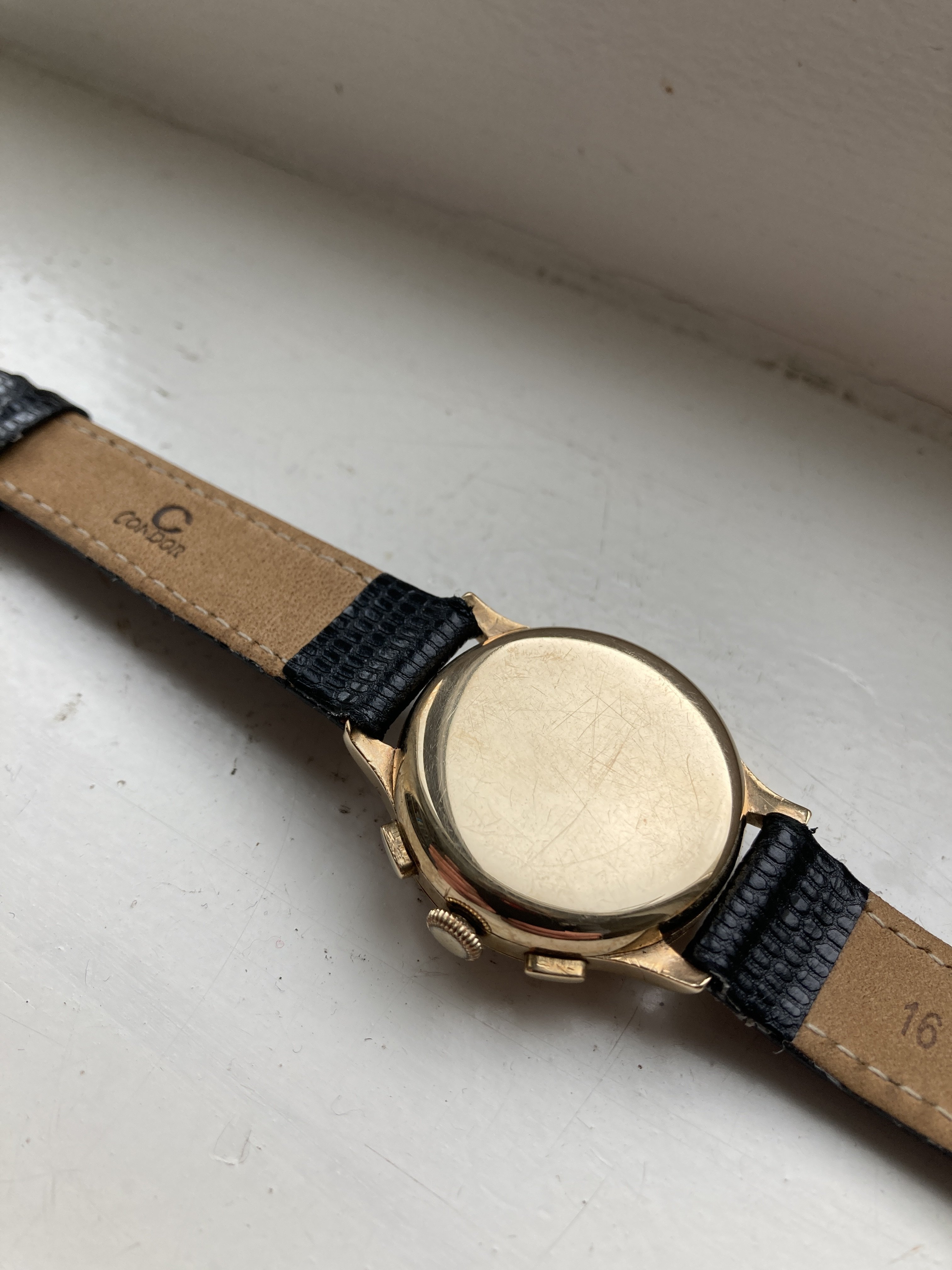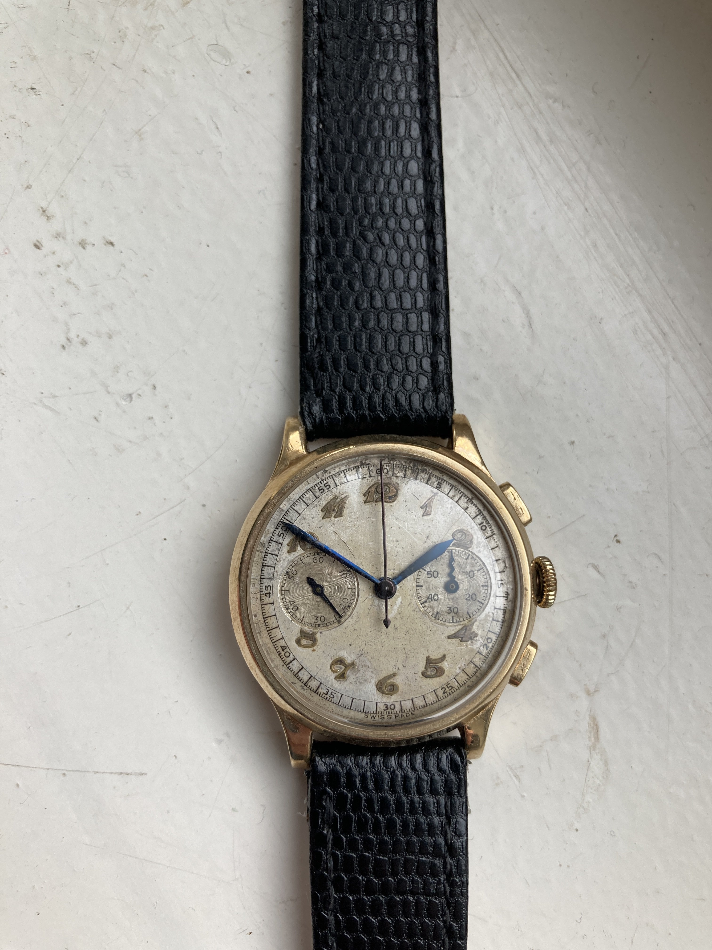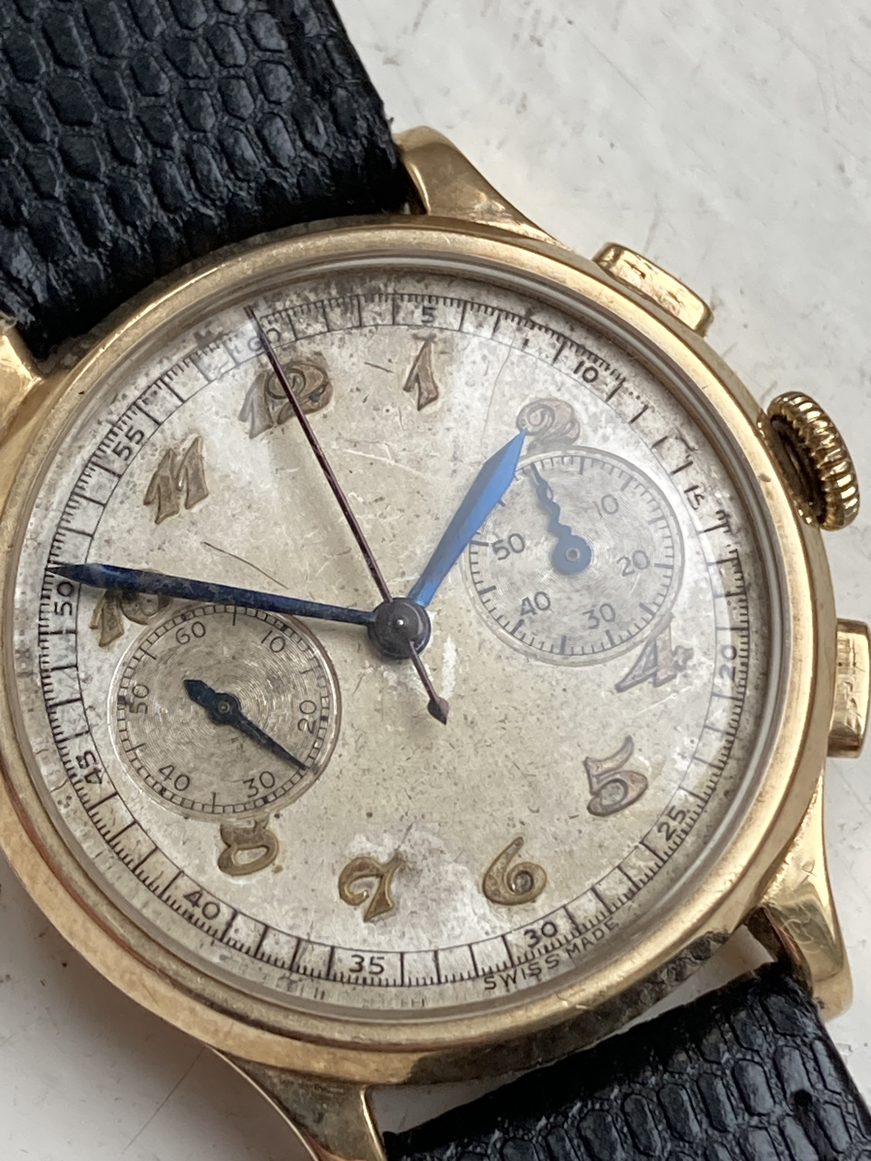 Movado chronograph reference 99001. Serial dates it to 1938. Bought this for the mrs but she prefers a smartwatch.