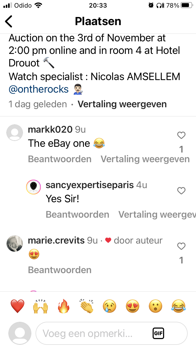 Time will tell whether this was a legit sale but a very desirable watch it is. Ref 19008. All correct. 2 bidders - both without feedback - drove it up to EUR 46k but a last second bidder won it with EUR 46.050 [there were also geographical bidding restriction so probably only French bidders could bid; which may also explain the 0 feedback bidders]. Link https://www.ebay.nl/itm/276007317176