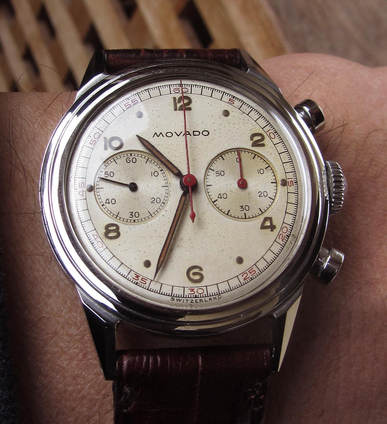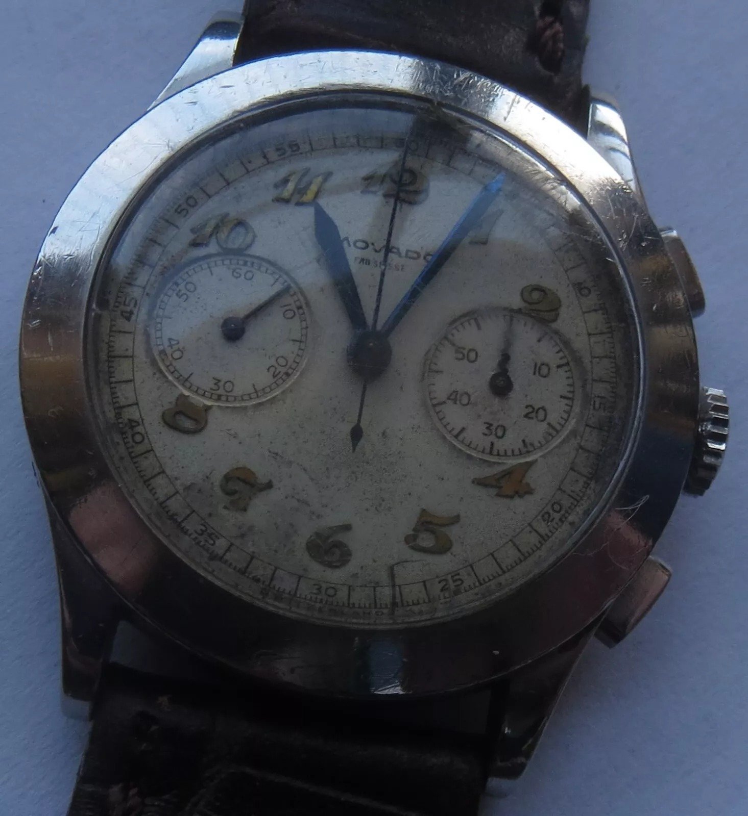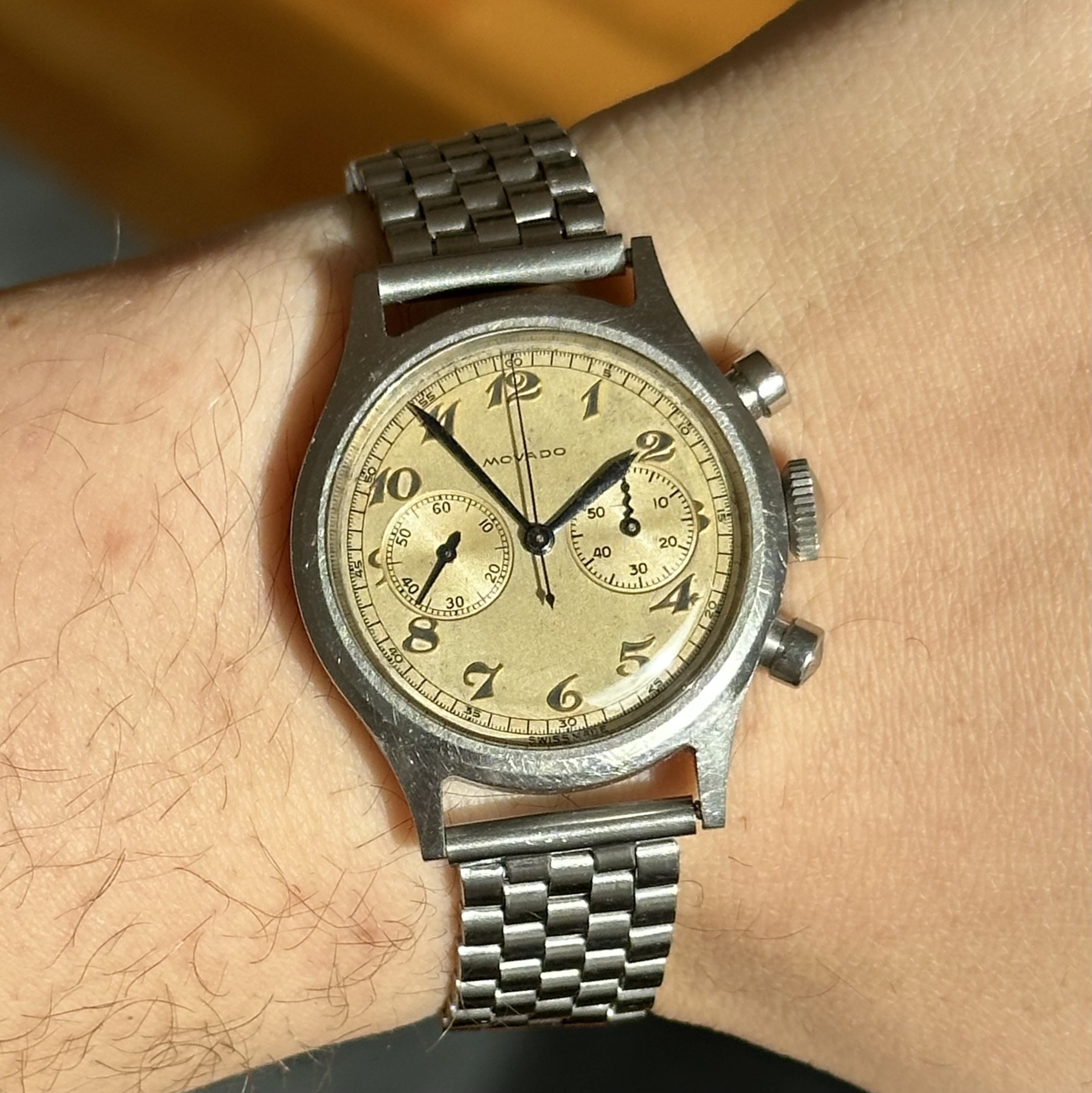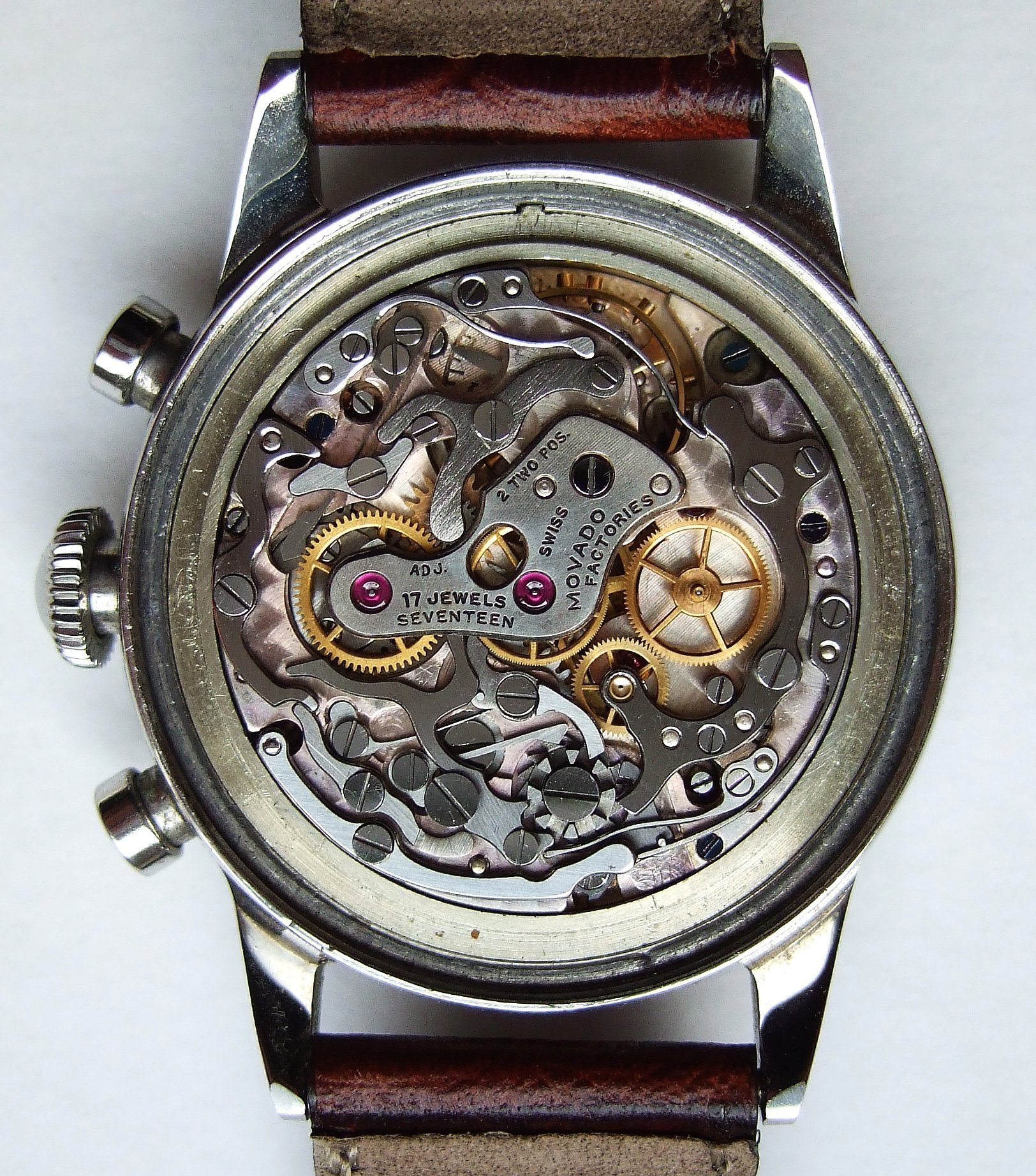 Here - again - my Movado M90 Chronograph (which I bought in 1995 not because of the Norwegian military engraving on the caseback, but because I was interested in the movement). There's nothing special about the watch, except that every time I googled for another M90 showing the words "Adj. 2 two Pos." on the chrono bridge, nothing like this could be found. So I thought I might ask here if anyone knows something about it.