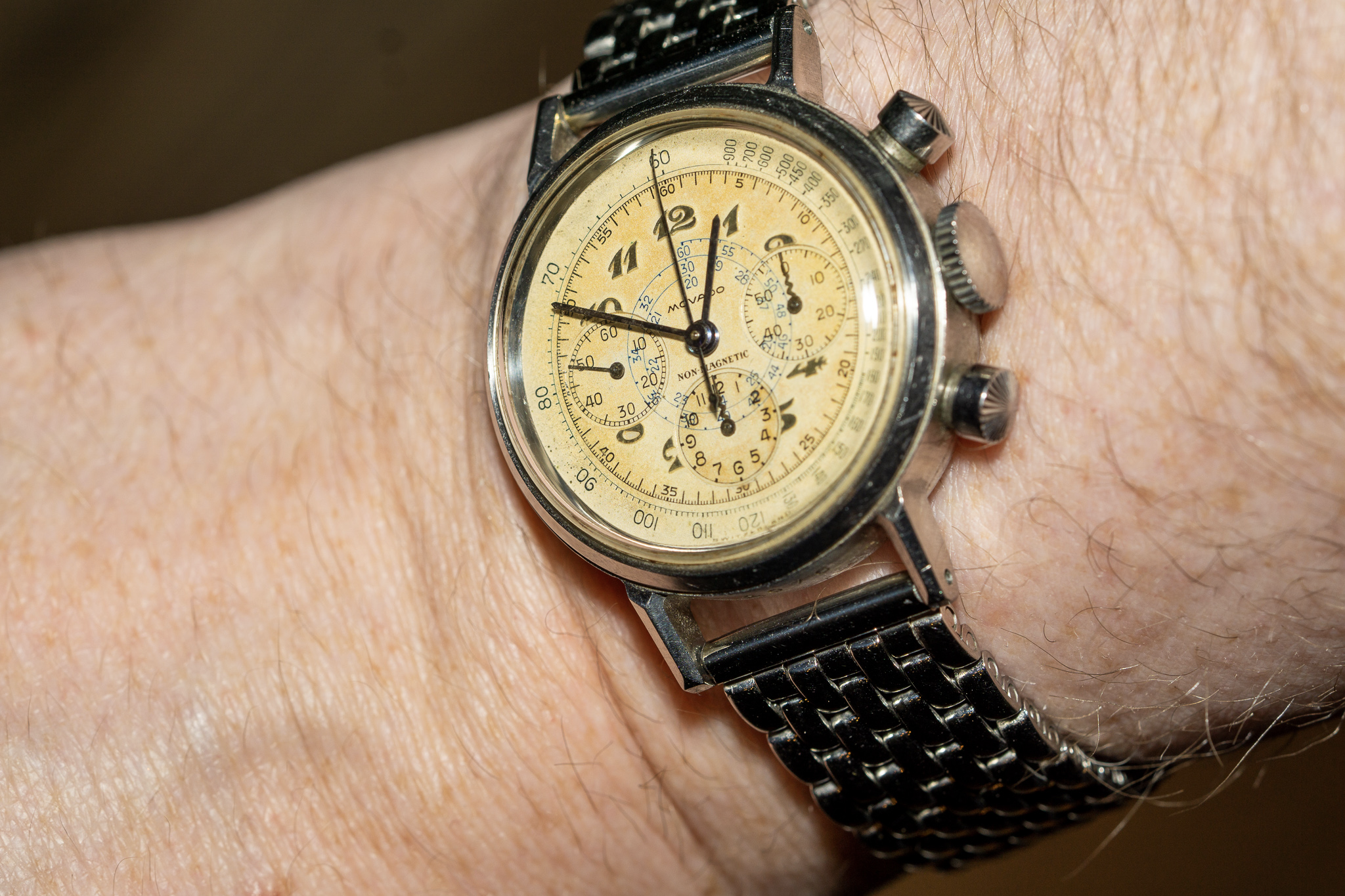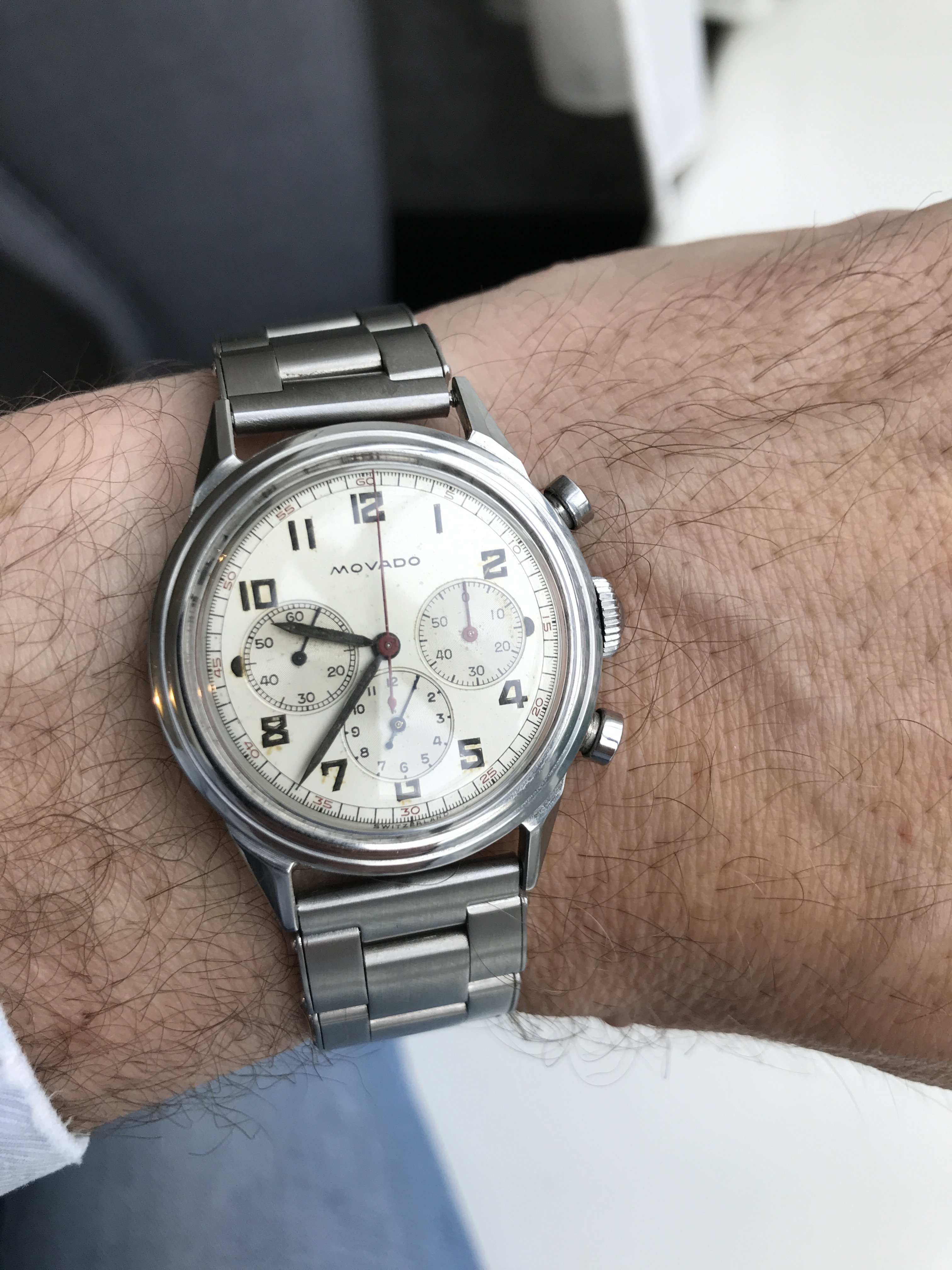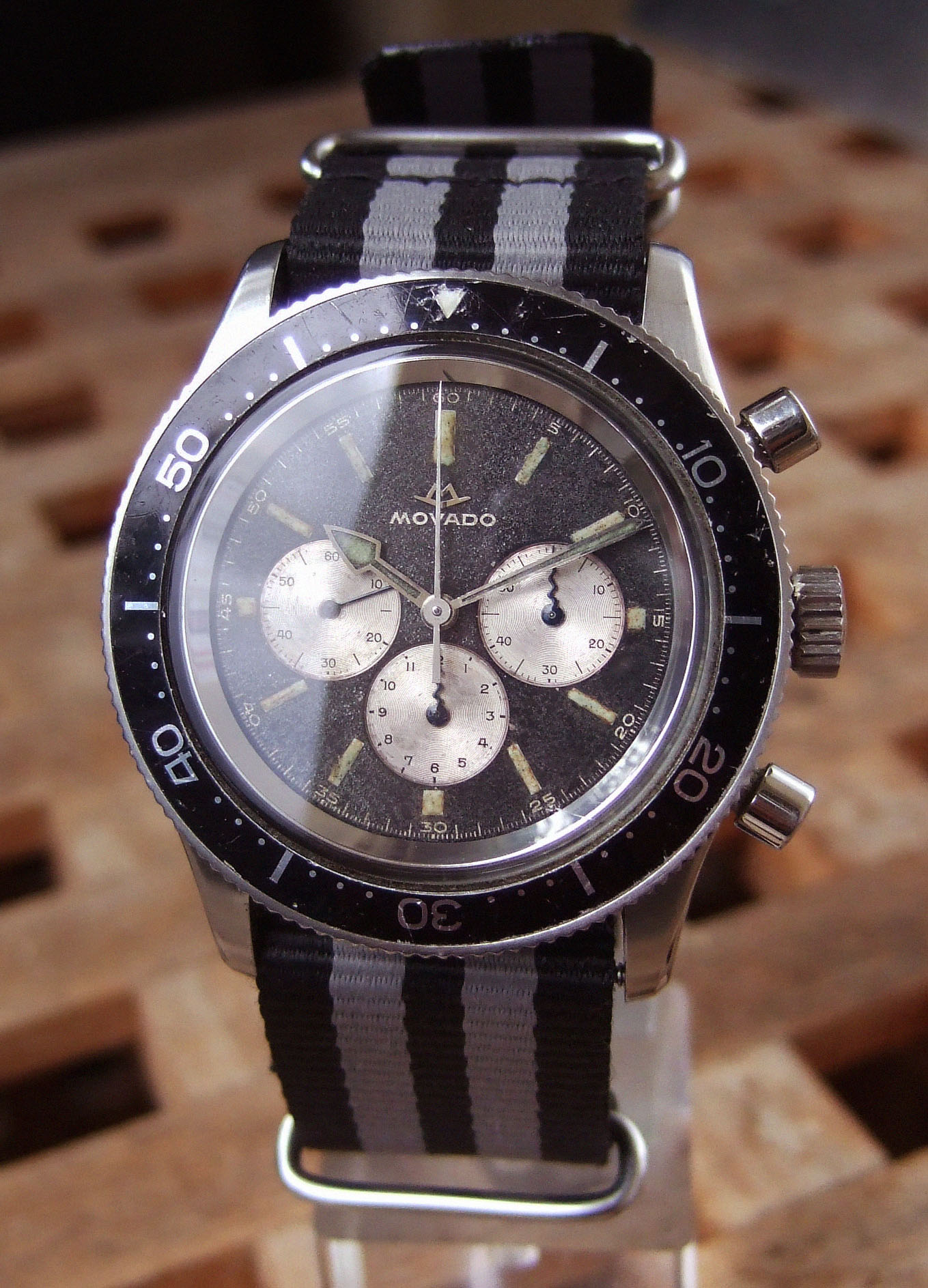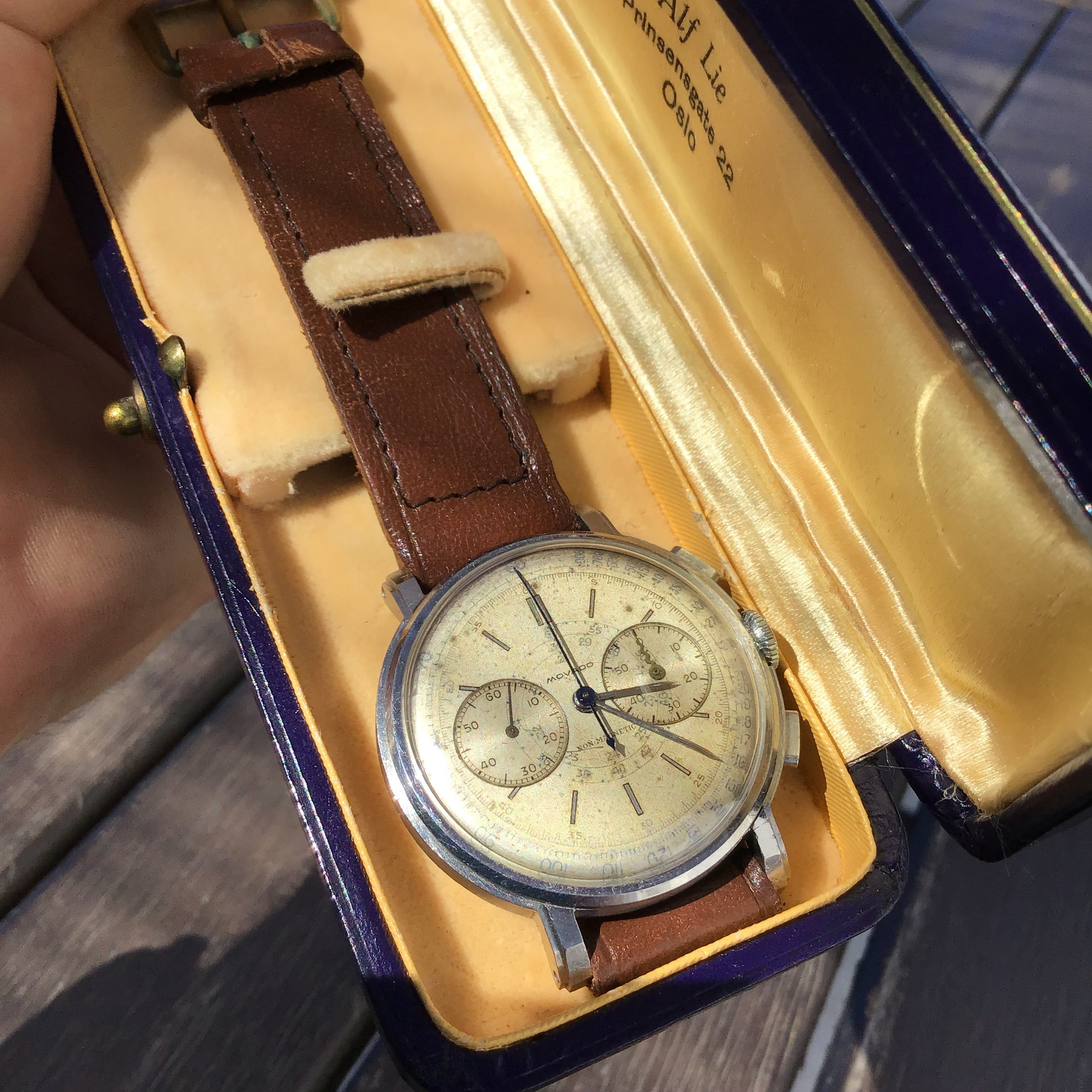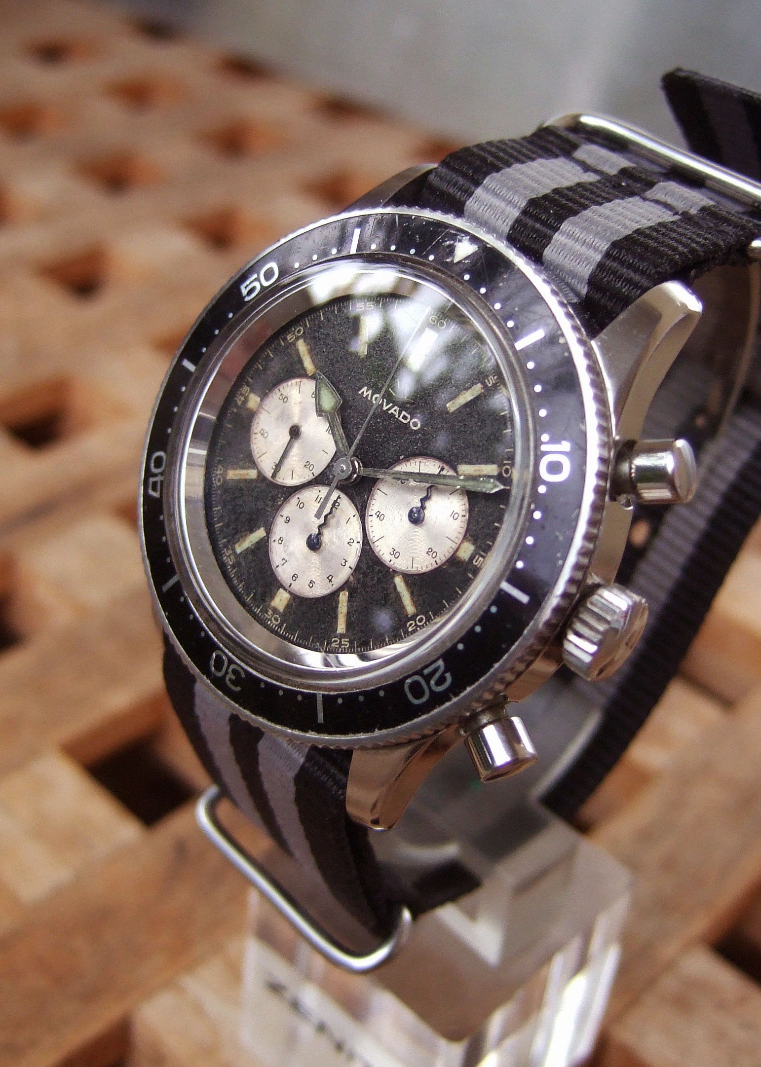 That looks so cool! The colour of the leather straps complements the dial perfectly. Not the biggest fan of the bund though.