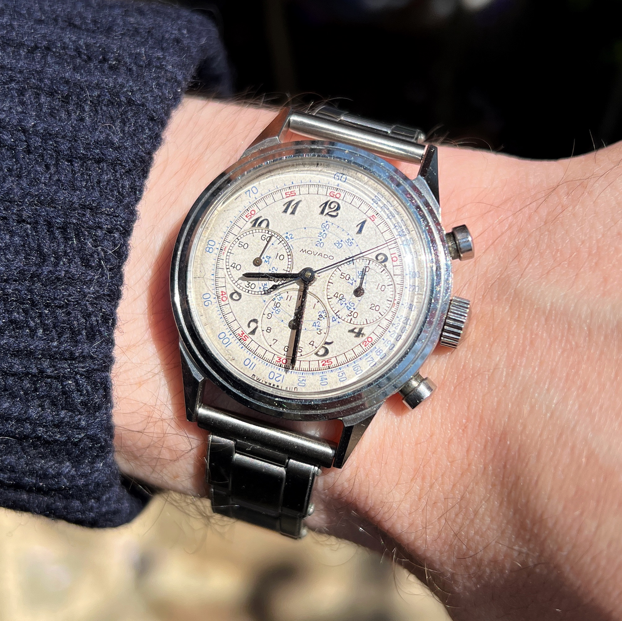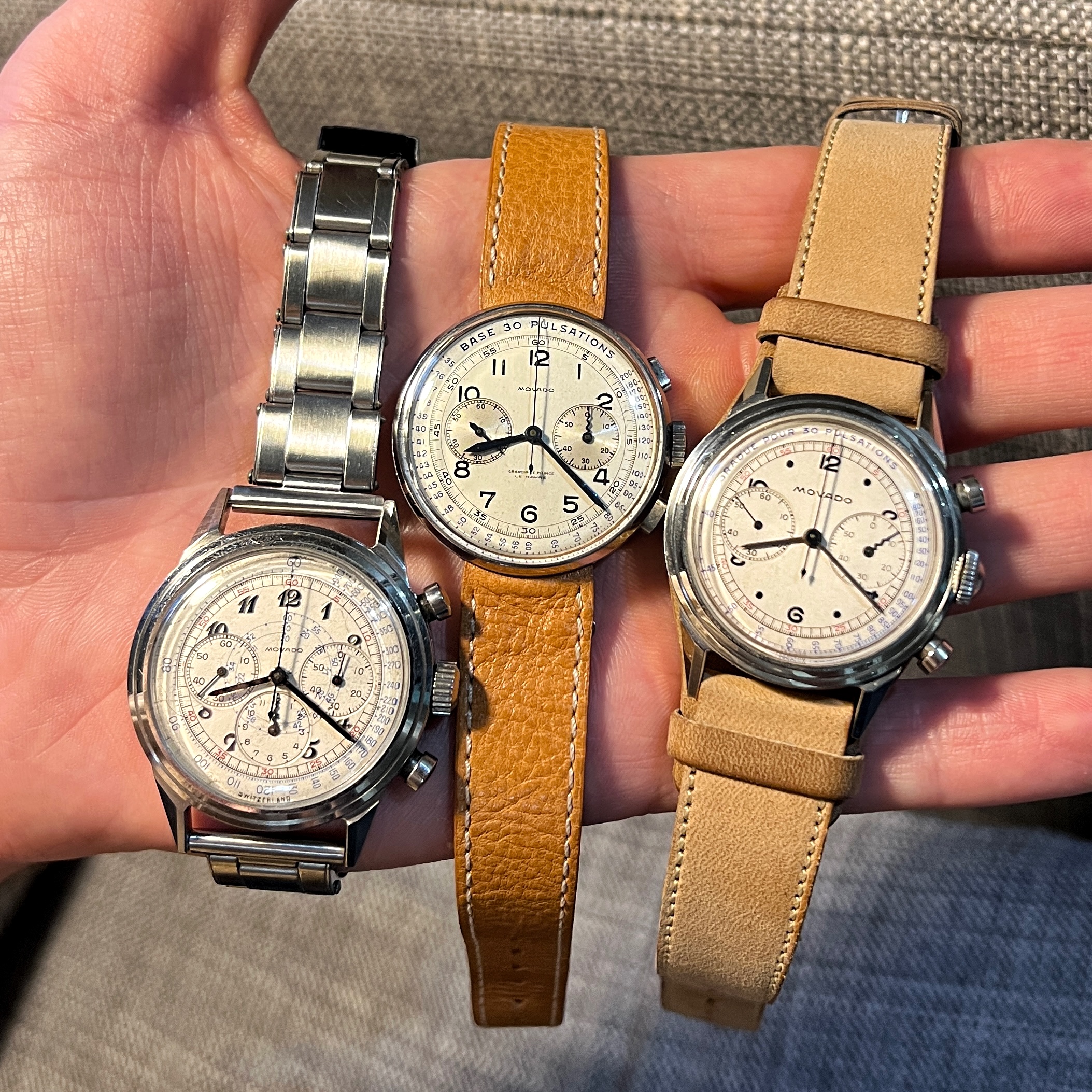 This one sold for CHF 9.500 (I assume excl 28%): https://www.invaluable.com/auction-...ive-non-magnetic-chronogra-2821-c-e194150bfa# Lot of money for a 32.5mm (and I have doubts about the hands)