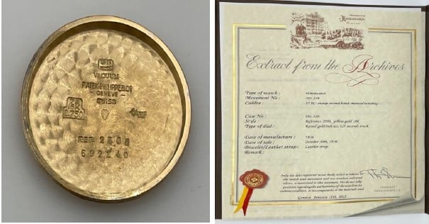 Firstly, it confirms the dating of the production launch of the reference 9038 to 1946, which, as we will see a little further on, it finds exact correspondence with the proposed dating table. So double check.