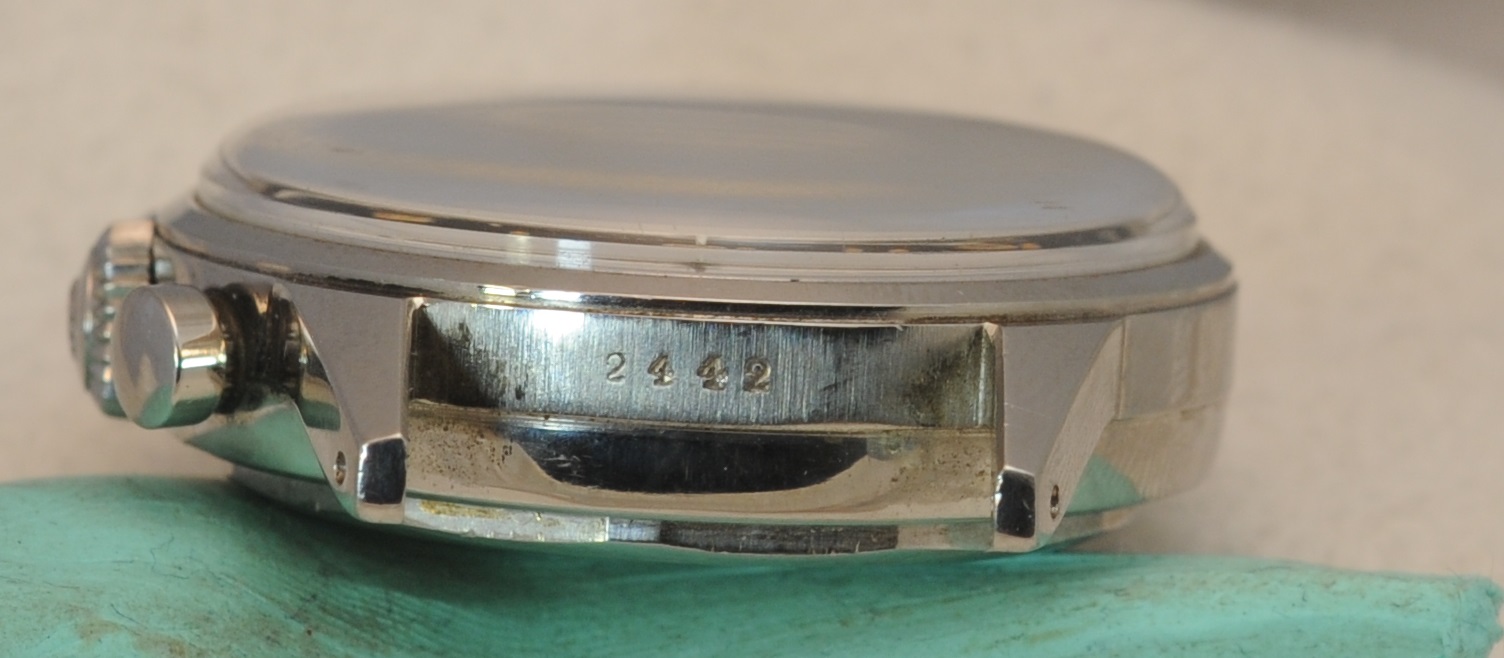 Case: very good FB and appears unpolished with original brushing between lugs. No strap.