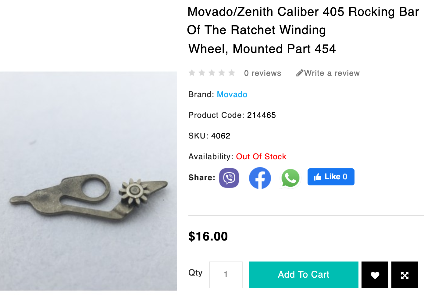 Am looking for a knackered Movado/Zenith Kingmatic movement, cal 405. I need it in fact to get a part that I can’t find, I.e. part 454: