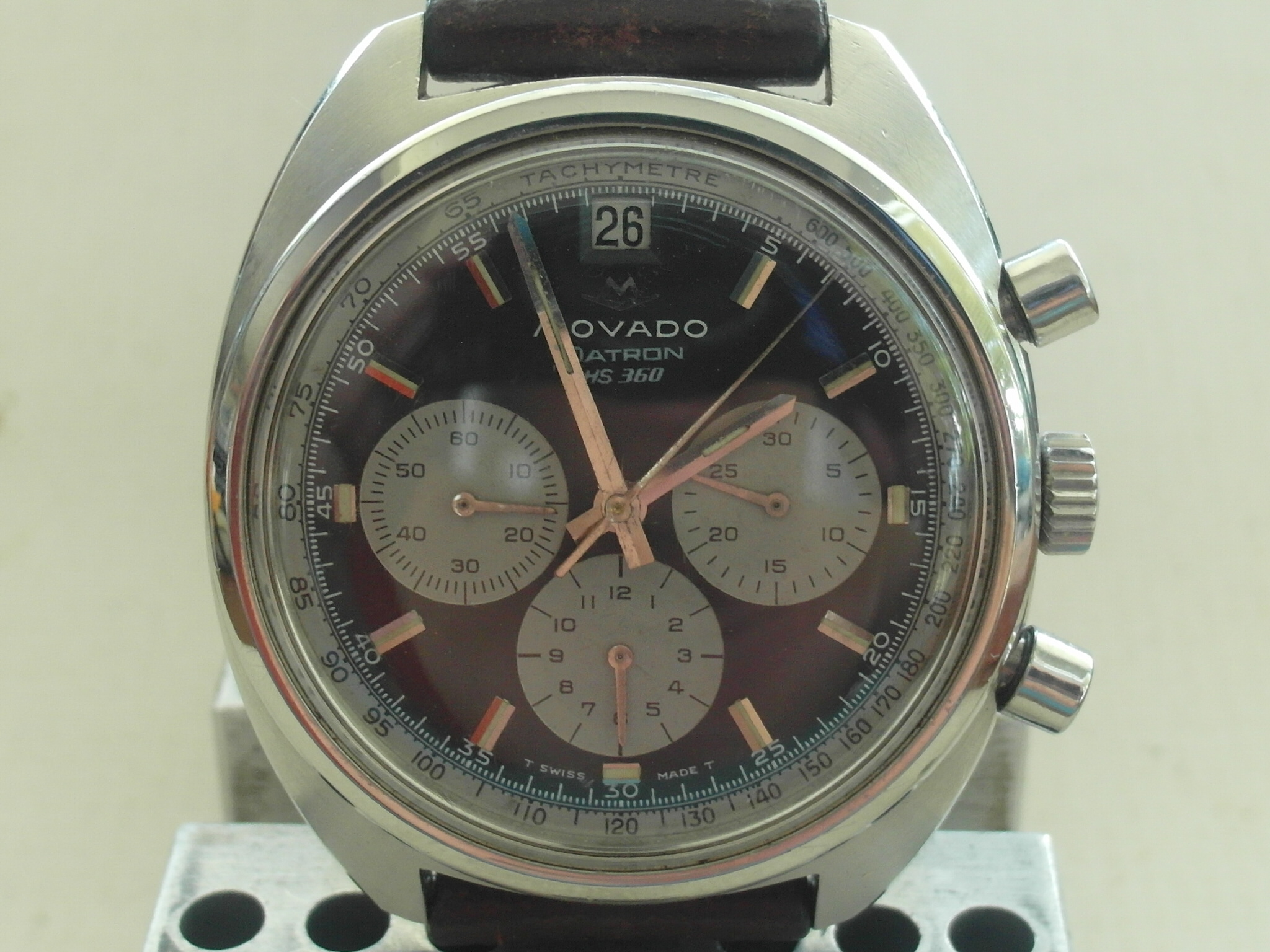 And another Icon of Swiss Watchmaking from the late 1960`s :::::: (Used in the Daytona for a long time as well.) Steel Movado Datron HS360 Sub Sea Chronograph. First automatic chronograph movement, made by Zenith, sold under the Movado brand name in the United States. This movement once powered the Rol*x Daytona. Beautiful black reverse panda dial with date at 12 and 3 x very rare grey subdials for seconds, minutes and hours. I bought this watch in 1997 and have worn it occasionally over the years, so there are some tiny blemishes here and there .... The dial shows NO Spots or Scratches , which is unusual for a Tool watch 50 plus years old Original dial. I provide high-detail undoctored photos that show every tiny blemish. Head only. I can provide diverse Bracelets ; Talk to me after you bought this Beauty Be aware that this is a vintage watch, so do not let it come near water. Fully serviced in November 2023 (at A$ 650). 6 Months mechanical Warranty given ( except balance and Hairspring , escape & winding and setting section .... So, don't drop it ) . Works very well ; see the Time Grapher picture. Resets to Zero every time. Date change around 12. We only had to replace the Hour wheel with an original Zenith " El Primero " spare part . All other parts are the original parts. This is the rare chance to buy one of the most Iconic Chronographs from the 70`s. And this one does not need any attention in the moment; was serviced only a few months ago ! And that is hard can to find for sale on the Net. Diameter without the original signed crown: 38 mm . with Crown: 40 mm . Lug to lug : 44 mm . Thickness: 14 mm . There is NO RUST anywhere on the case. Original and never re lumed dial and hands. Not a scratch on the dial. Mostly still with the factory finish ; Circular brushed on the case top. Polished on the sides . This Dial Configuration , Black Dial with Grey Sub Dials and Grey Tachy scale , is very rare for this non turning Bezel model. Early delivery as well.