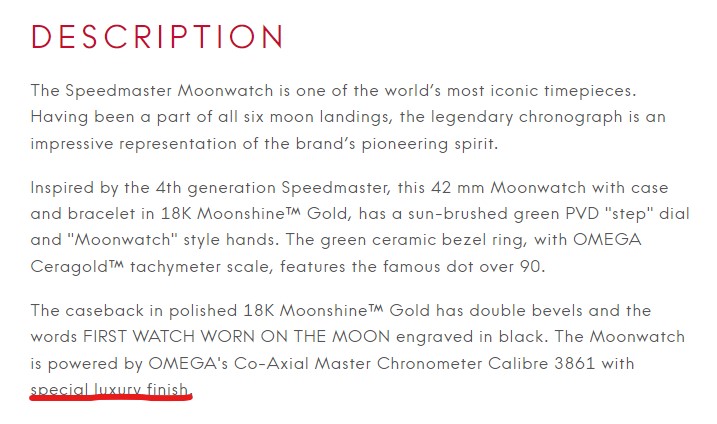 Yet on the Omega website it claims that the movements for the gold versions have a "special luxury finish".