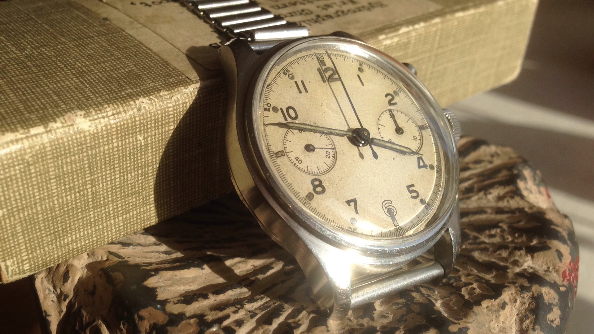 Some weeks ago a auction lot in UK caught my attention as it looked to have a nice military chronograph as part of it. Not really mentioned too baldly, and with a very low estimate figure.