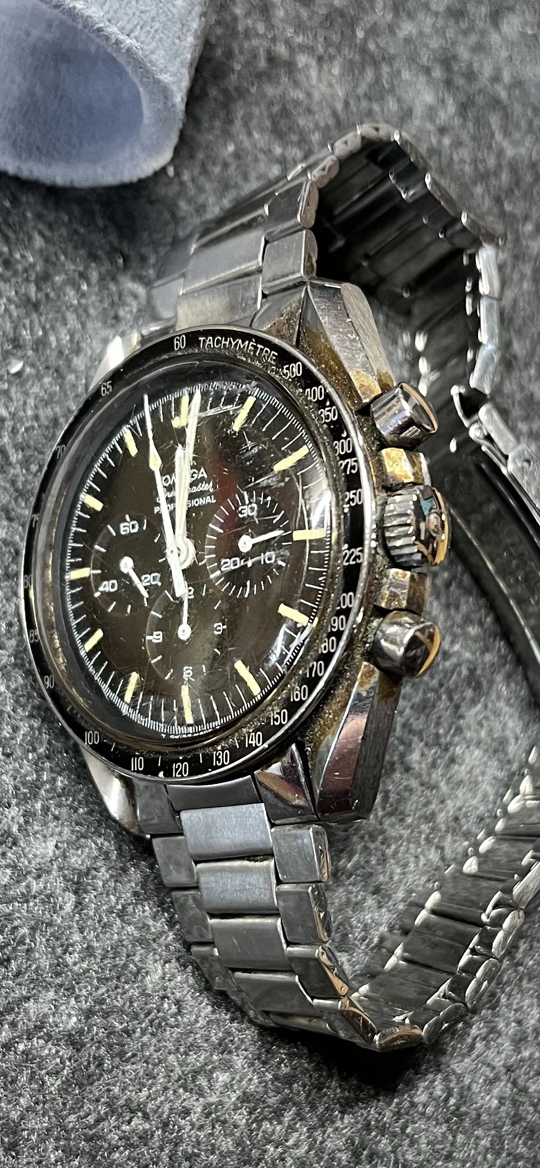 So I did what most people would do and googled Speedmaster. The first thing that came up was Speedmaster 101. I emailed the site and within a day Mr. Spacefruit got back to me. After some negotiation I sold the watch to William for what I believe was a lot of money. That was the problem…. I had money on the brain!! Shortly after, I found OF and did a lot of reading about family heirlooms. What did I do?! I called William and instantly he said you should have your watch back.!!! After he restored the watch it came back to me!!! It will go to my boy when he gets older. I have it now and pictures will follow. Thank you William, you are a true gentleman.
