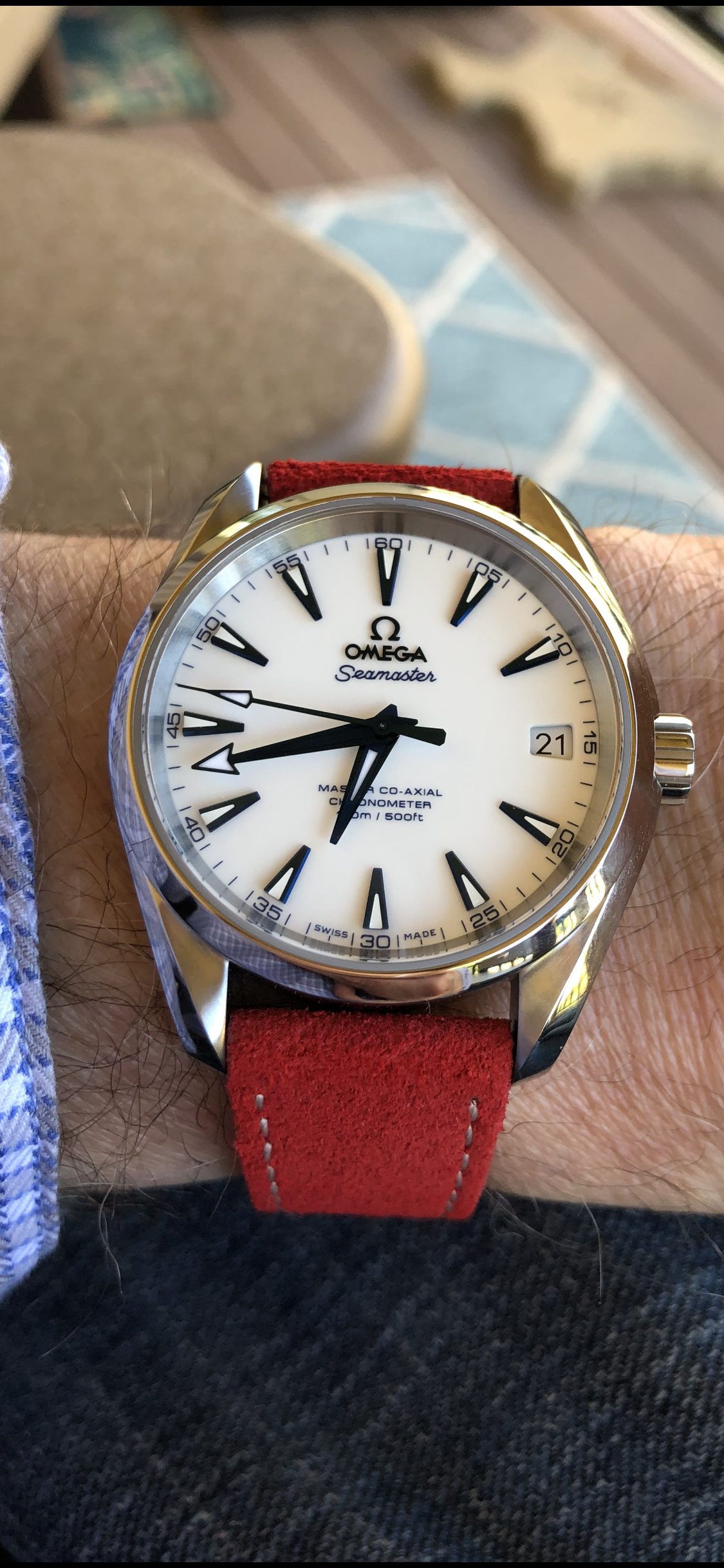 My first Omega was a 38.5mm Aqua Terra “Good Planet” on a nylon strap. 2016 release. This is a titanium case watch, RRP at $7700, but for whatever reason it’s easy to find gray market for around 4500. Maybe it was overproduced or maybe it just wasn’t a good seller. I got mine from Watchmaxx. Offered 4200 and they accepted the offer. I love having a grade 5 Ti watch at that price point.