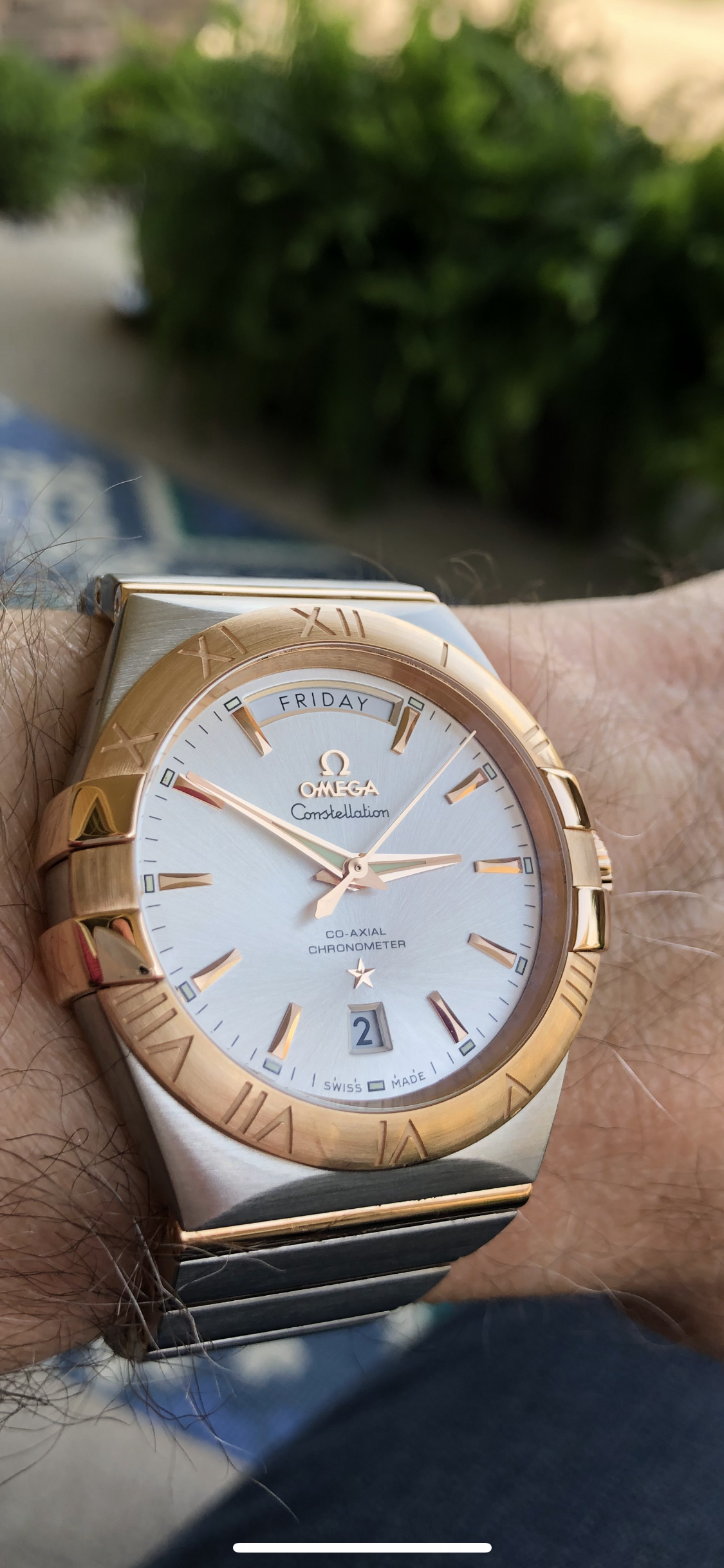 My second Omega I got used from Crown and Caliber in excellent condition but no box or papers. 38mm gold Connie day-date, produced between 2012-15 with RRP of 12.2k. It started at 6.6k then went on clearance and I eventually got for 4150. I love it, it looks beautiful and keeps great time. I will likely get it serviced next summer even if it’s still problem free - just for piece of mind.