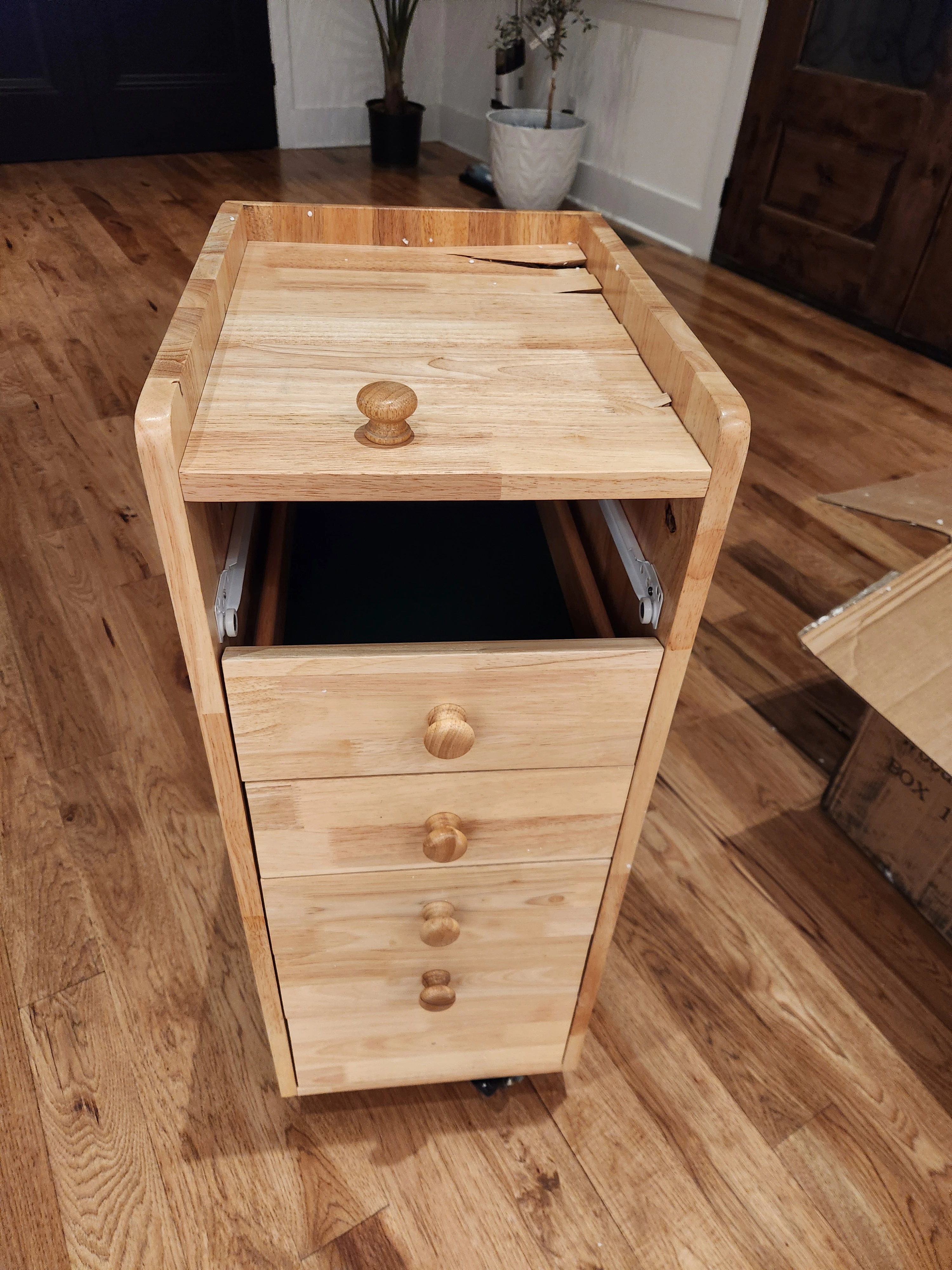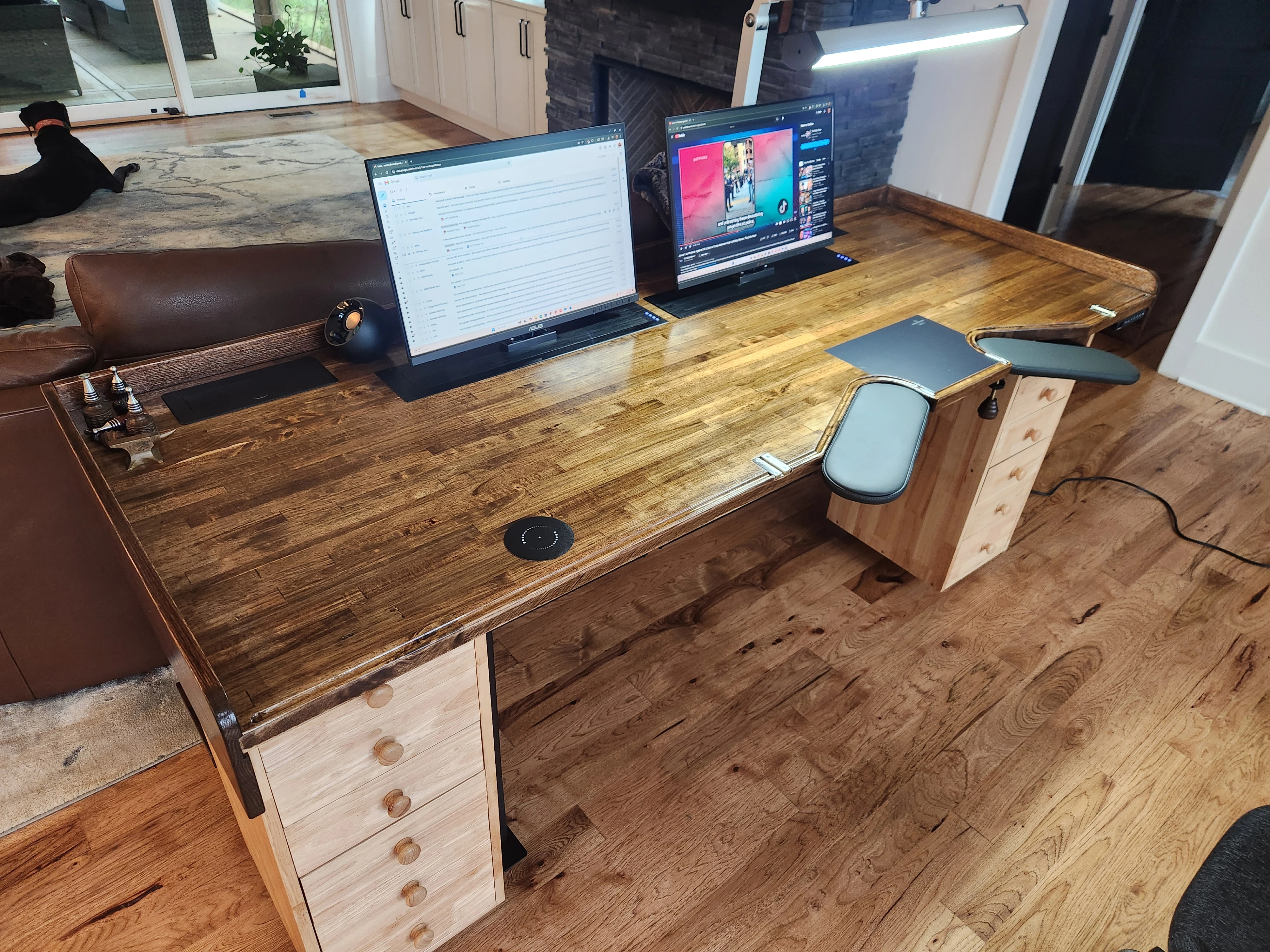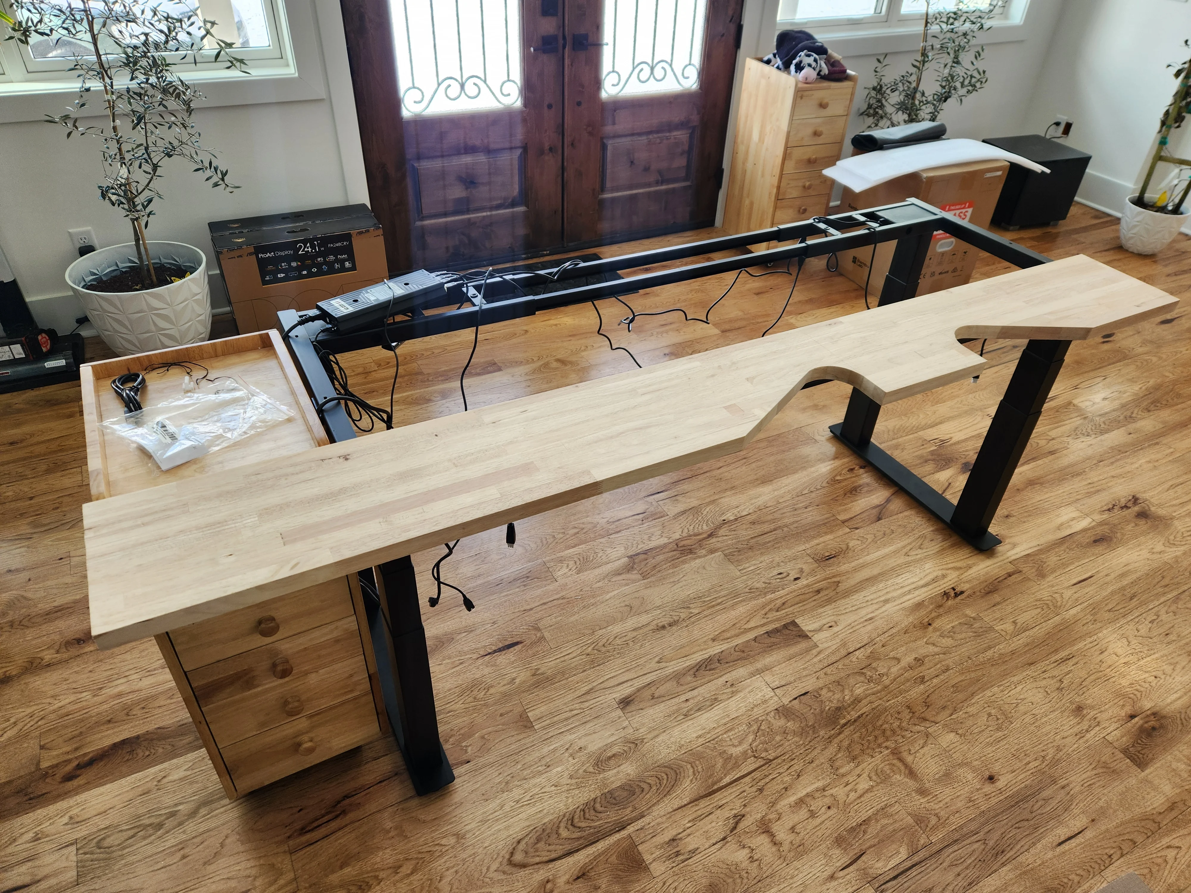 The cabinets. Durston brand name. Purchased from ofrei. Showed up broken. Not great quality. They sent free replacements. I hacked up the broken ones and attached to the bottom of the desk so they move with the desk heights. This is only thing I wish was better. The quality is VERY mid. But they work. I am not a carpenter or a cabinetmaker. So I have regrets here on these.