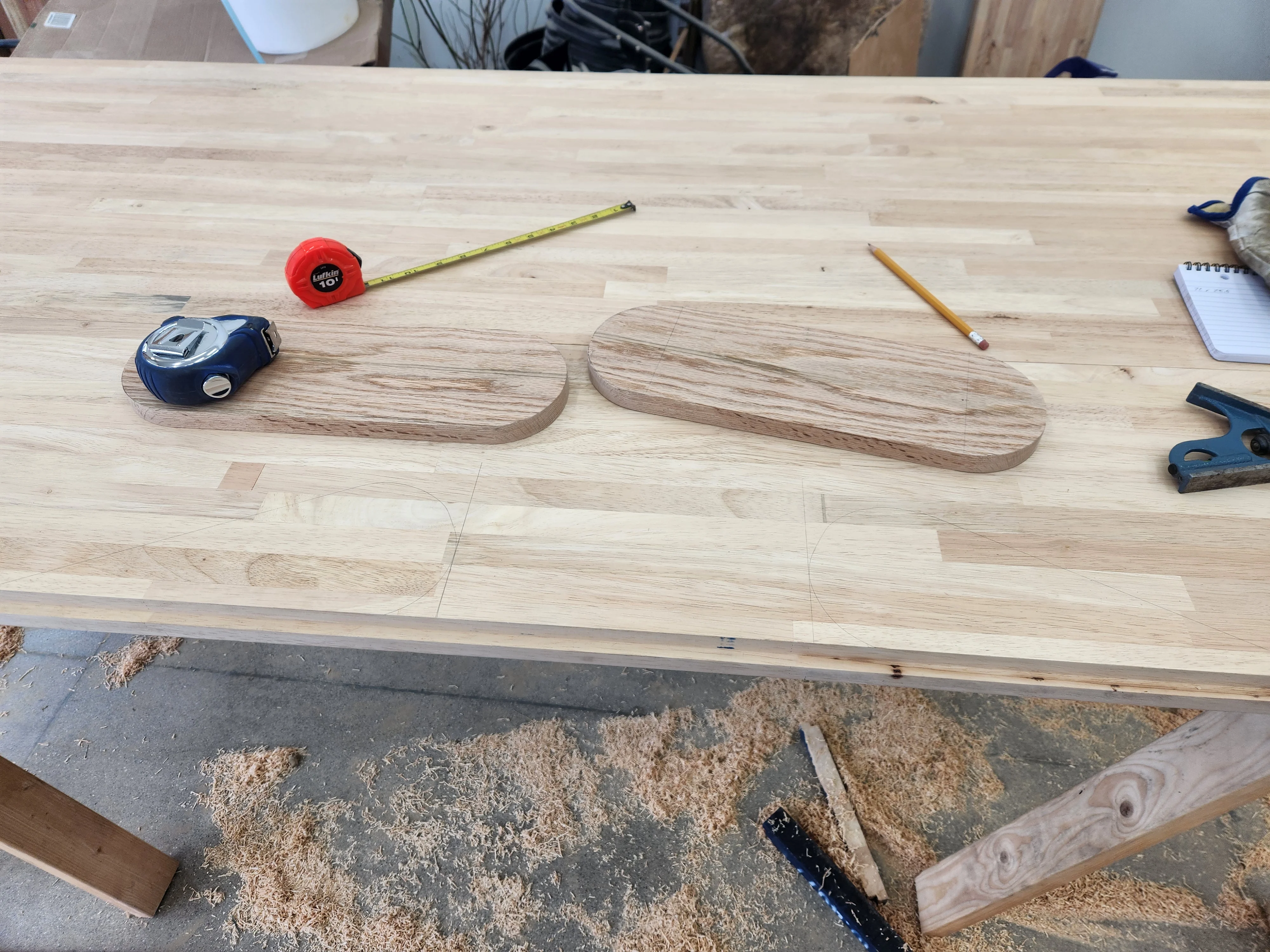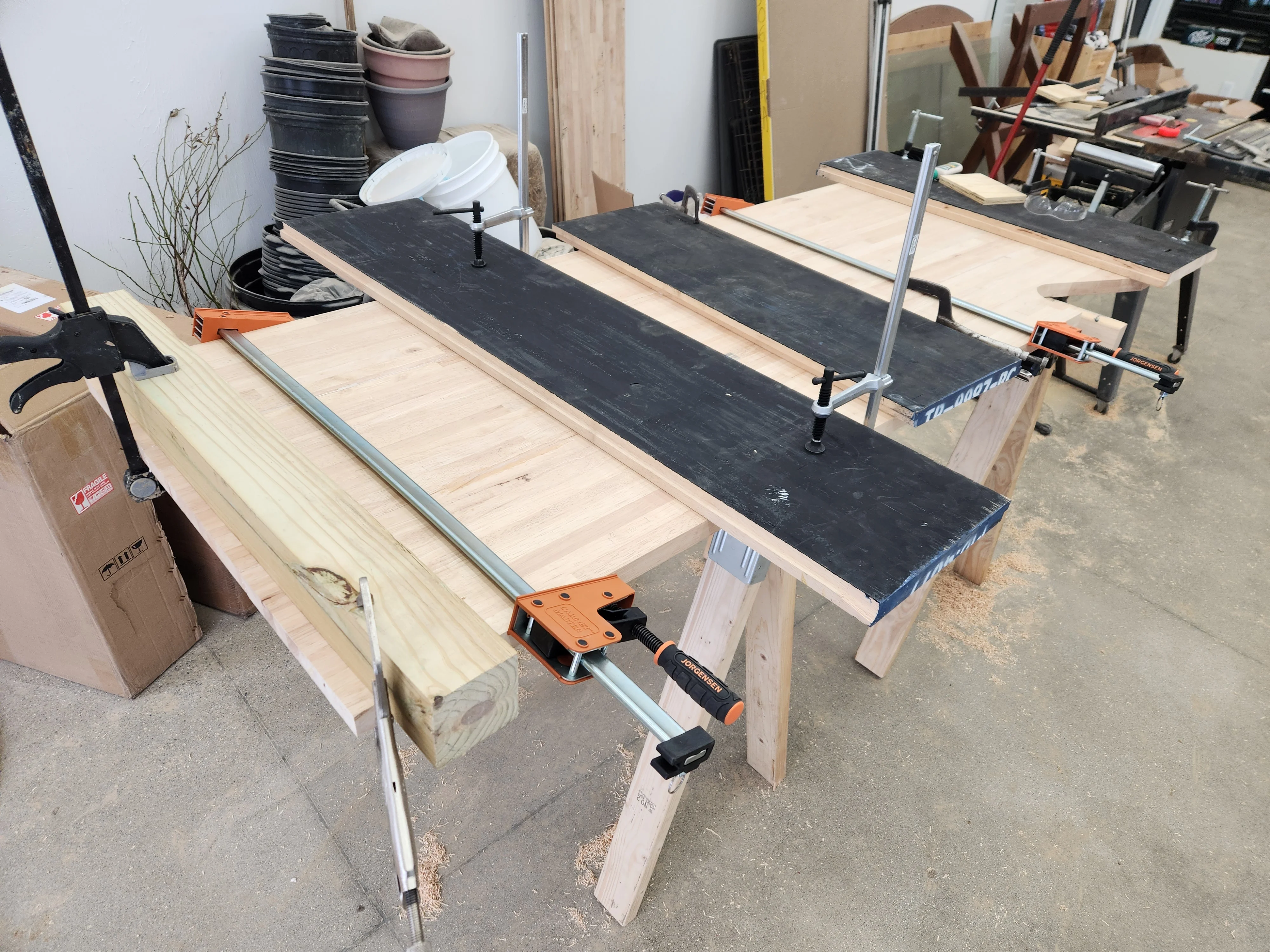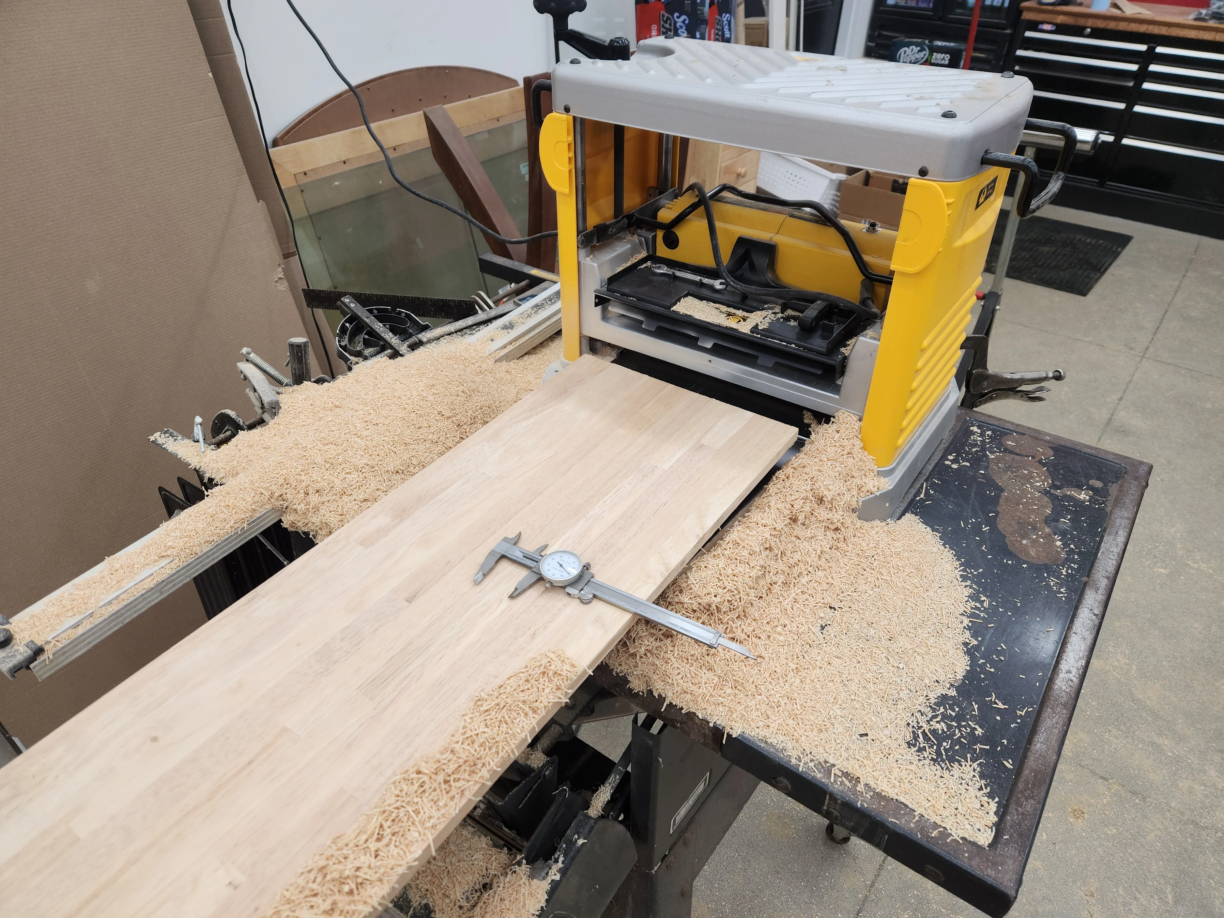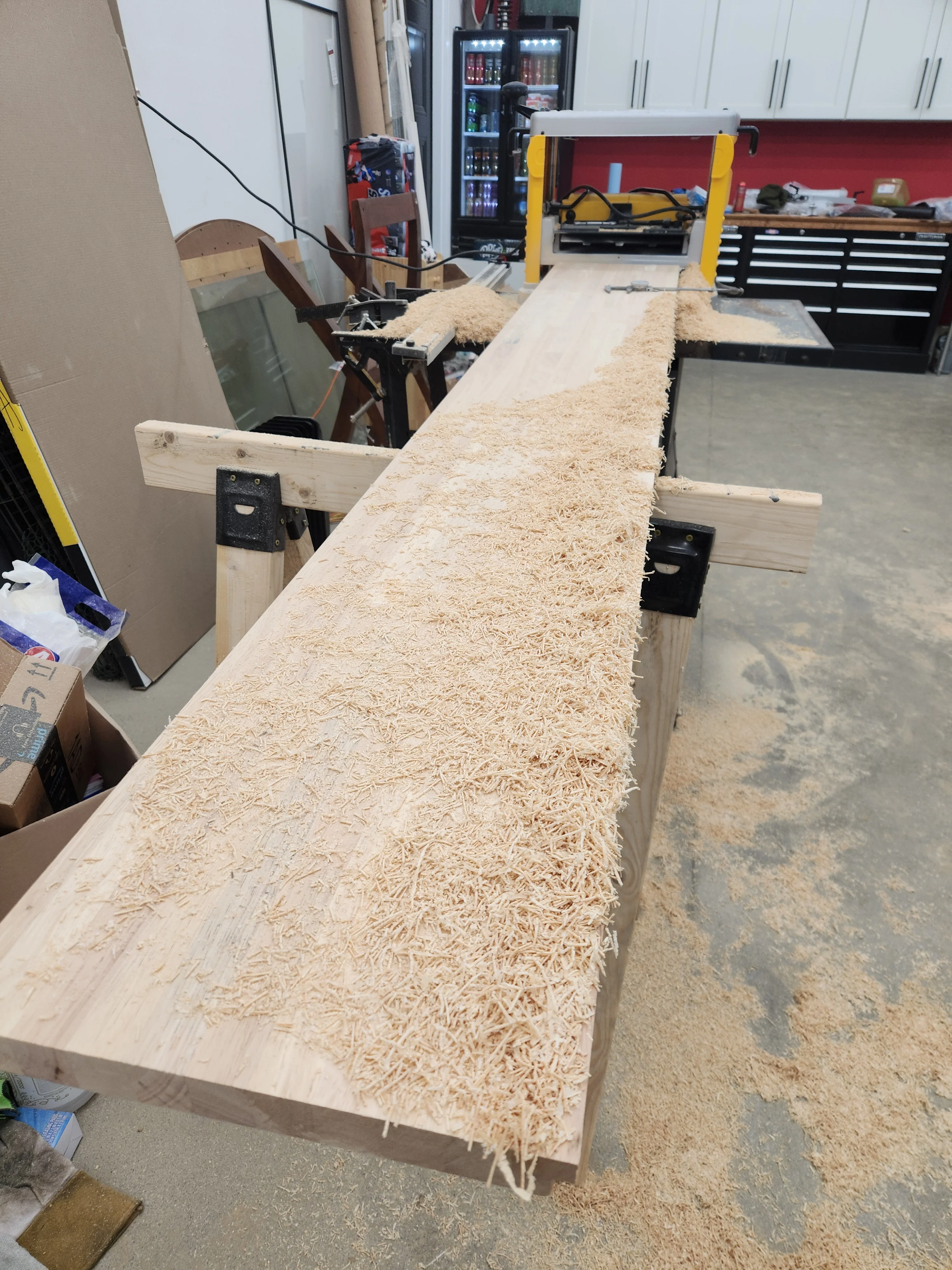 For the bench top, I had a bunch of left over “uninstalled tractor trailer flooring” I had sourced for my garage workbench. This is all hardwood laminate, mostly maple I think, and comes in 12”x 1.5”x 12’ boards. I mimicked the layout from a standard watchmakers bench for the arm rests.