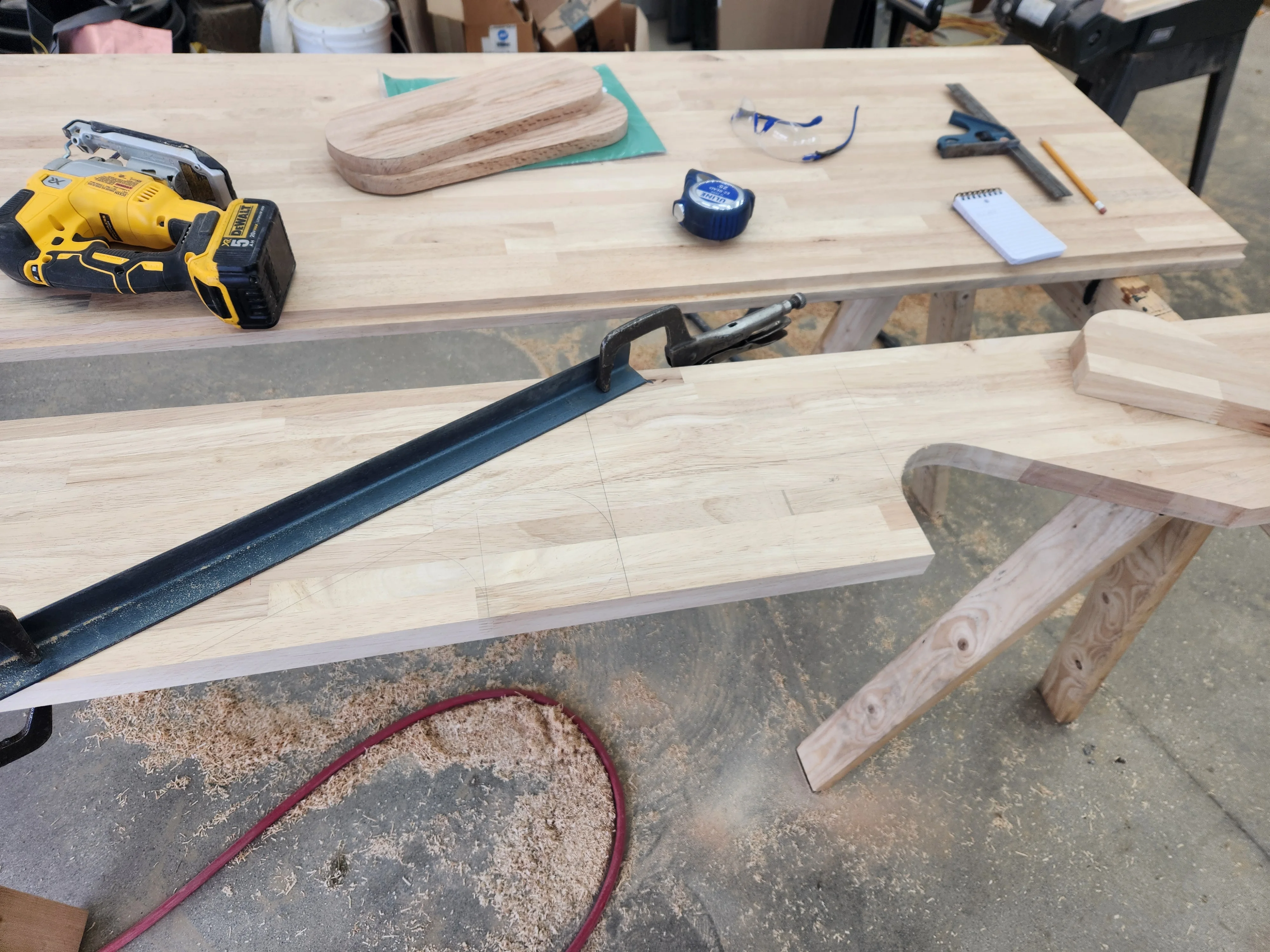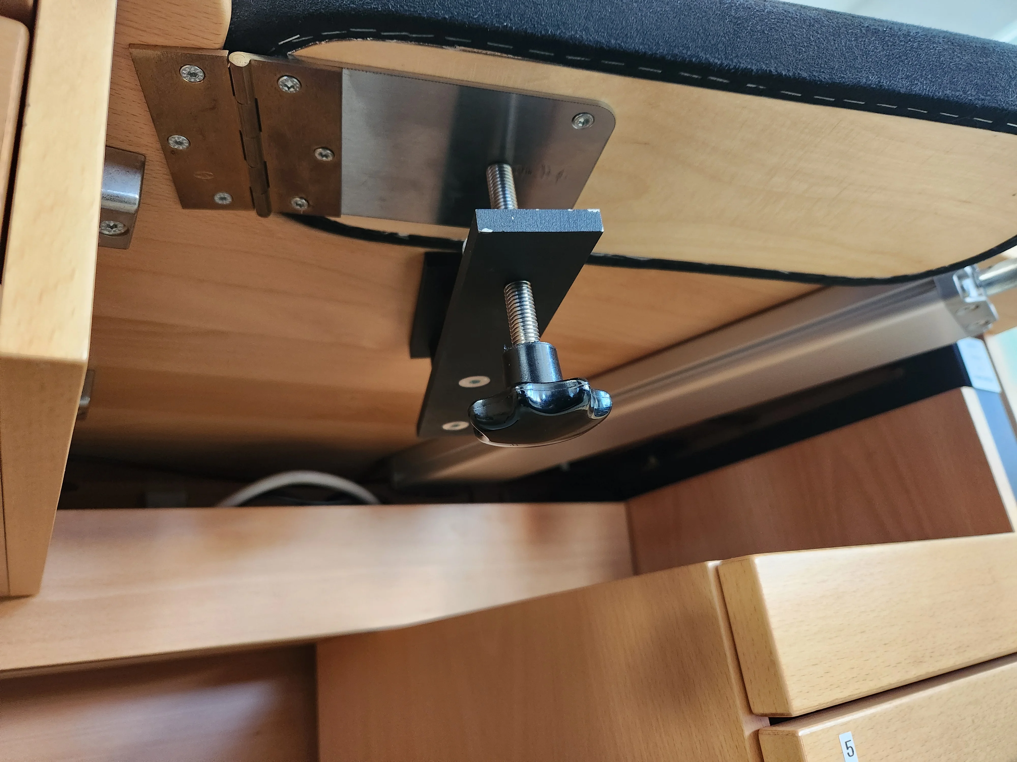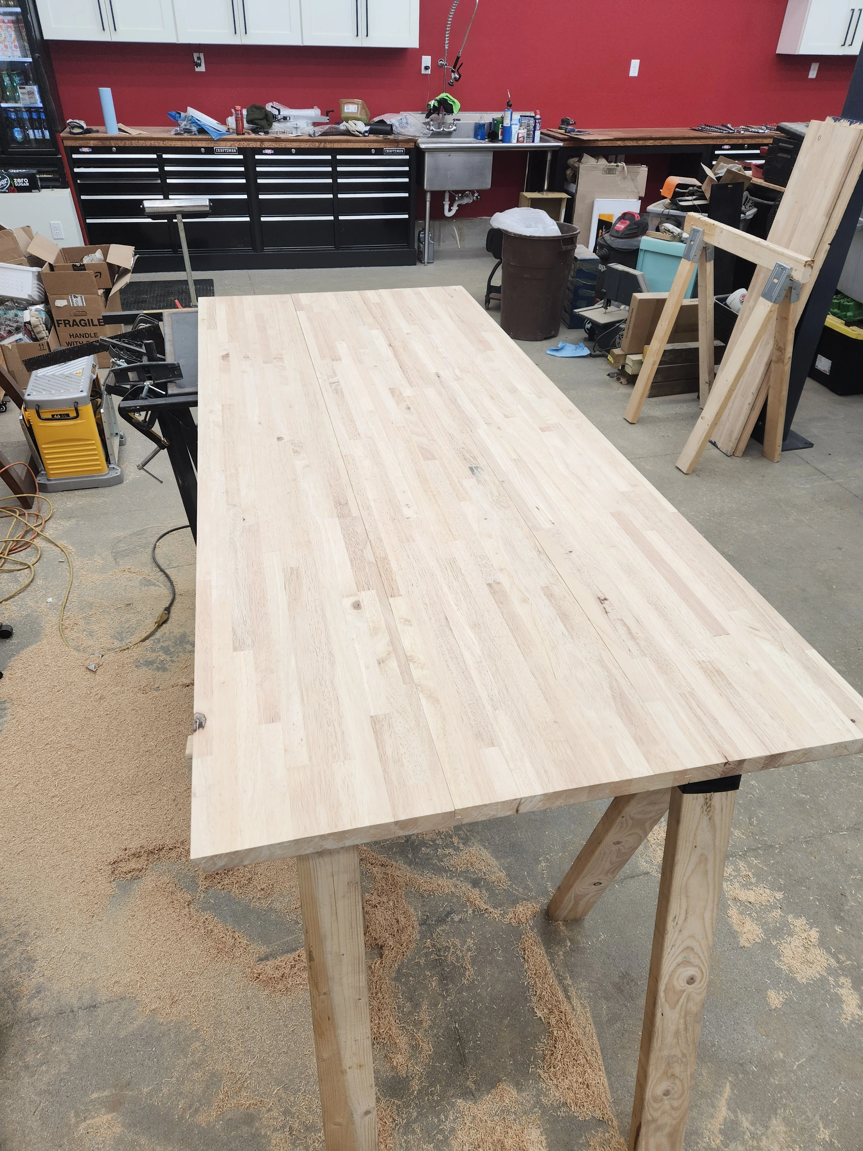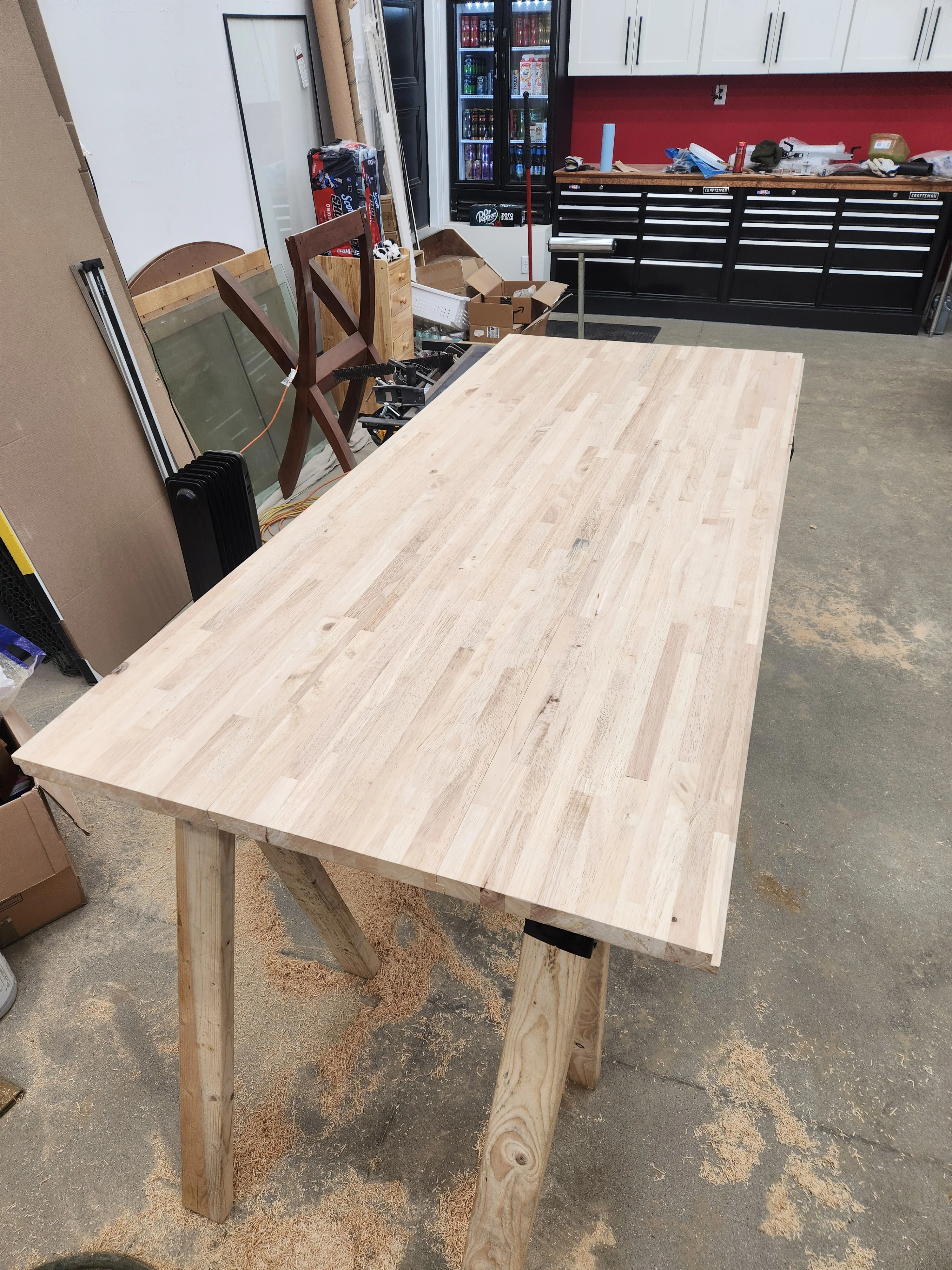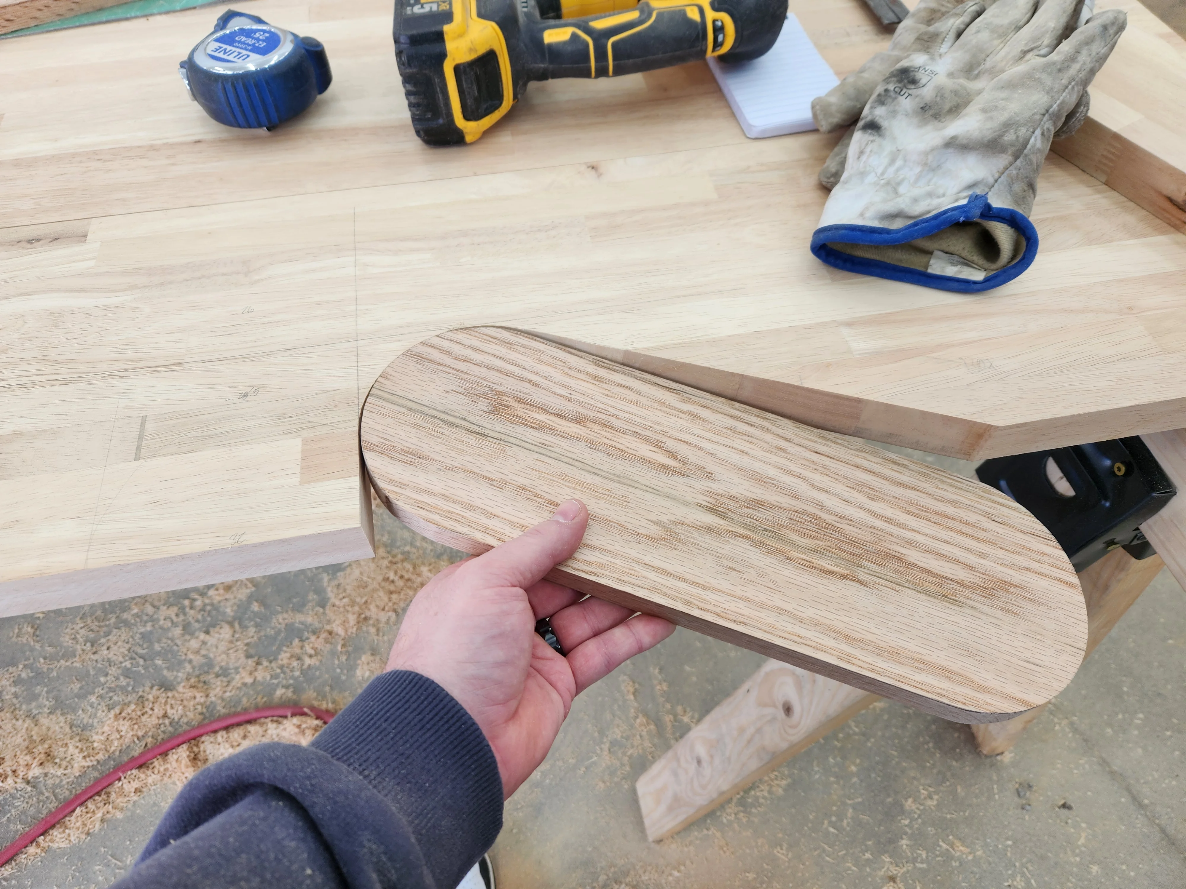 For the bench top, I had a bunch of left over “uninstalled tractor trailer flooring” I had sourced for my garage workbench. This is all hardwood laminate, mostly maple I think, and comes in 12”x 1.5”x 12’ boards. I mimicked the layout from a standard watchmakers bench for the arm rests.