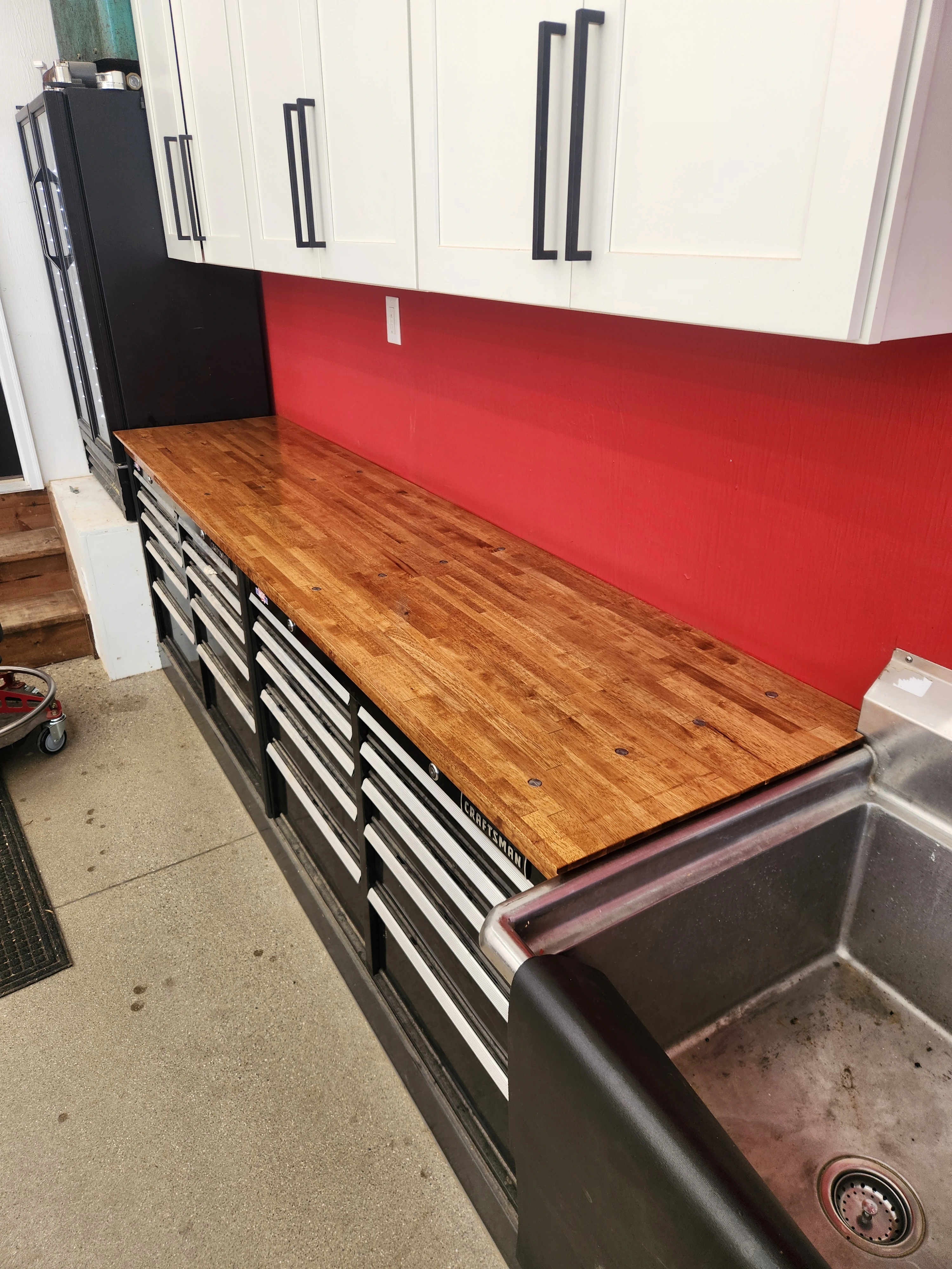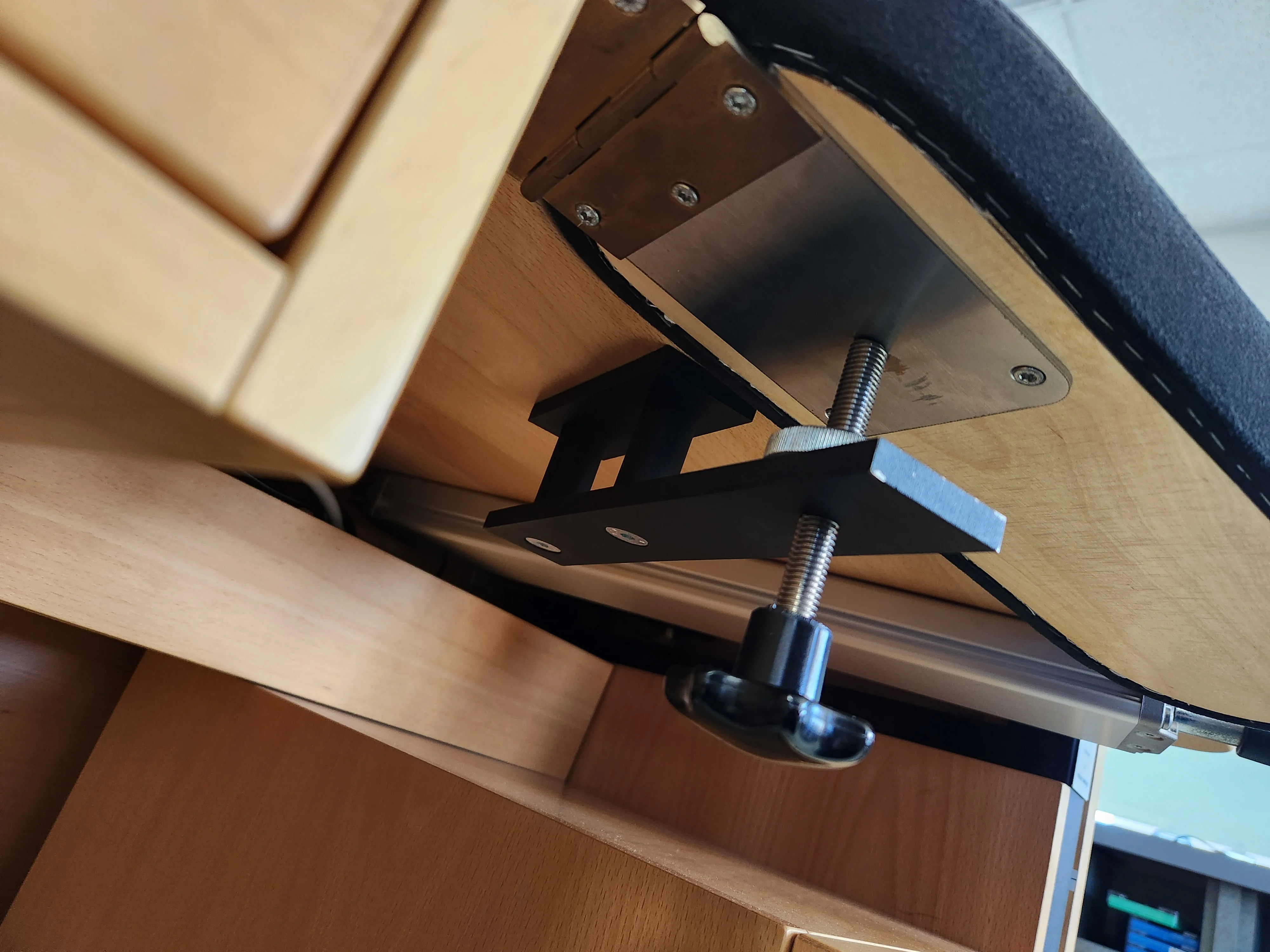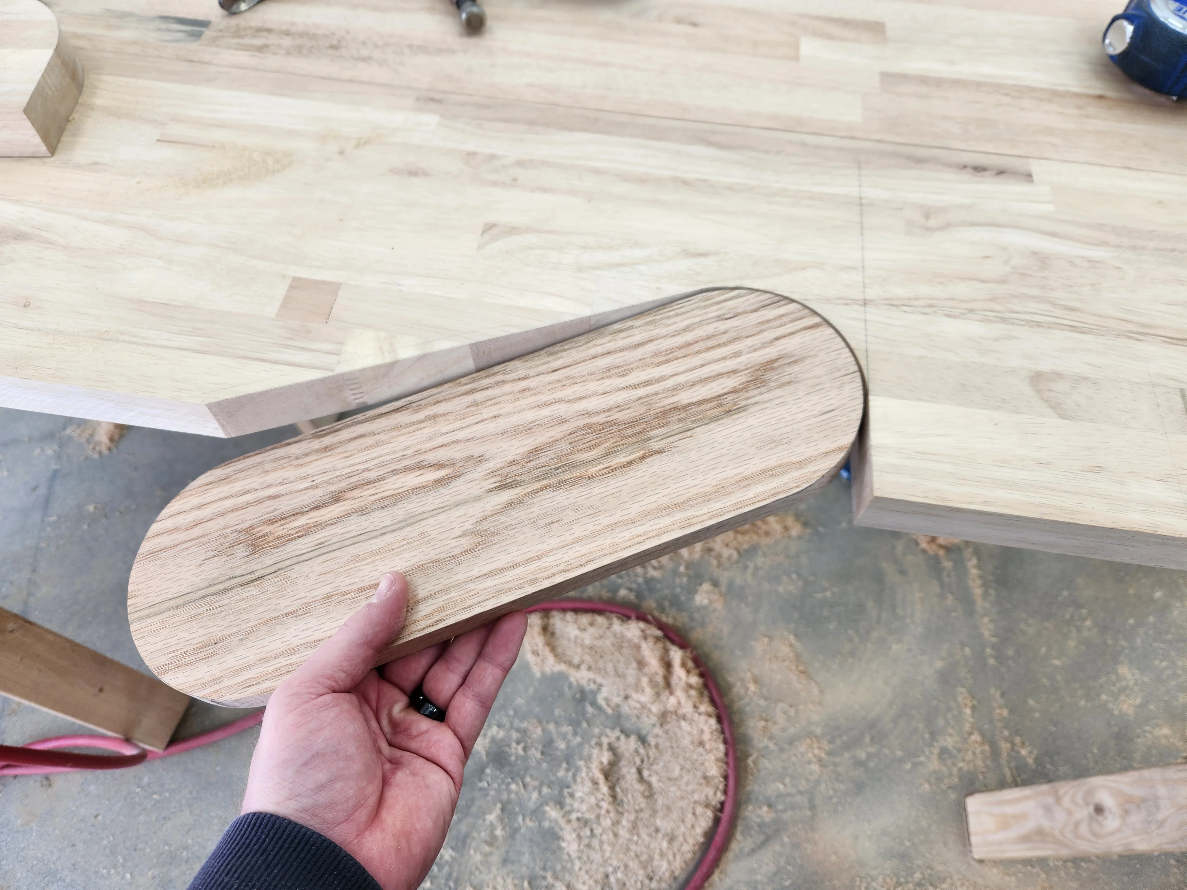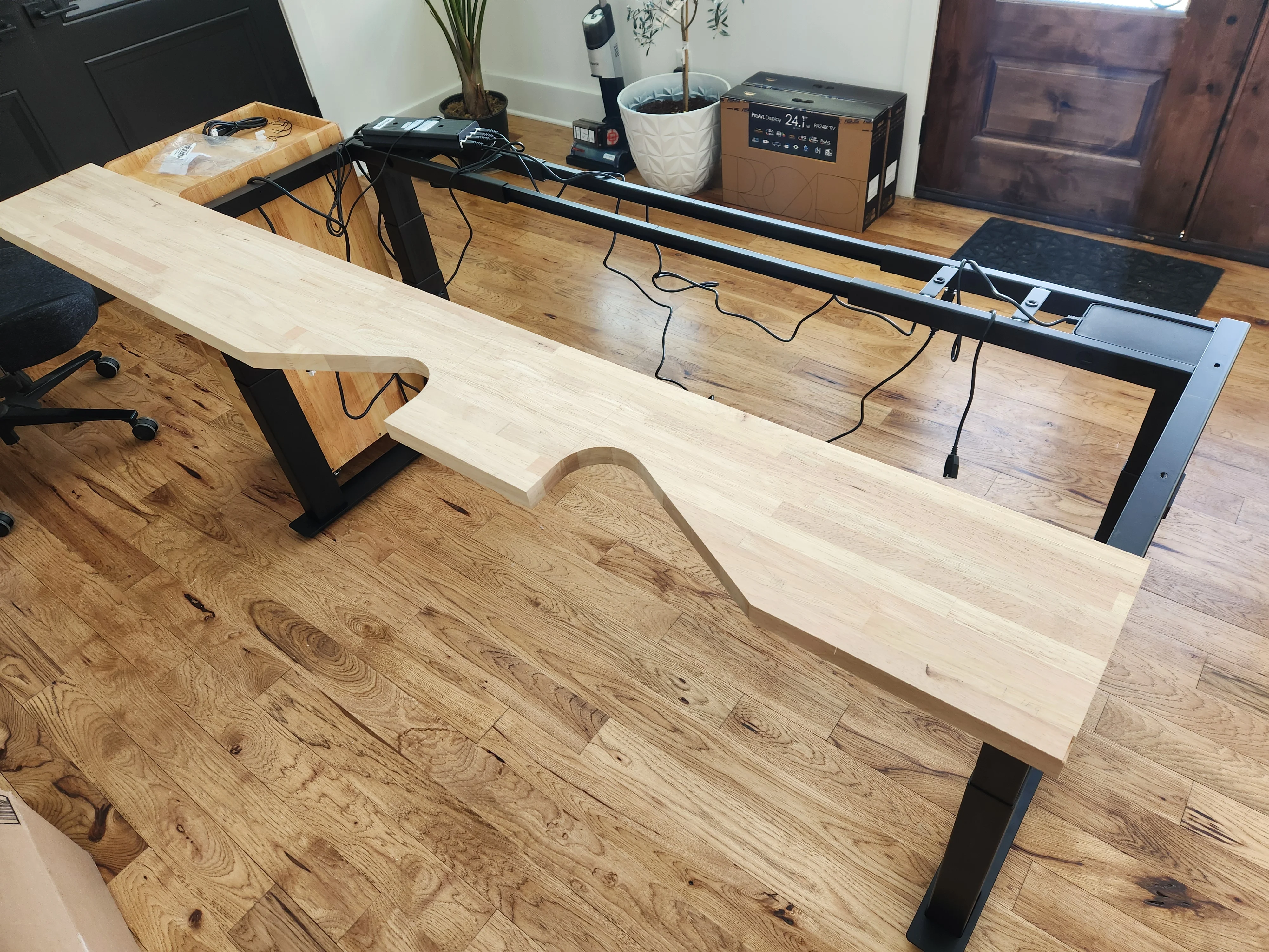 For the bench top, I had a bunch of left over “uninstalled tractor trailer flooring” I had sourced for my garage workbench. This is all hardwood laminate, mostly maple I think, and comes in 12”x 1.5”x 12’ boards. I mimicked the layout from a standard watchmakers bench for the arm rests.