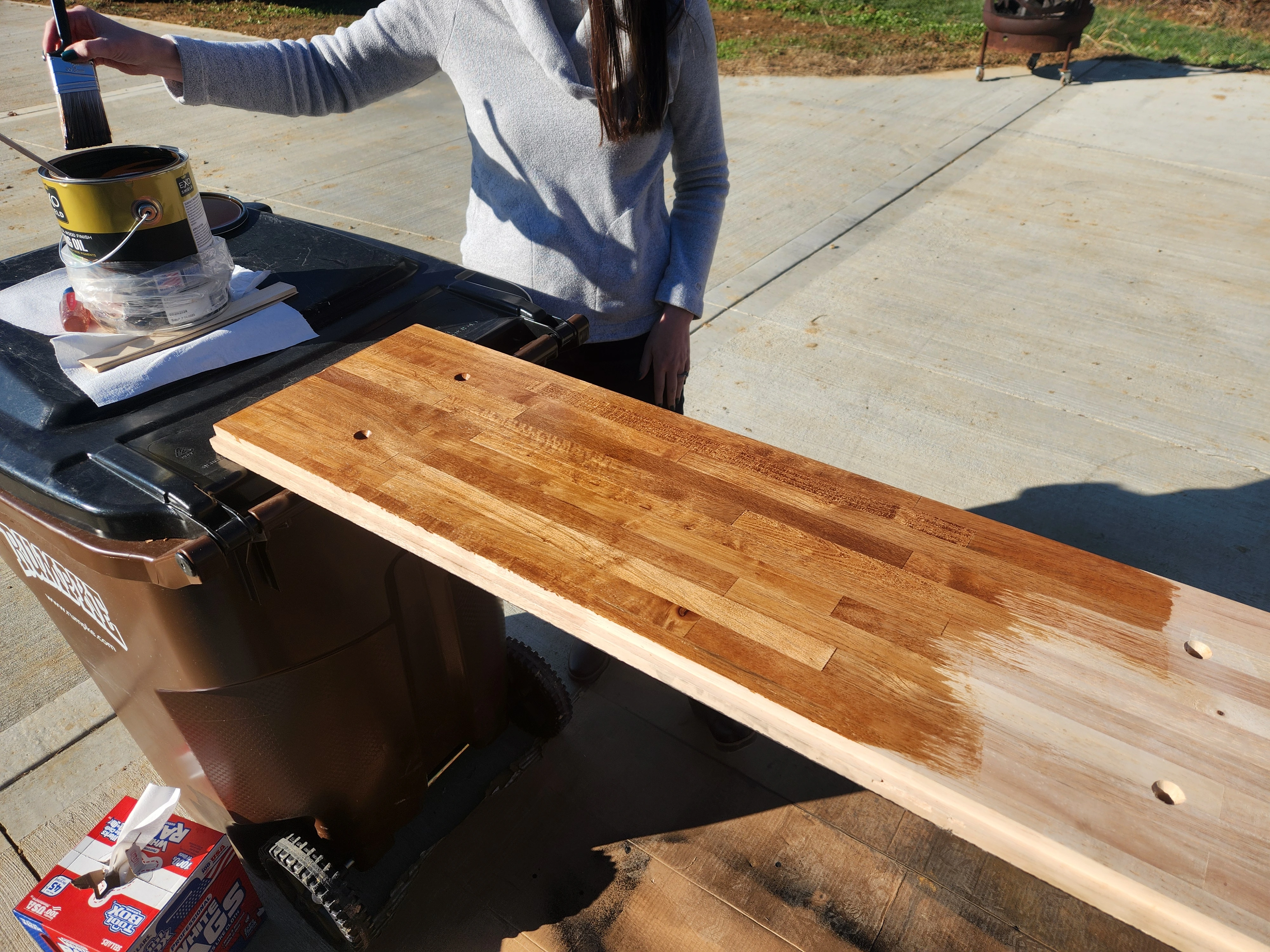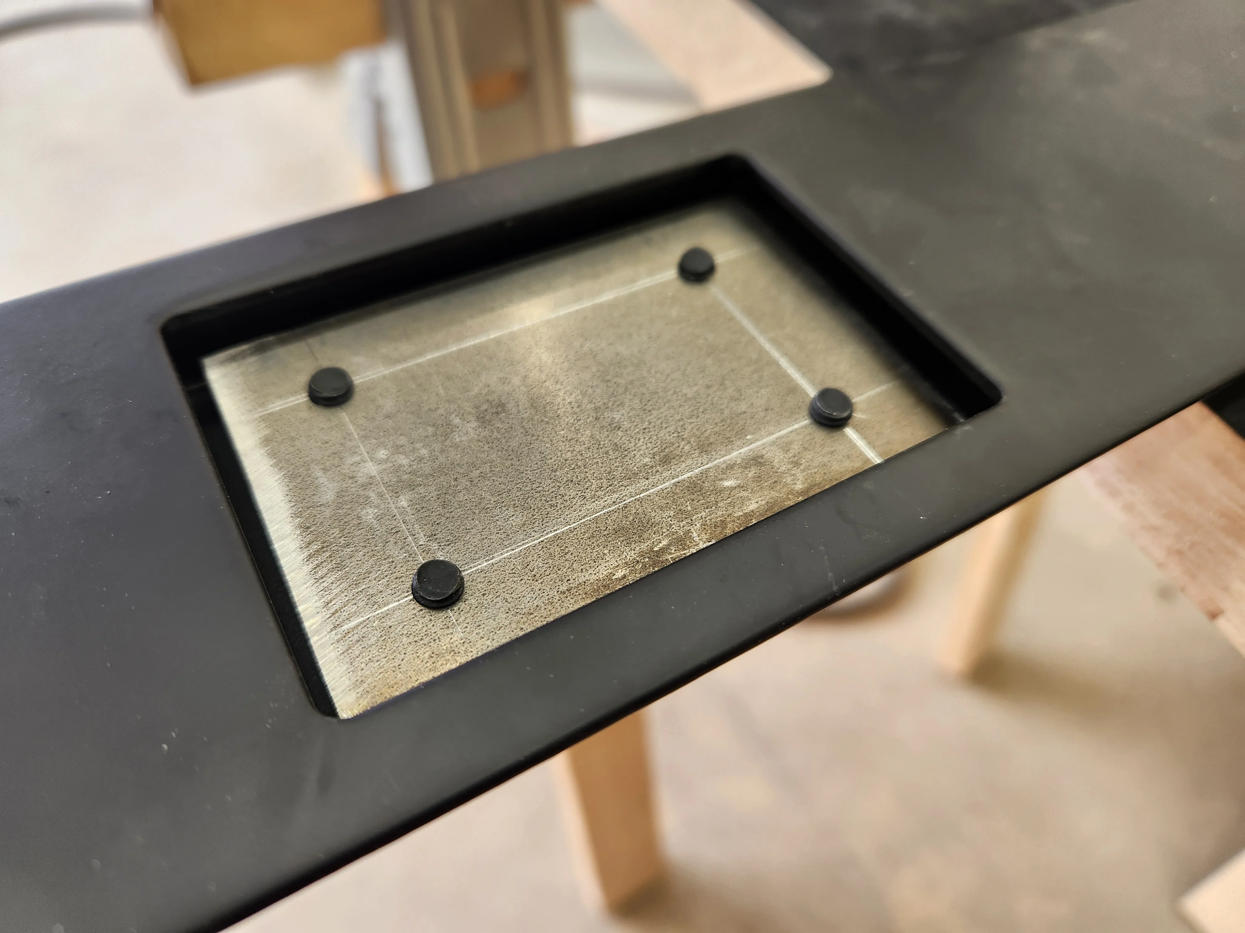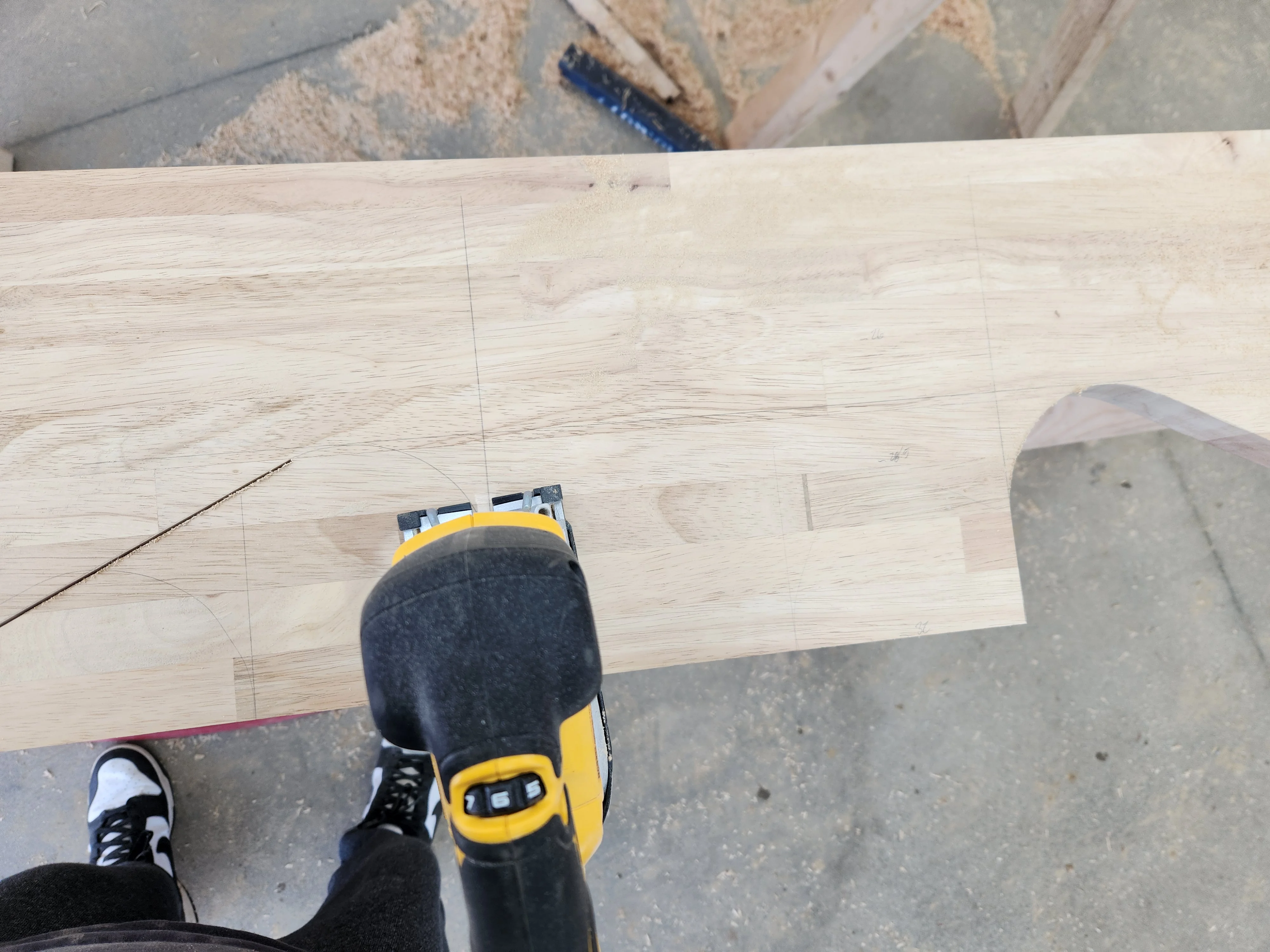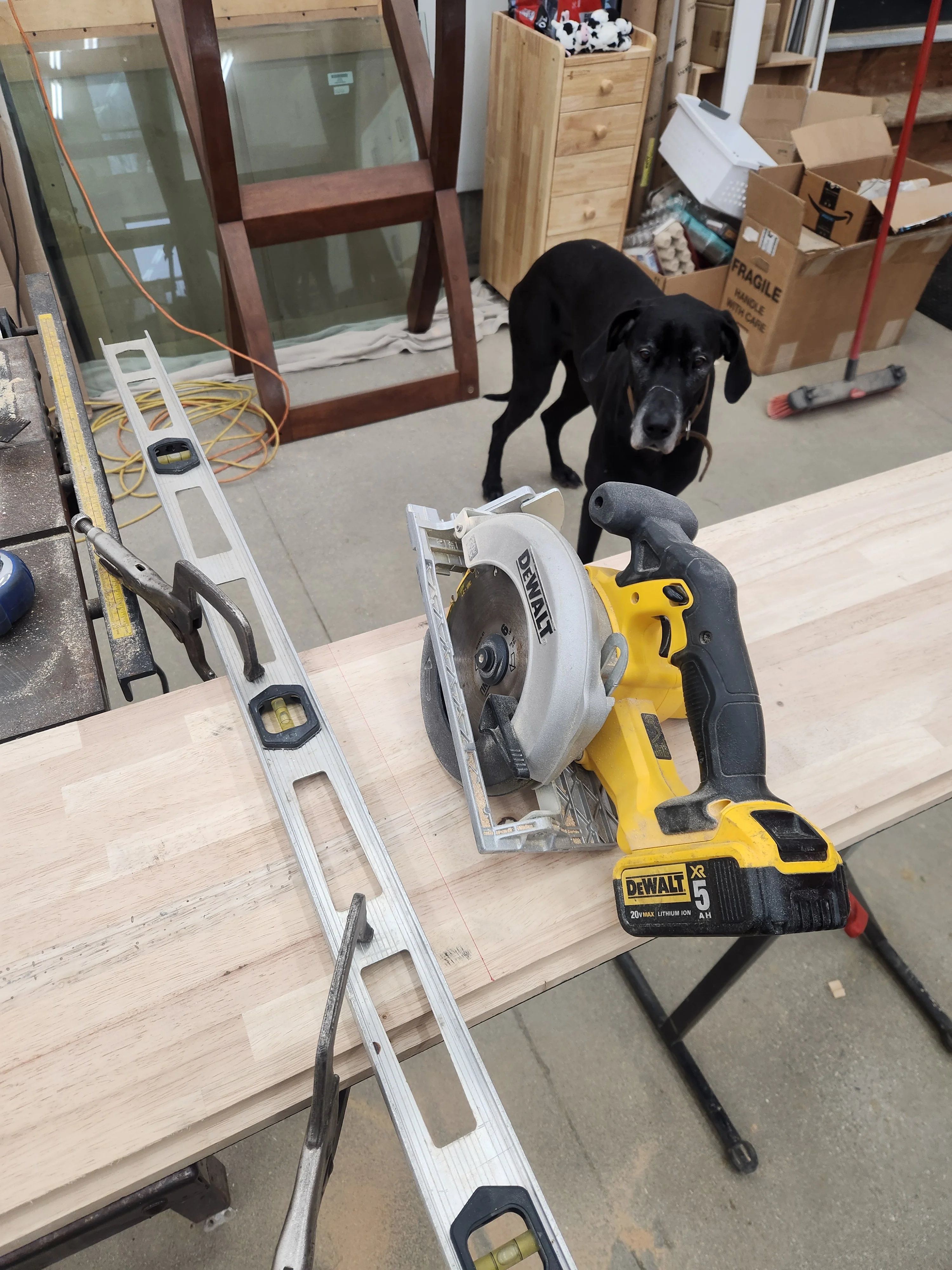 For the bench top, I had a bunch of left over “uninstalled tractor trailer flooring” I had sourced for my garage workbench. This is all hardwood laminate, mostly maple I think, and comes in 12”x 1.5”x 12’ boards. I mimicked the layout from a standard watchmakers bench for the arm rests.